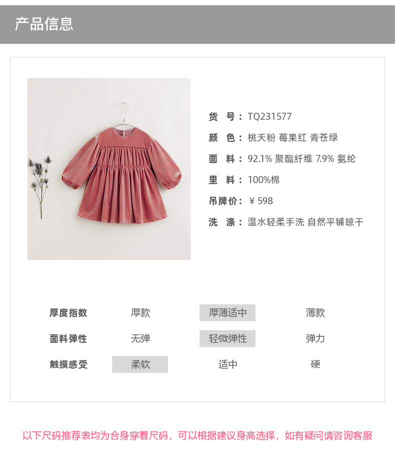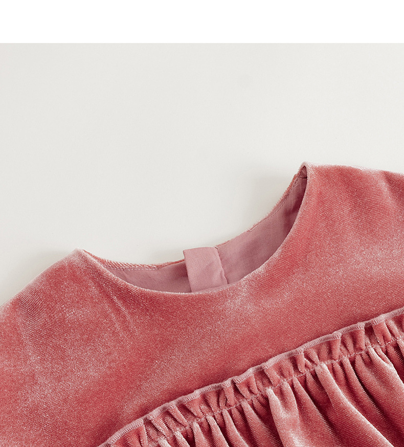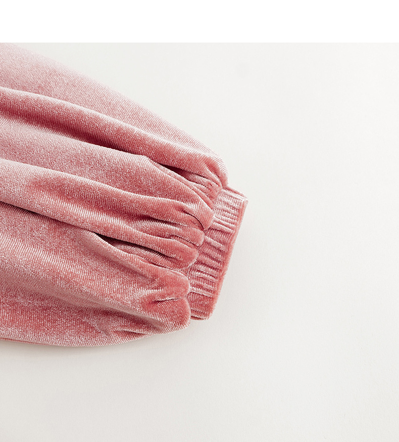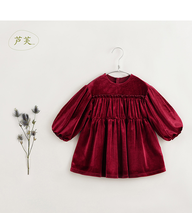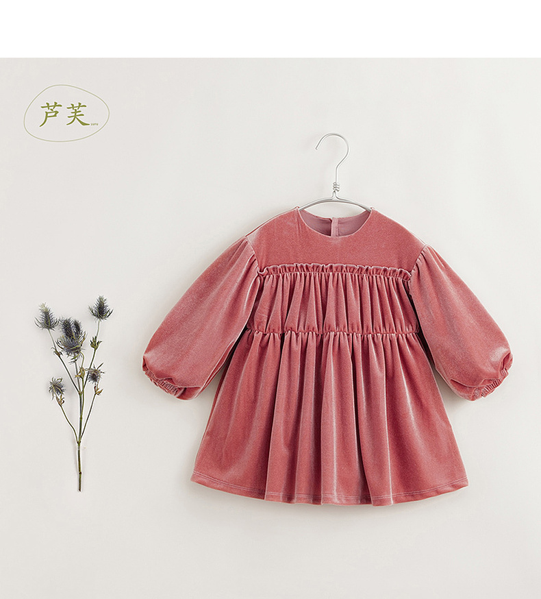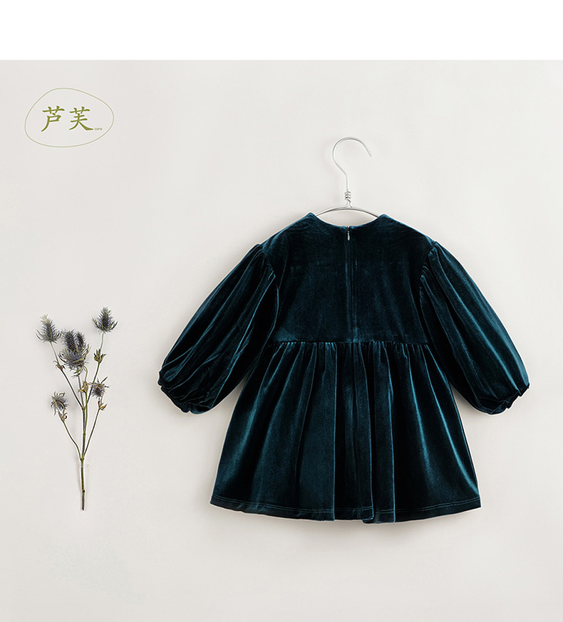 【马克珍妮 芦芙】秋装新款 女童柔软泡泡袖花边丝绒连衣裙231577