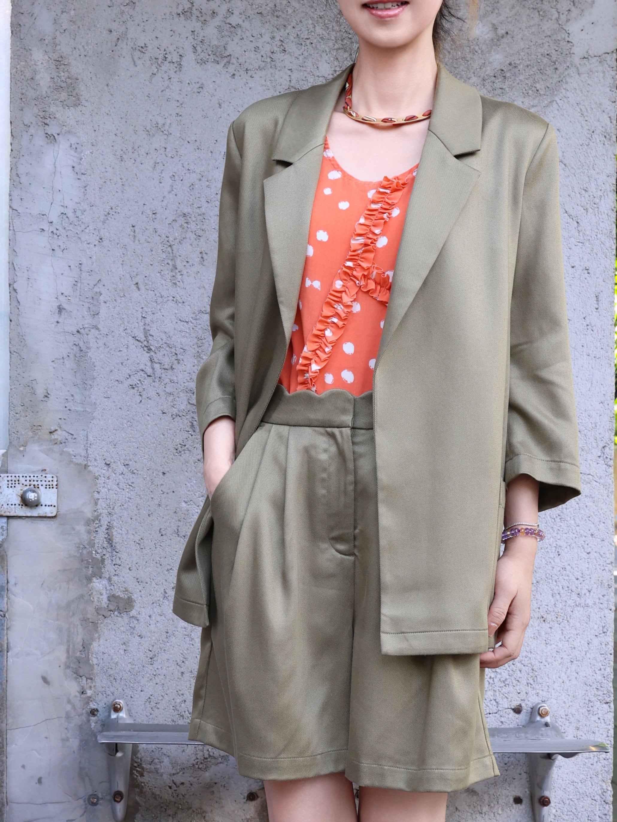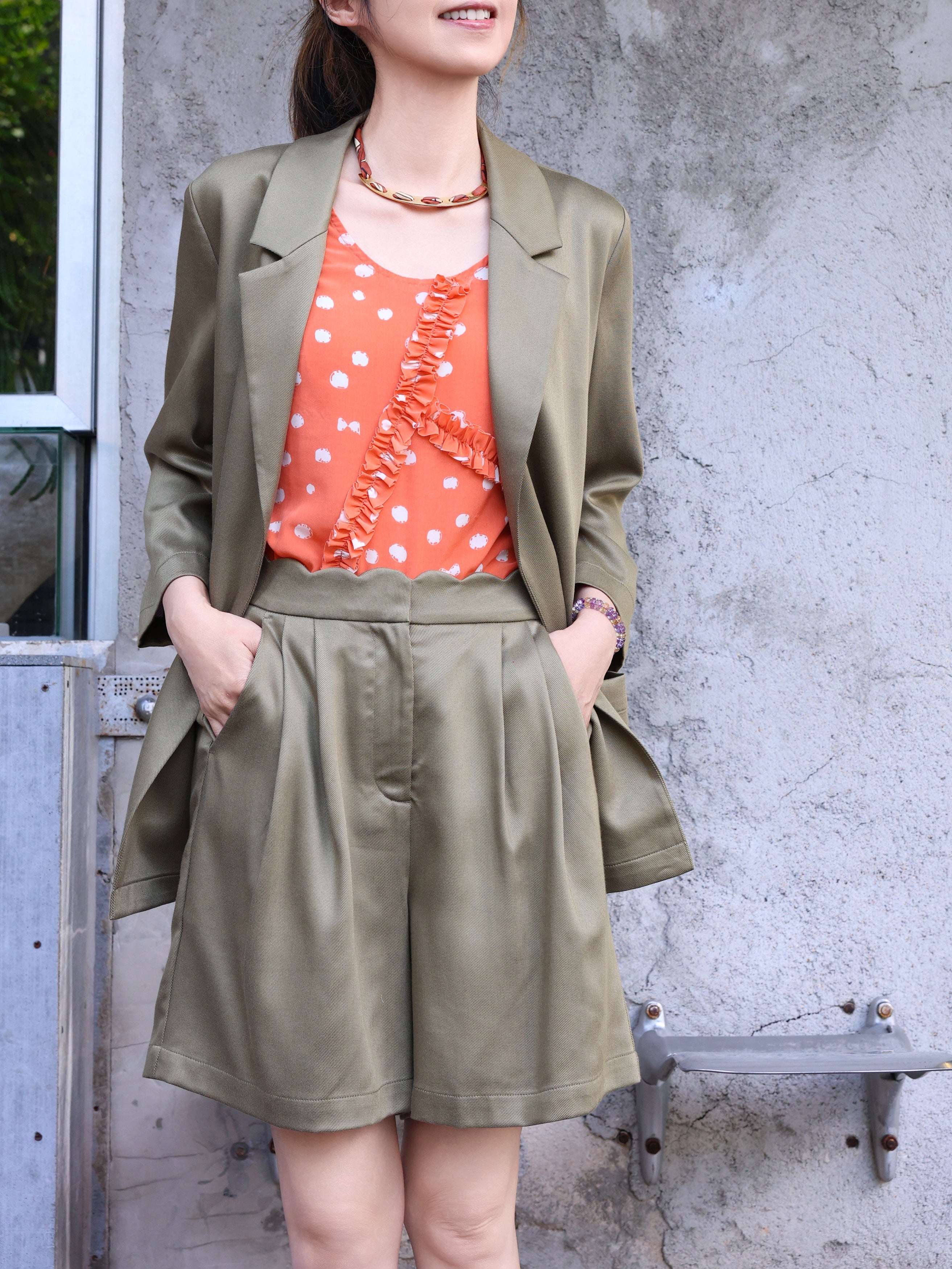 TYNVIE 扇贝腰褶A字短裤 - 军绿色