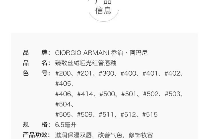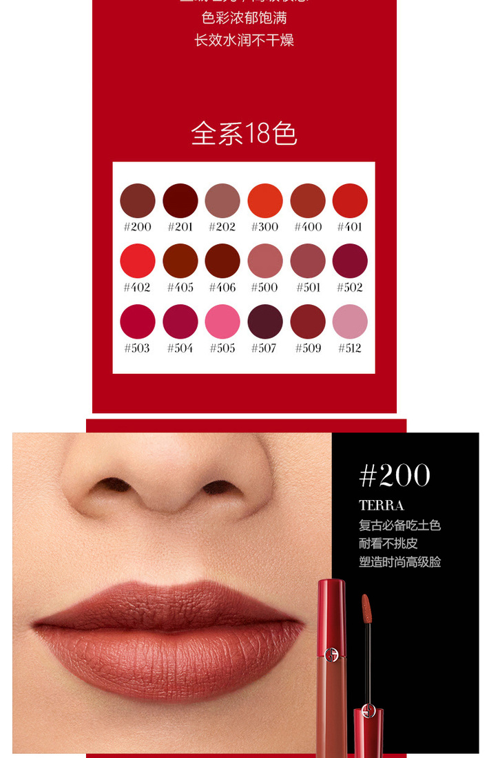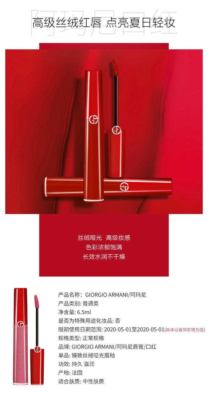 【中欧班列精选】意大利 Armani/阿玛尼臻致丝绒哑光红管唇釉6.5ml /支 多种色号可选HJ