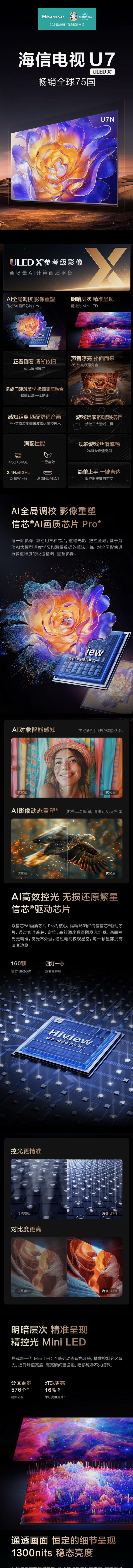 海信(912723)电视 75U7N 75英寸 ULED Mini LED 信芯AI画质 液晶智能电视机 75英寸