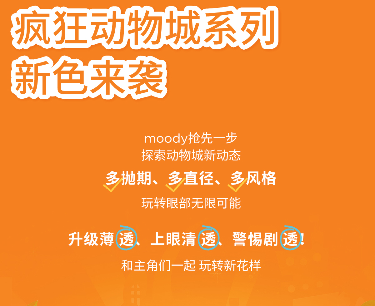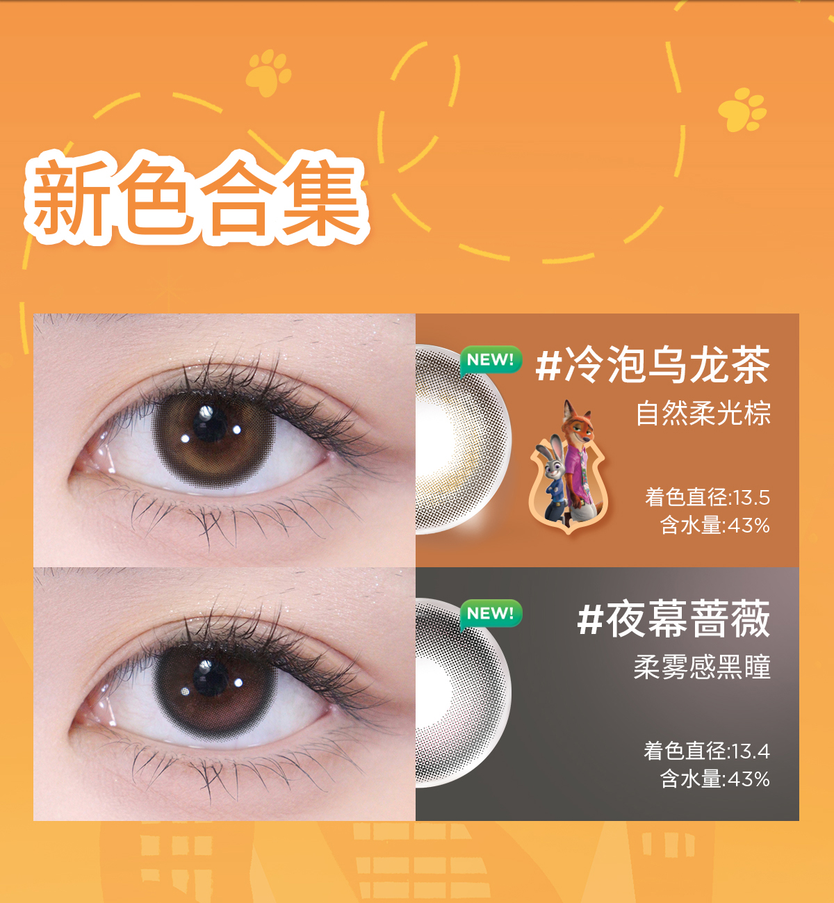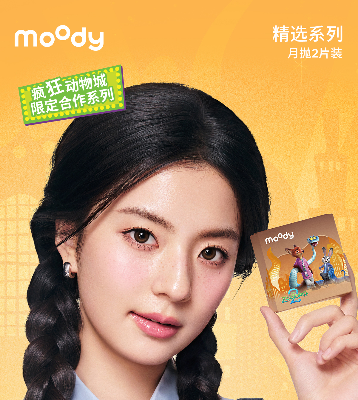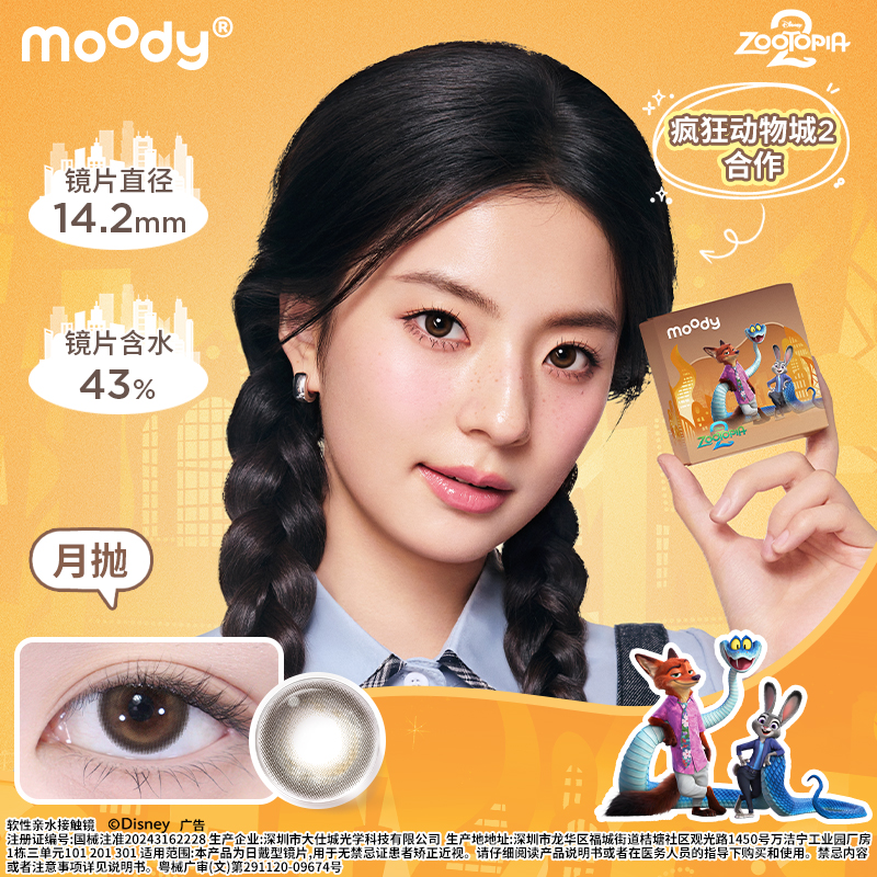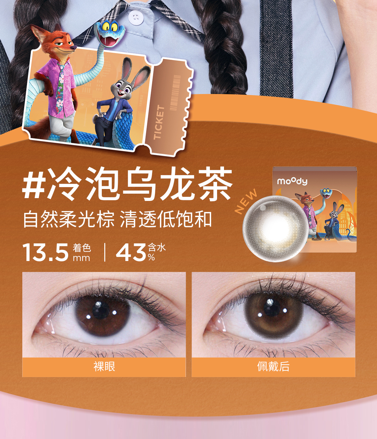 【周三会员趴】moody美瞳月抛精选系列 疯狂动物城冷泡乌龙茶彩色隐形眼镜2片