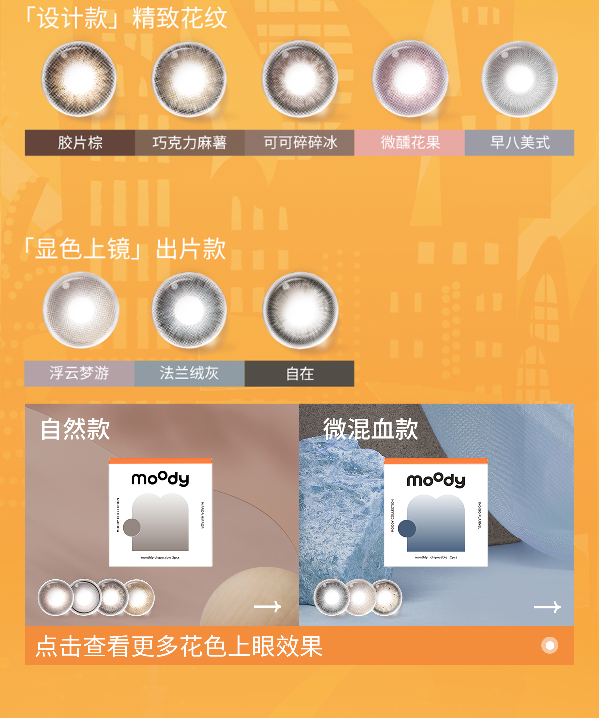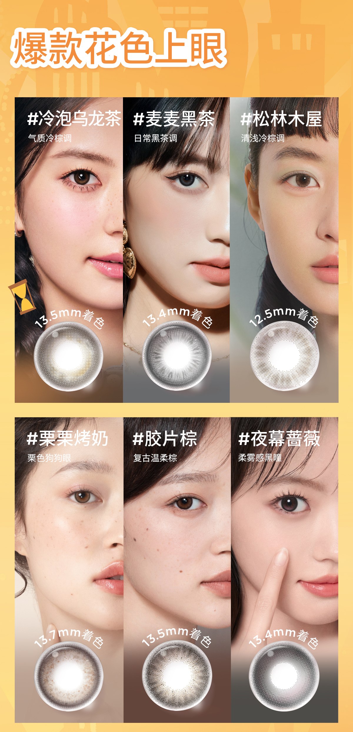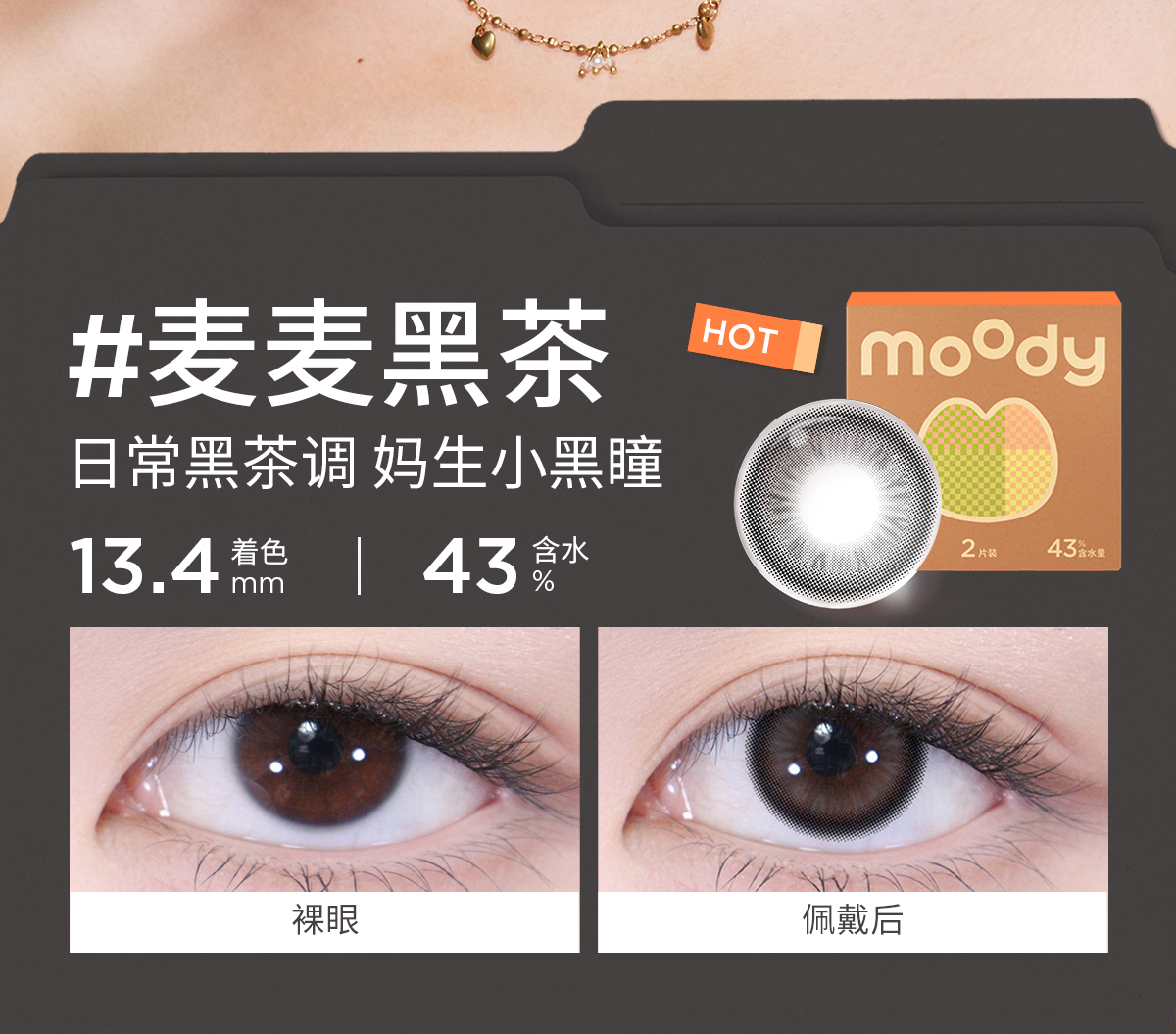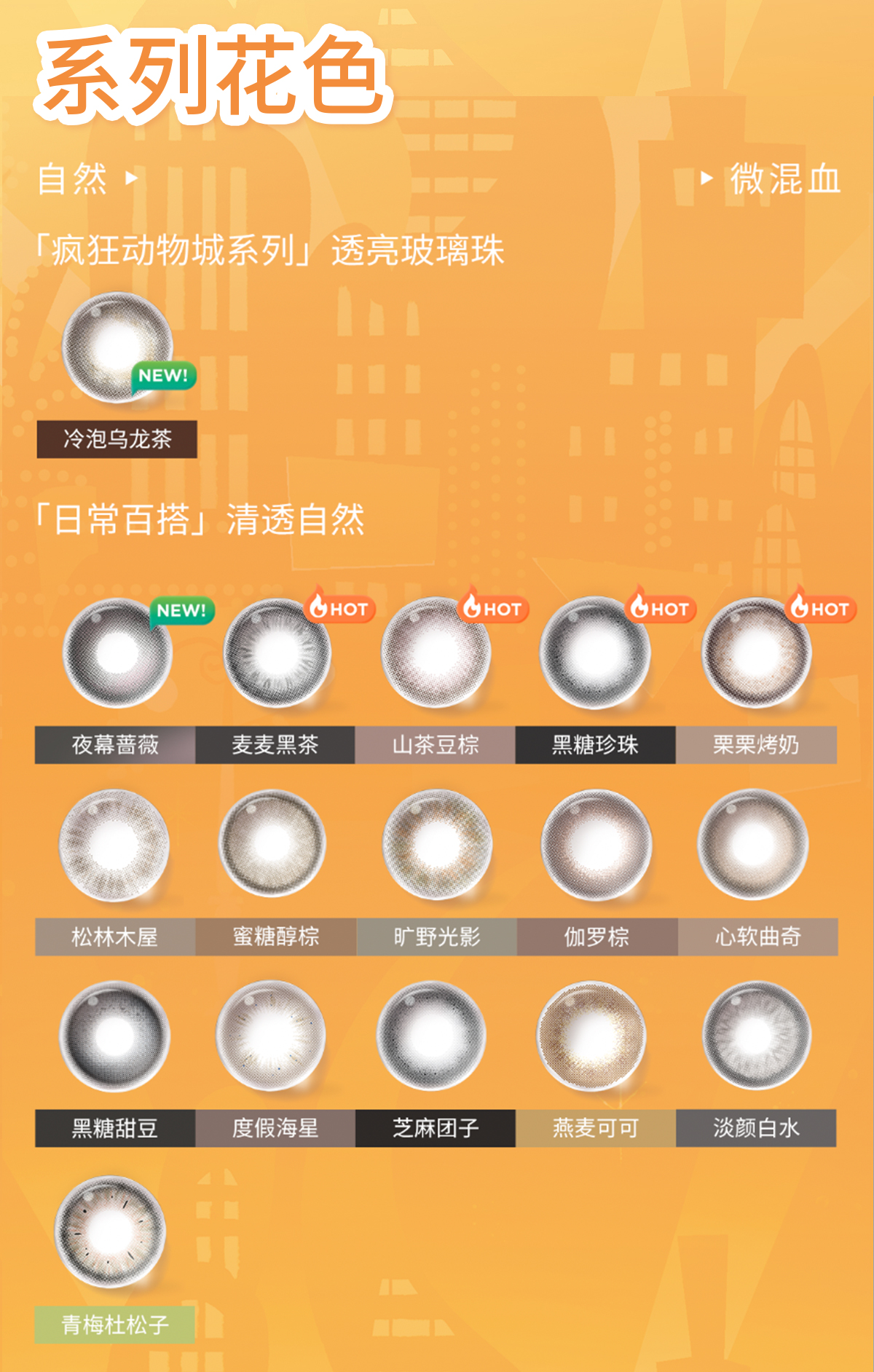 【周三会员趴】moody美瞳月抛精选系列 疯狂动物城冷泡乌龙茶彩色隐形眼镜2片
