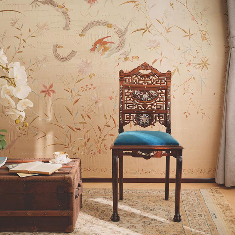 【已售】独角鹿西洋古董19世纪法国出品VIARDOT东方风格瑞兽花鸟主题母贝镶嵌单人椅一对