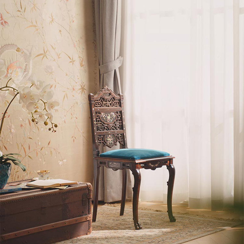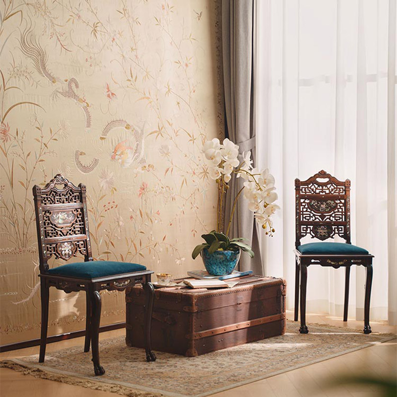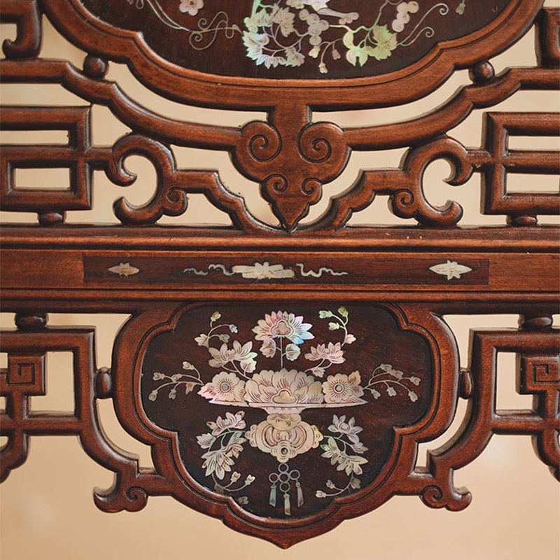 19世纪法国出品VIARDOT东方风格瑞兽花鸟主题母贝镶嵌单人椅一对