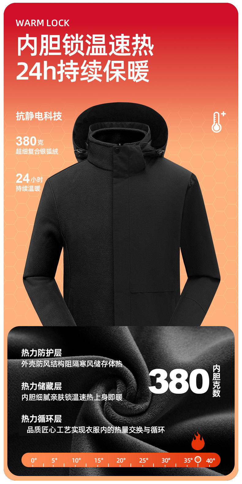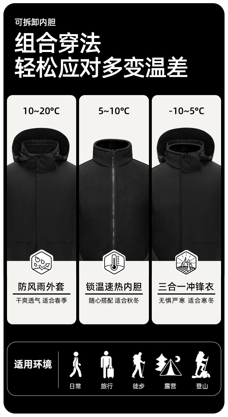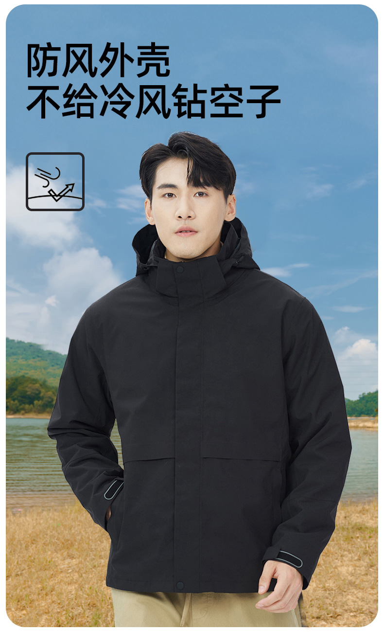 【三合一可拆卸】圣得西2024冬季新款冲锋衣外套男士户外夹克外套