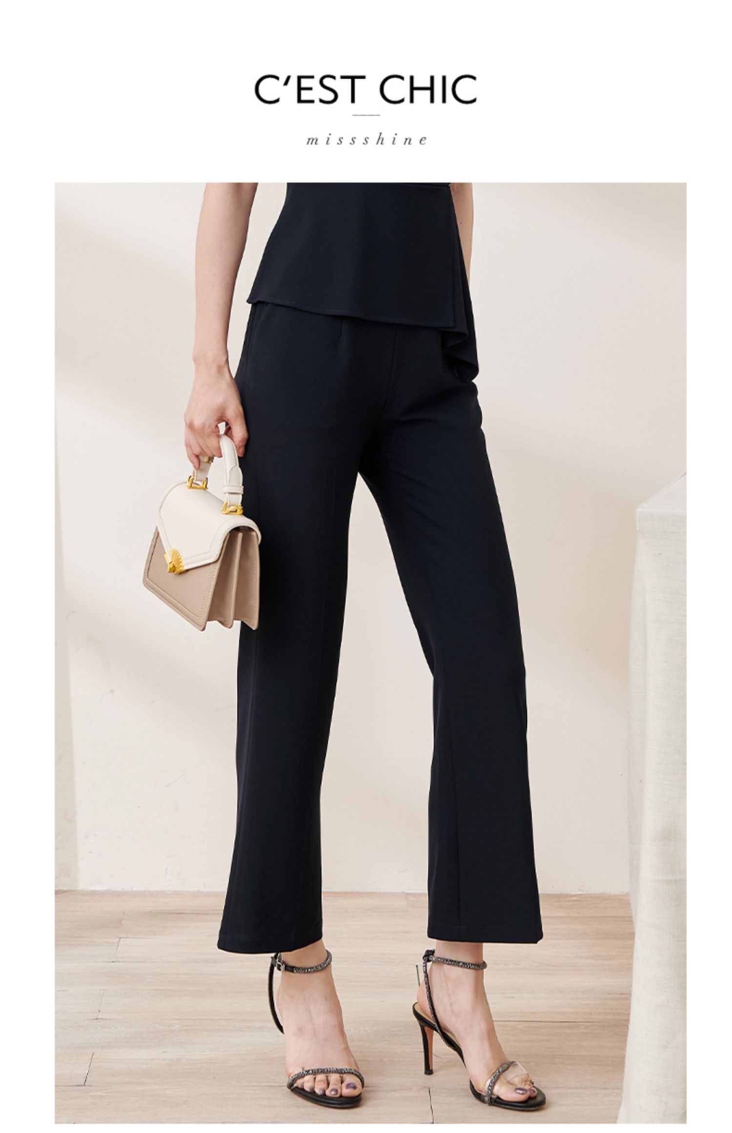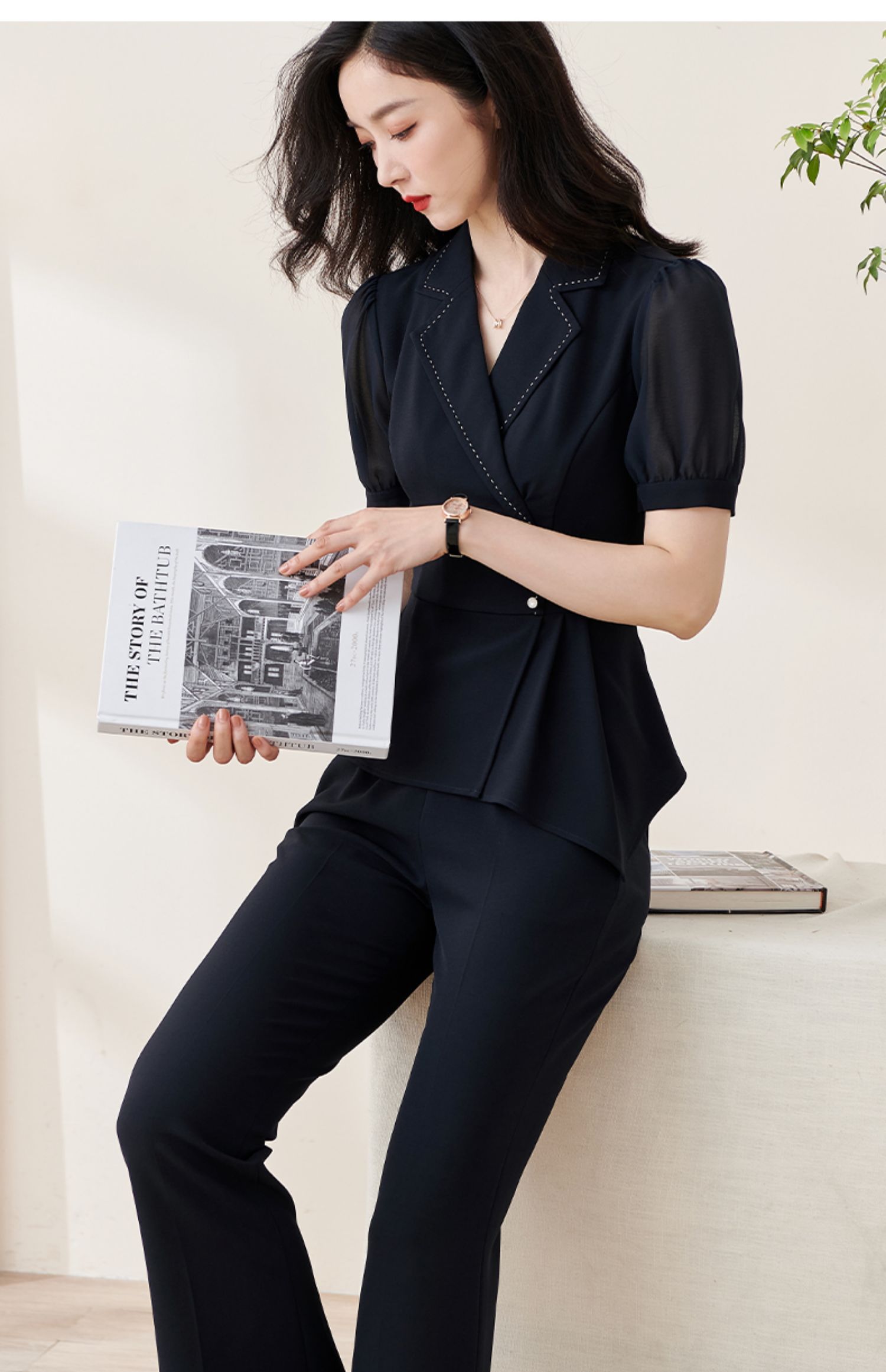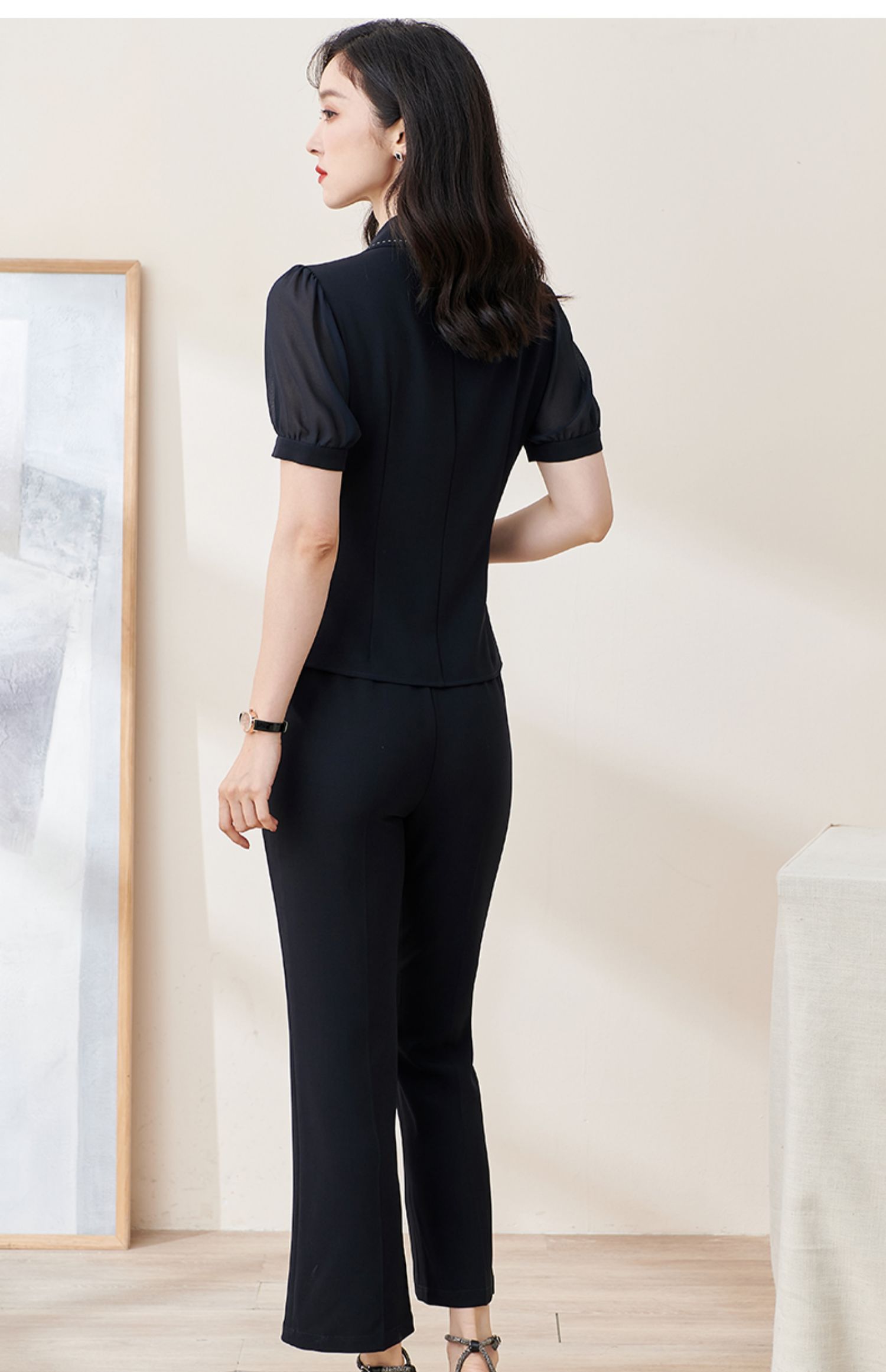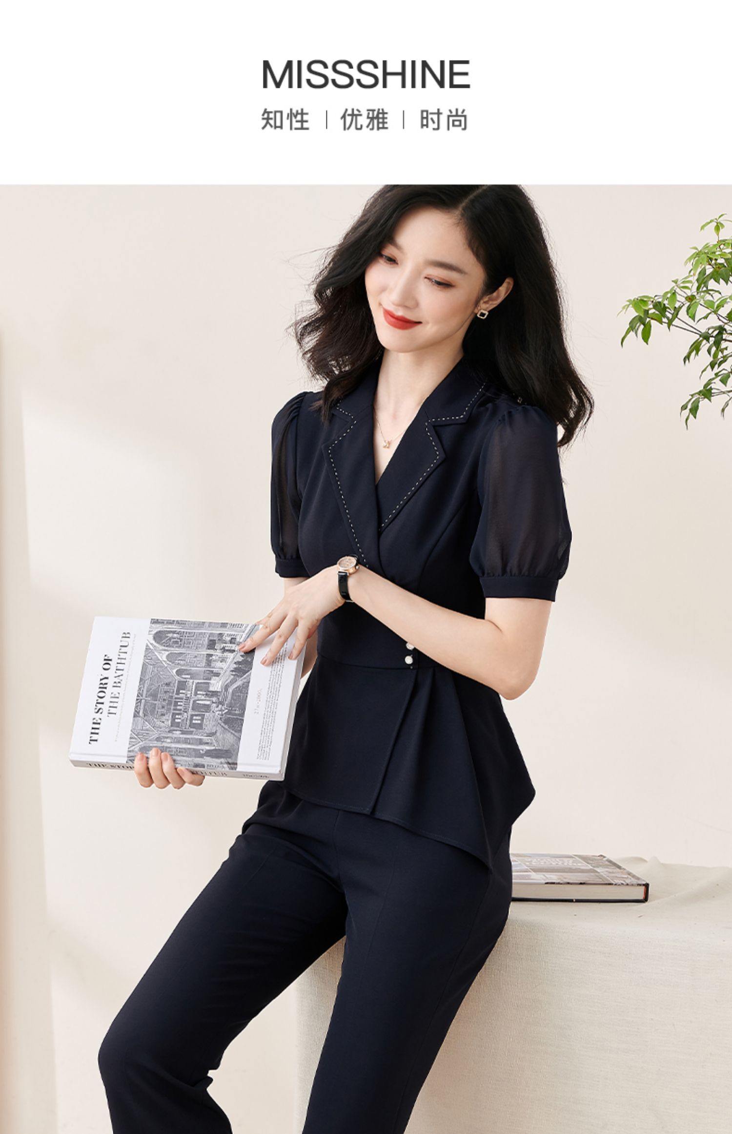 剩M 米思阳2022夏季新款通勤休闲时尚套装修身短袖上衣长裤两件套1640