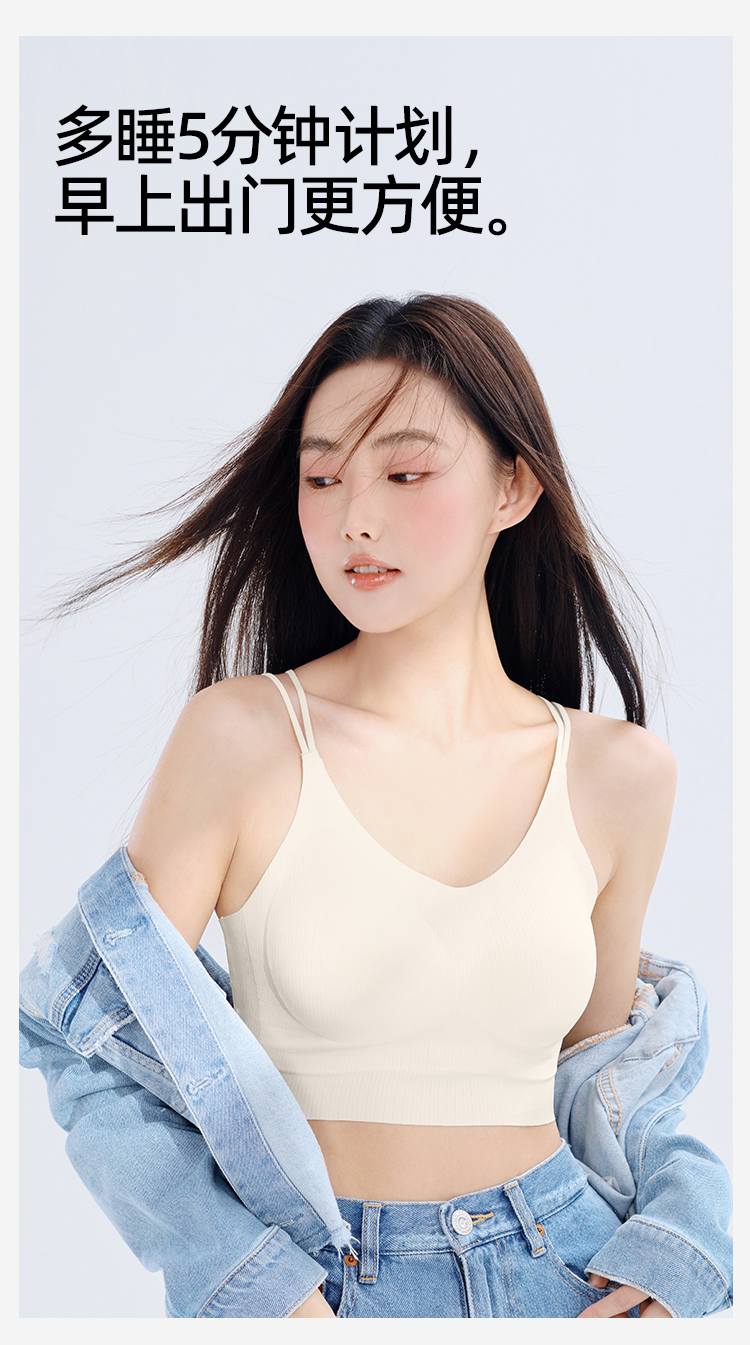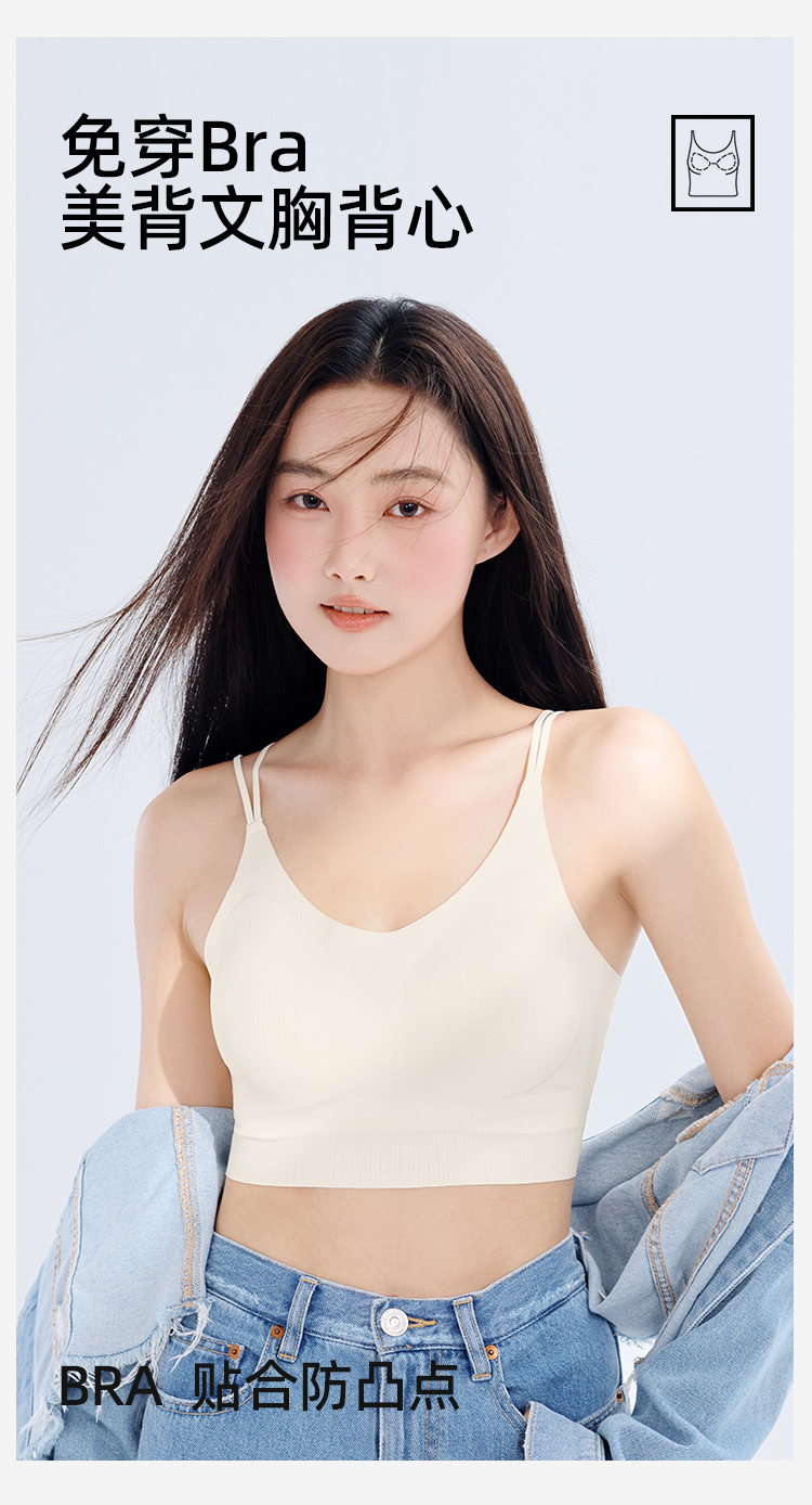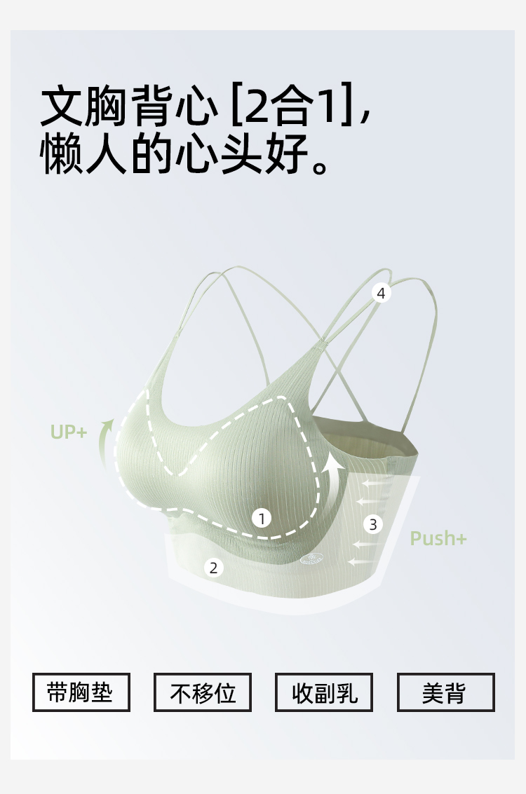 【夏日美背】熳洁儿 性感交叉美背舒适聚拢无痕文胸一体杯固定胸罩可机洗ABC杯24261506