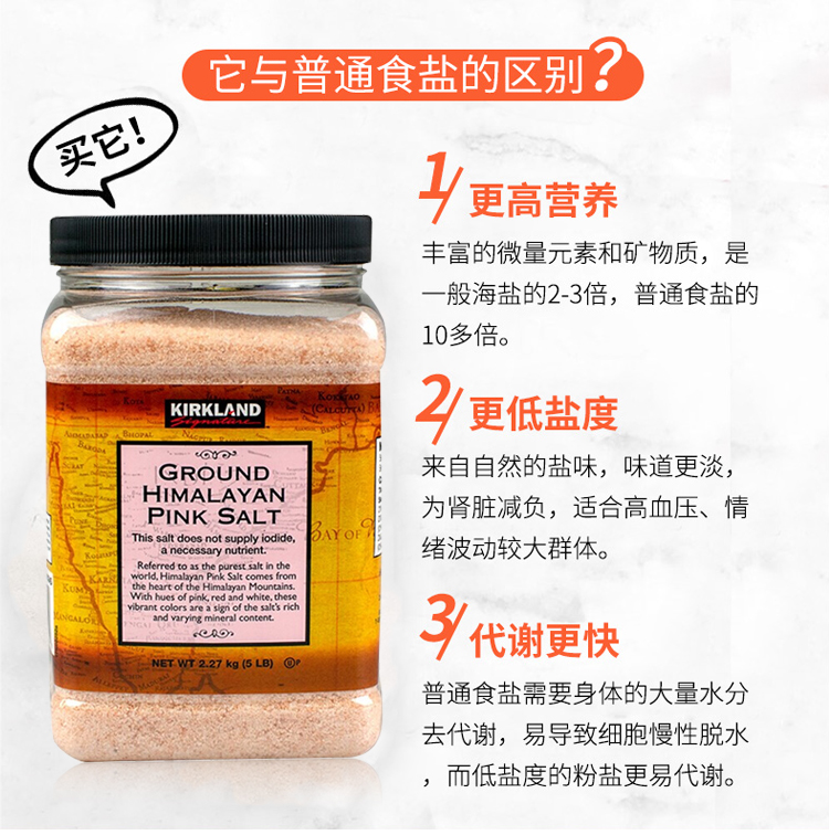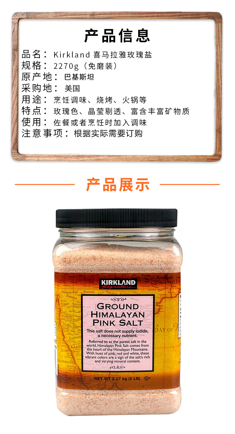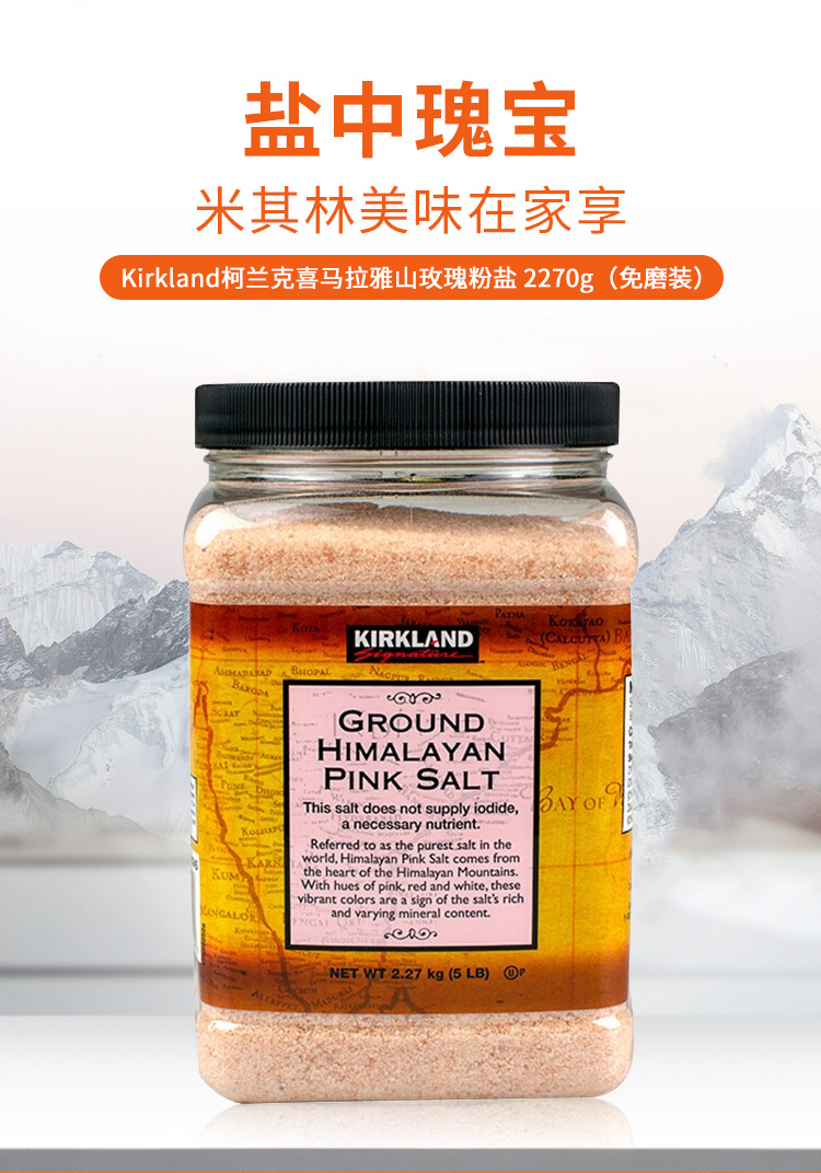 美国Kirkland喜马拉雅山 无碘 已研磨 玫瑰粉盐2.27KG#宁波仓