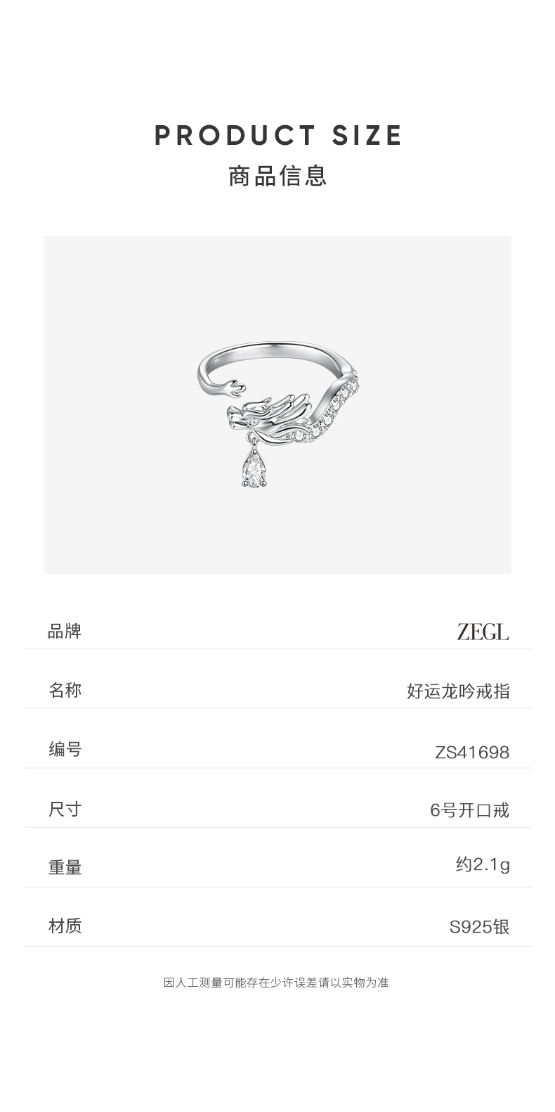 ZEGL设计师龙吟系列龙年本命年戒指女小众设计指环新年开口食指戒