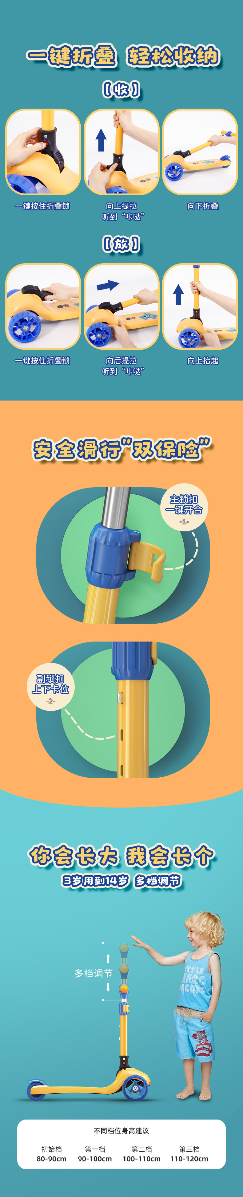 【一键折叠 不侧翻 更顺更稳】成长型重力转向儿童滑板车滑滑车溜溜车 让滑行来的更稳一些 适合3-14岁