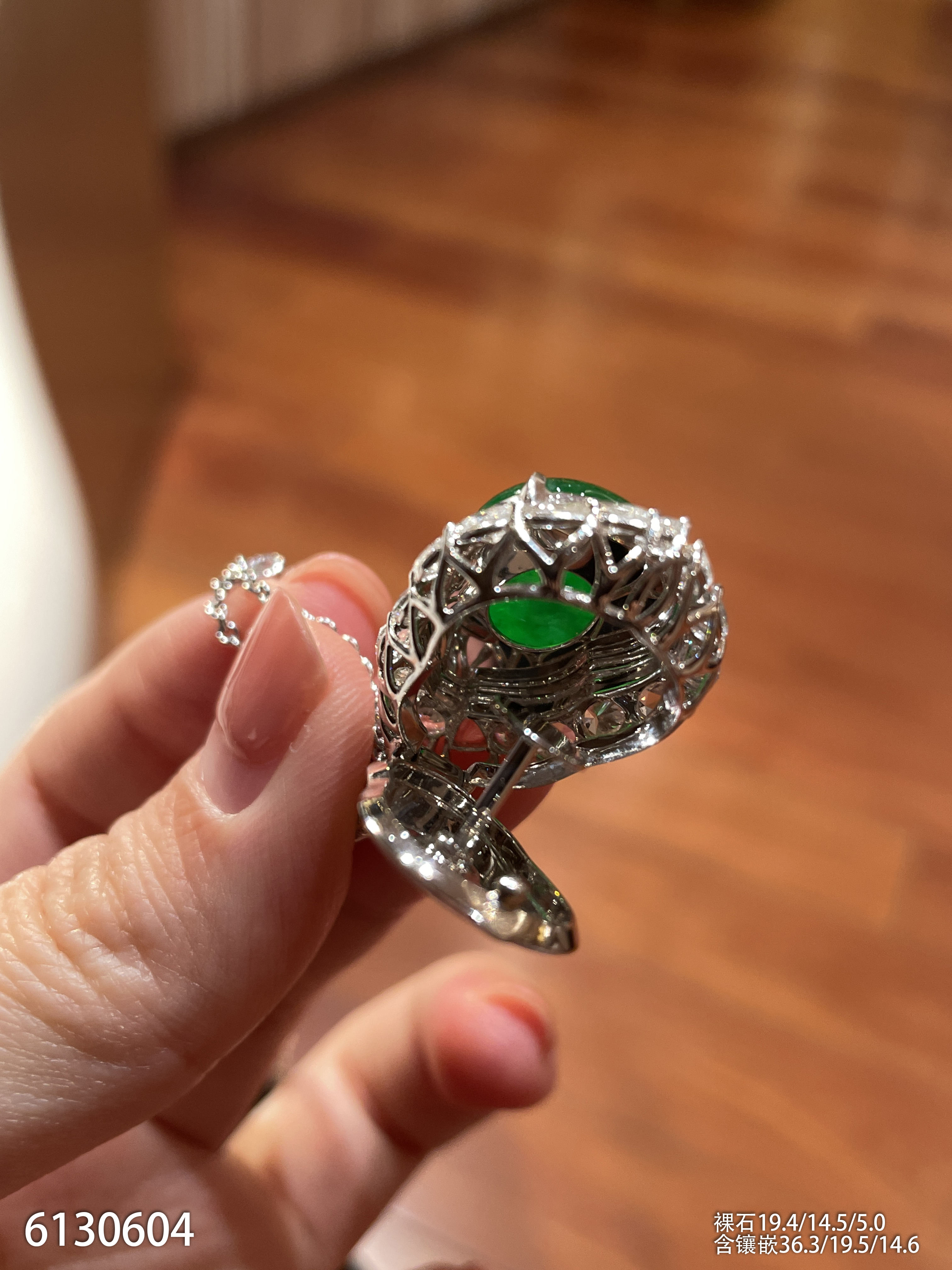 玻璃种蛋面戒指【6300503】具体价格微信咨询