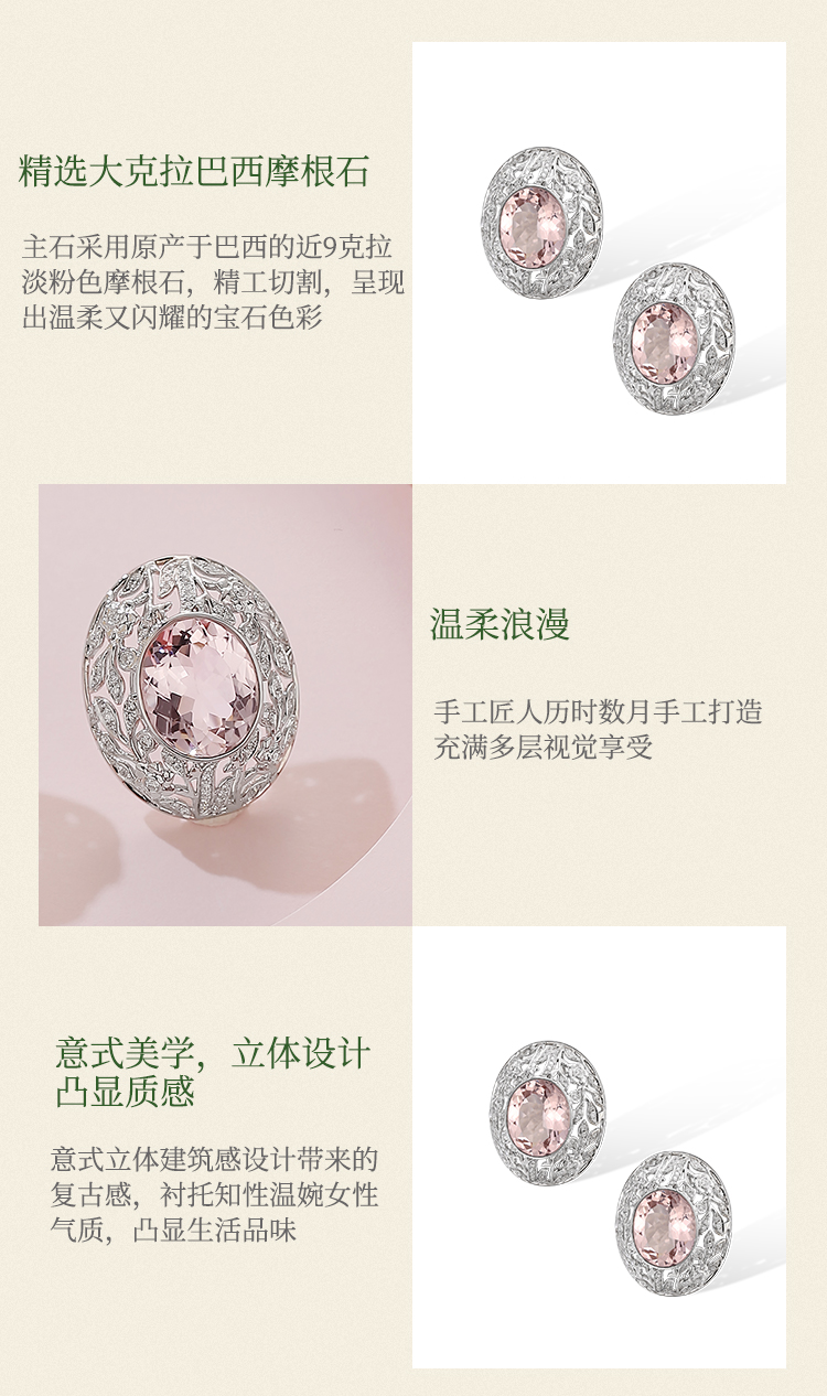 Sugar Morganite方糖摩根石系列 | 方糖星芒摩根石耳环