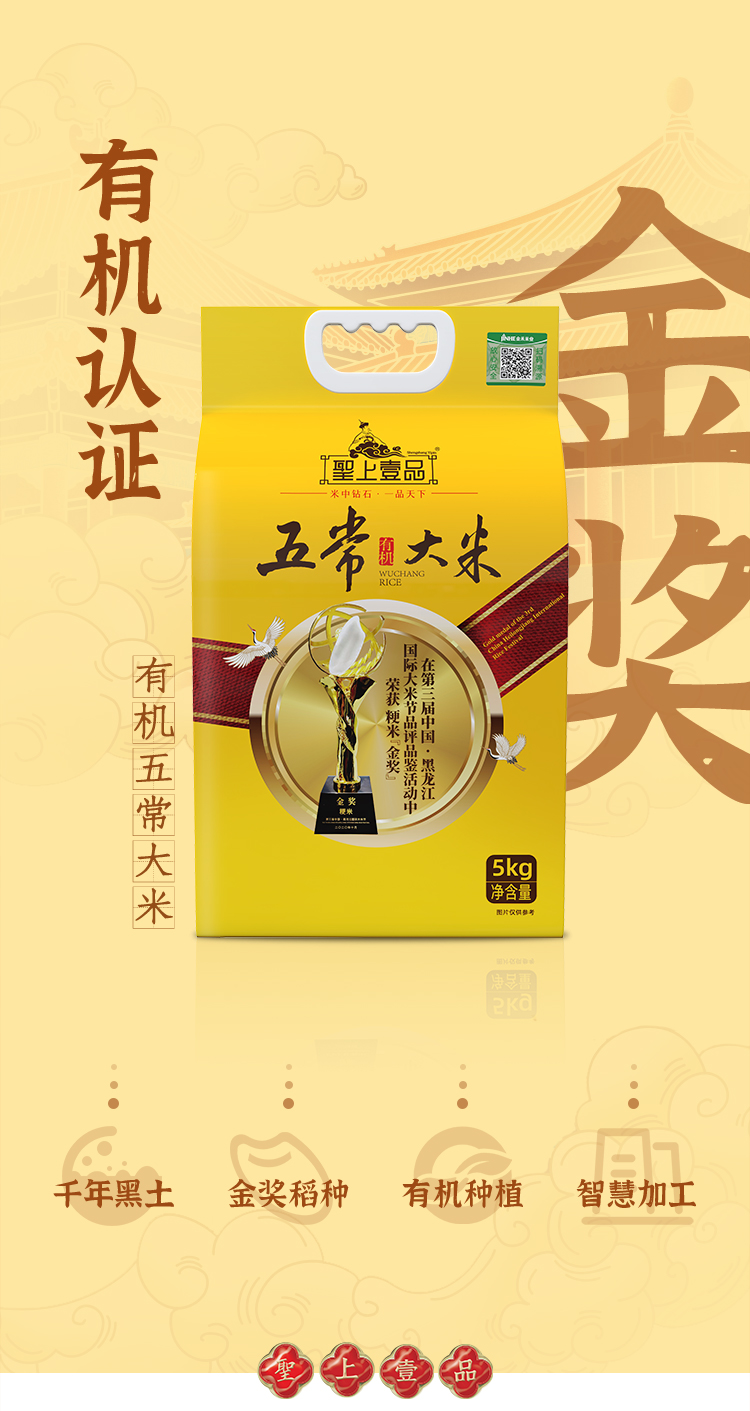 5kg线上聖上壹品有机金奖五常大米真空(黄)