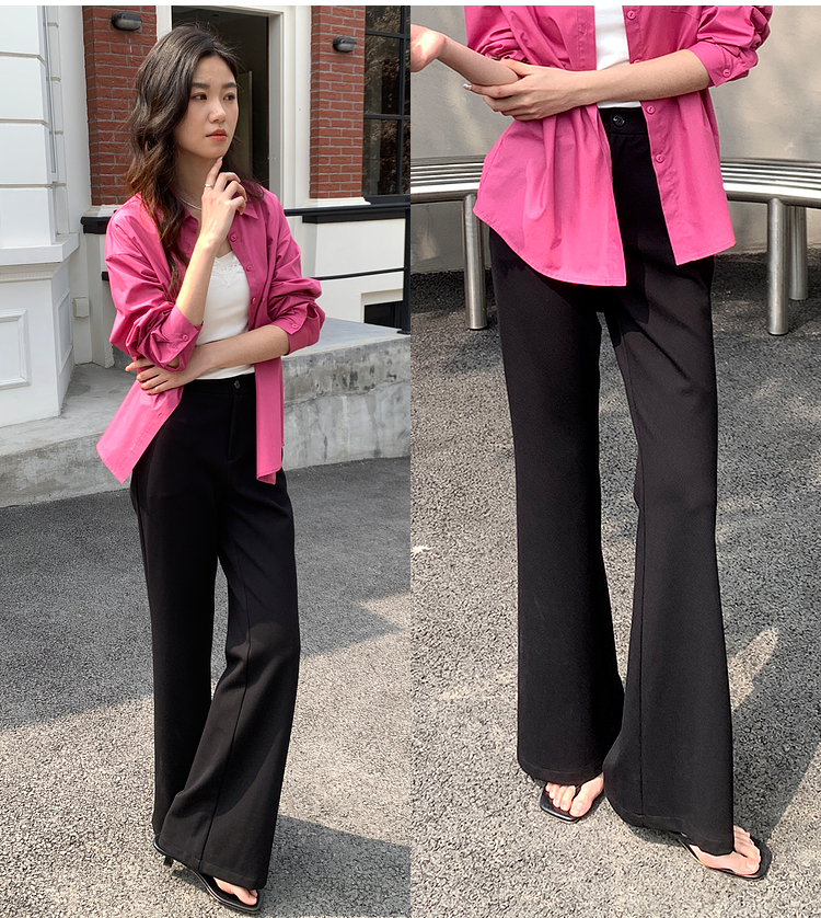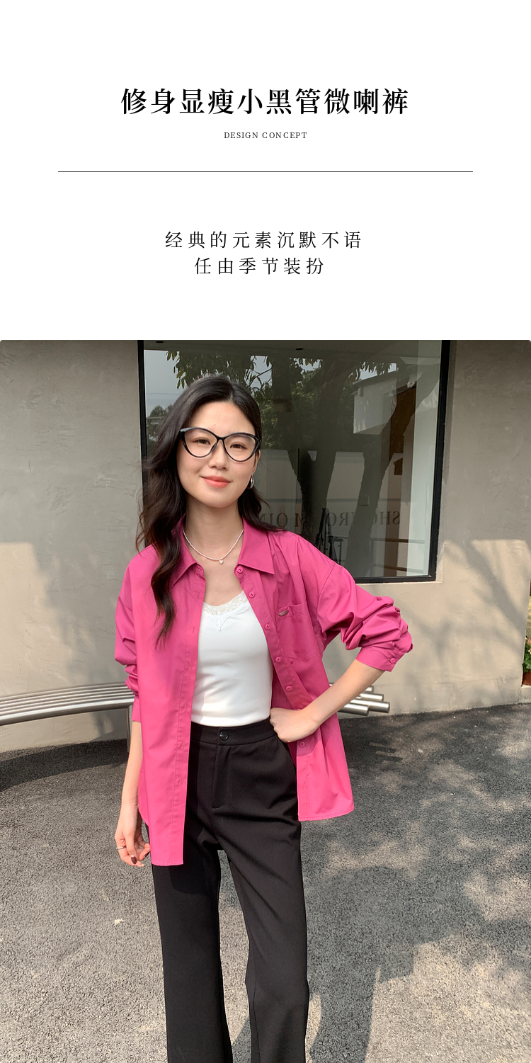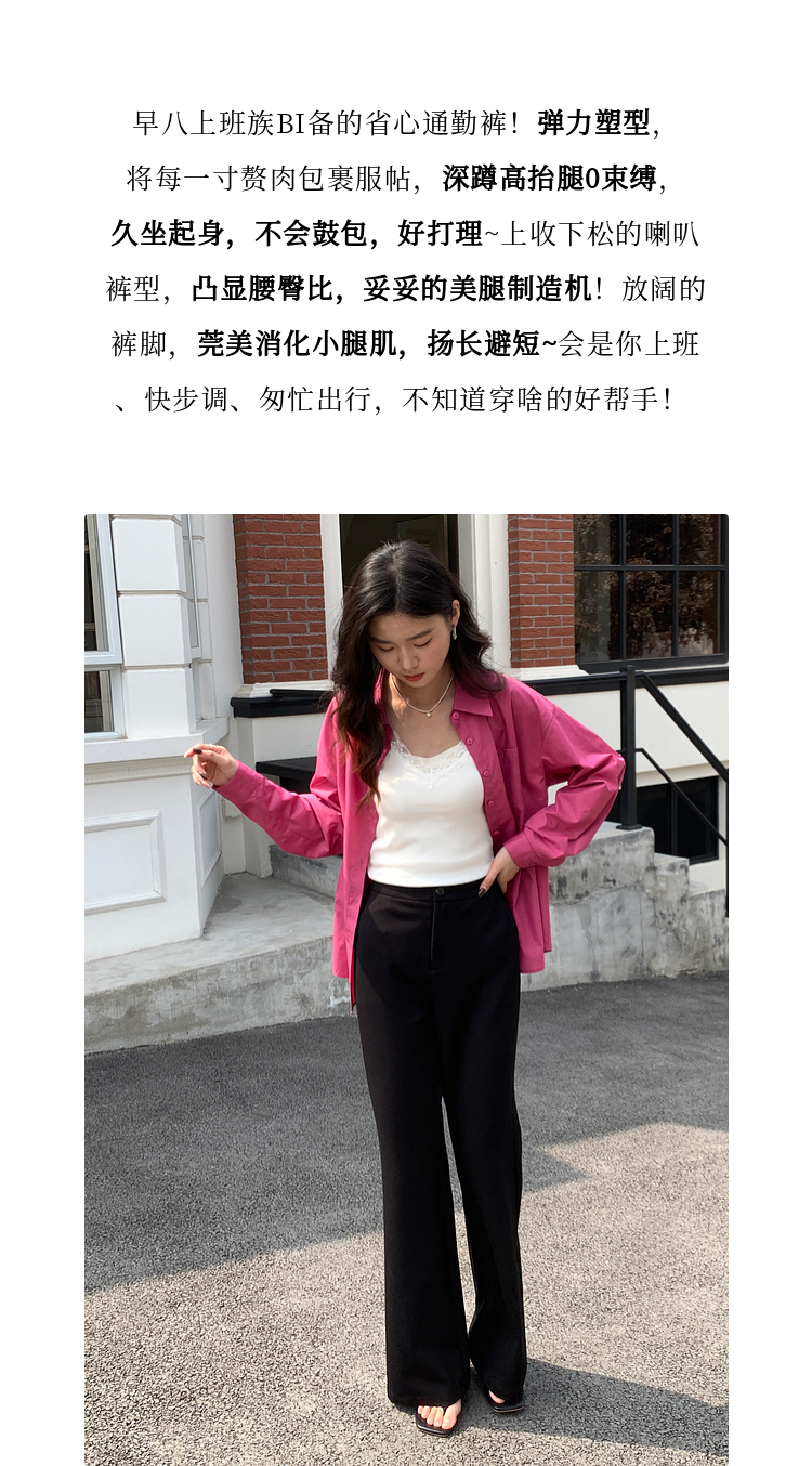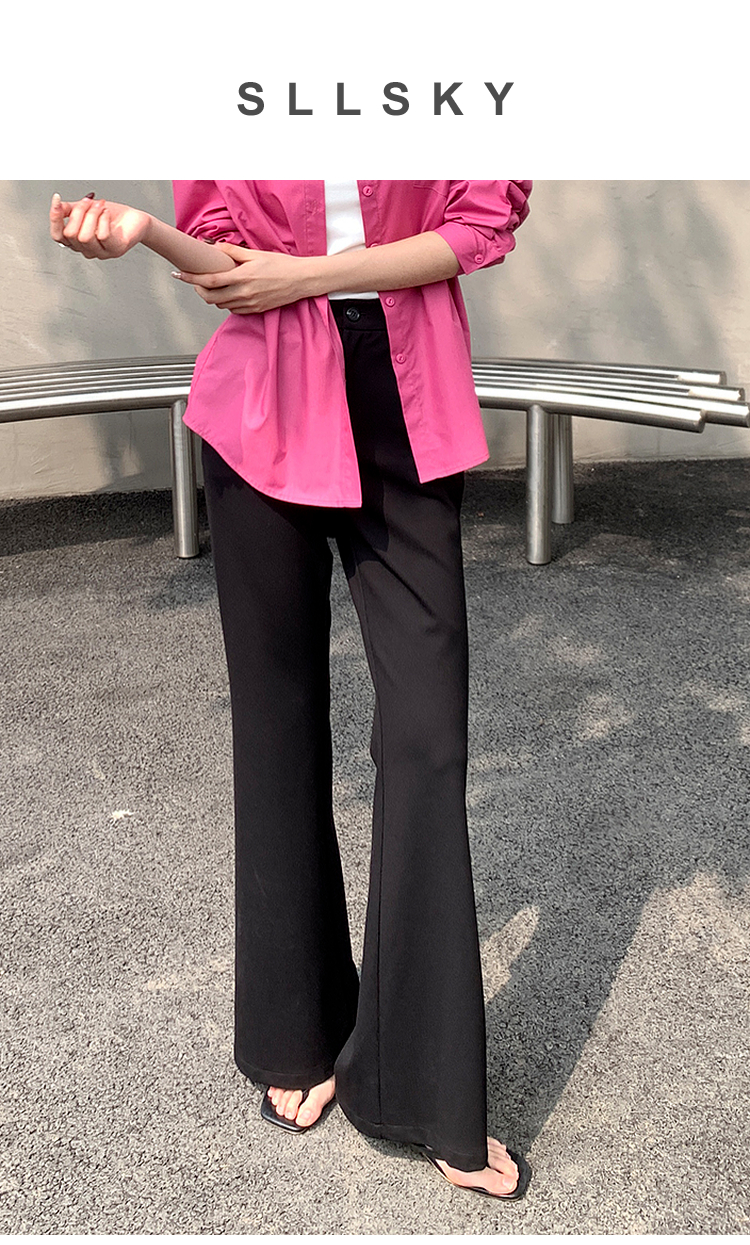 【专属特价】熙世界黑色微喇裤女春秋2025年新款高腰修身长裤休闲喇叭裤西装裤