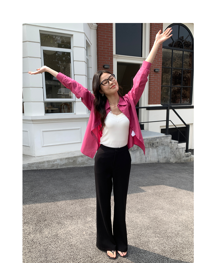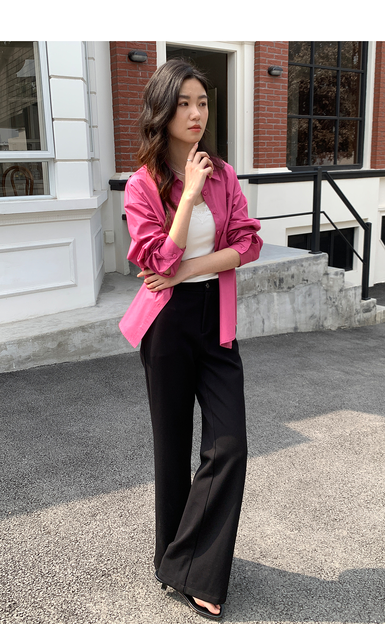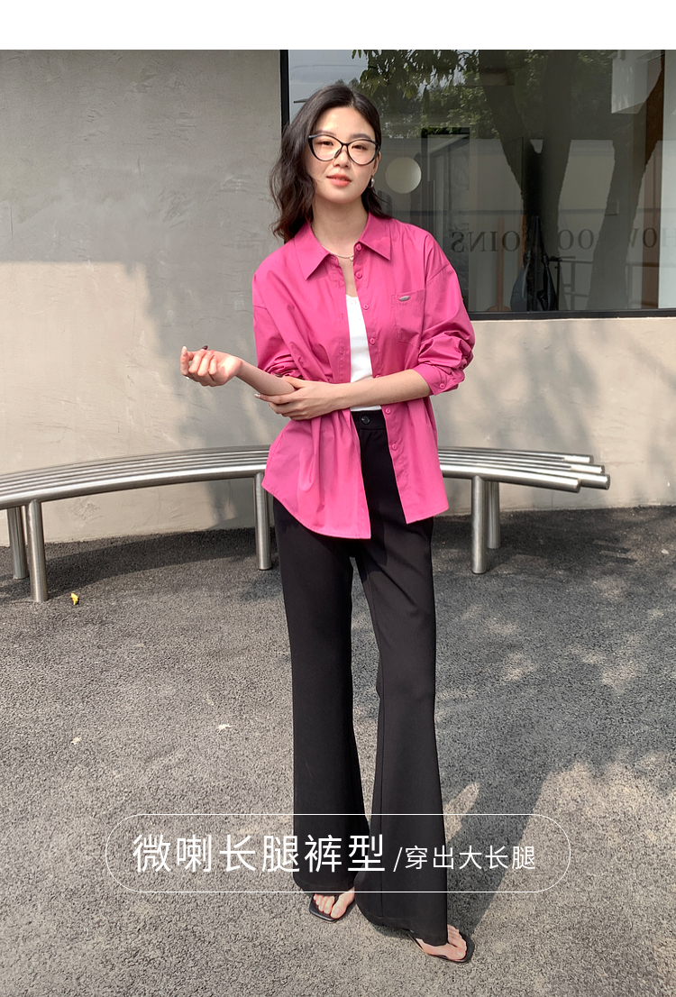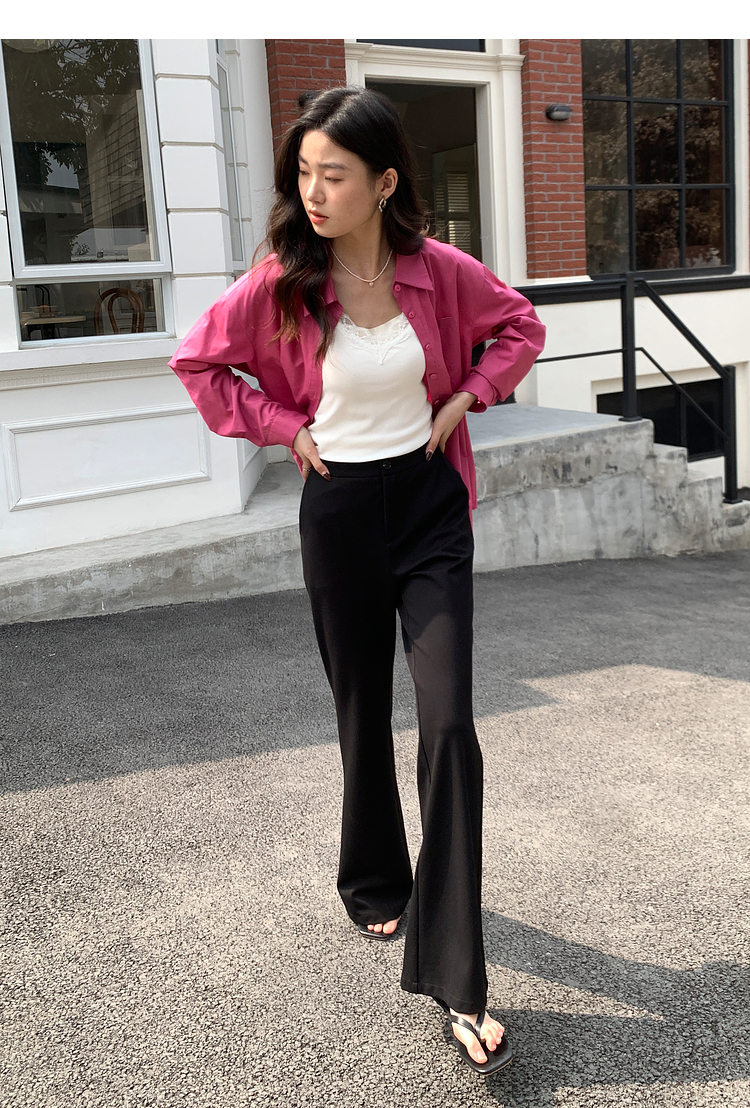 【专属特价】熙世界黑色微喇裤女春秋2025年新款高腰修身长裤休闲喇叭裤西装裤