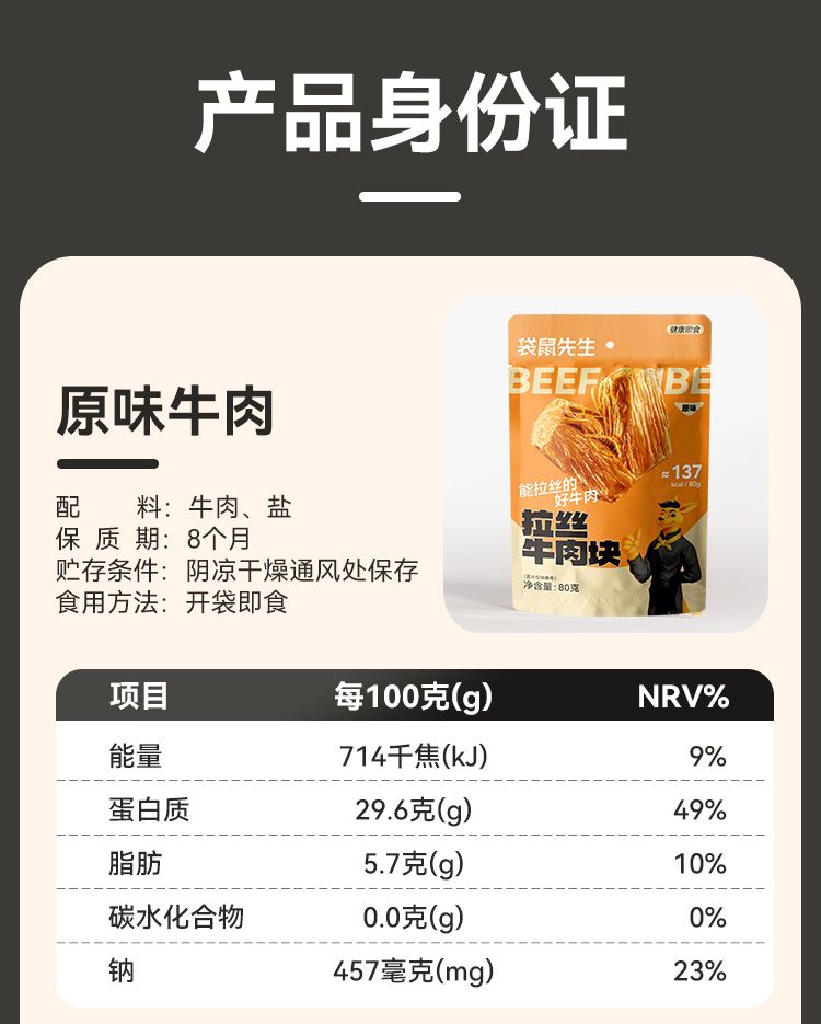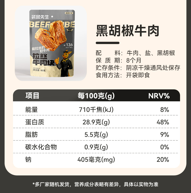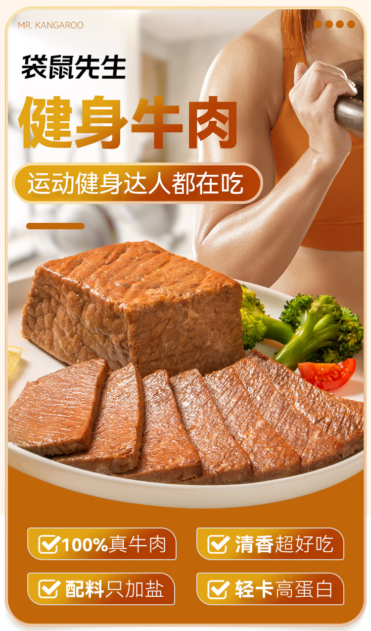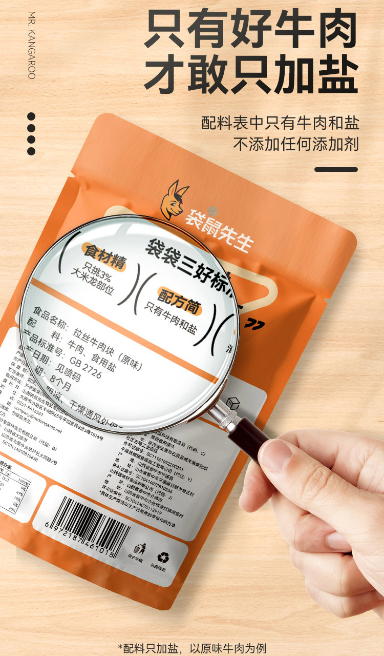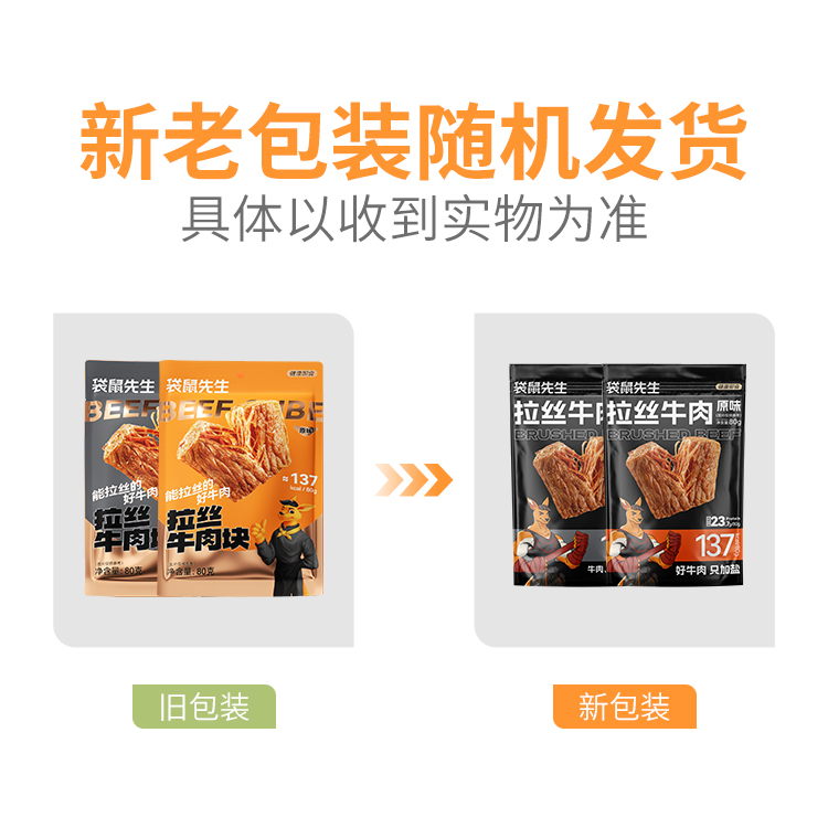 【袋鼠先生】高蛋白拉丝牛肉块 80g 好牛肉只加盐 新老包装交替发货