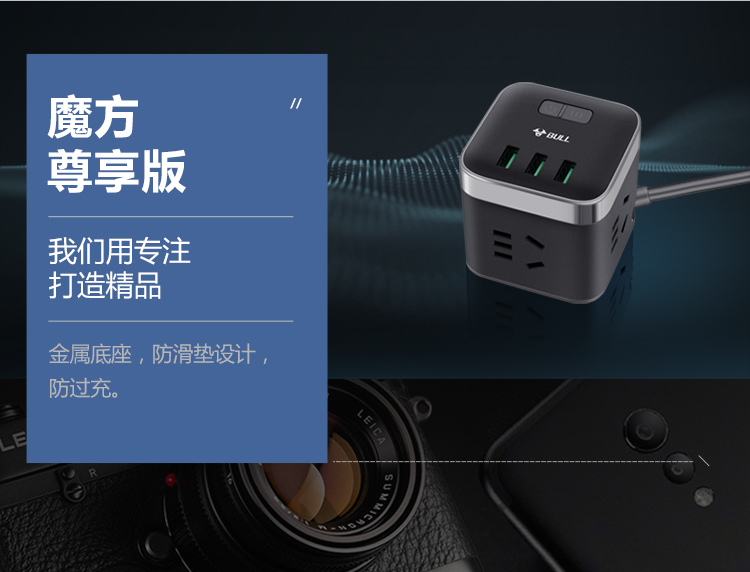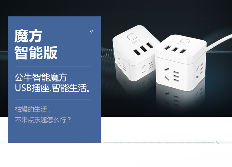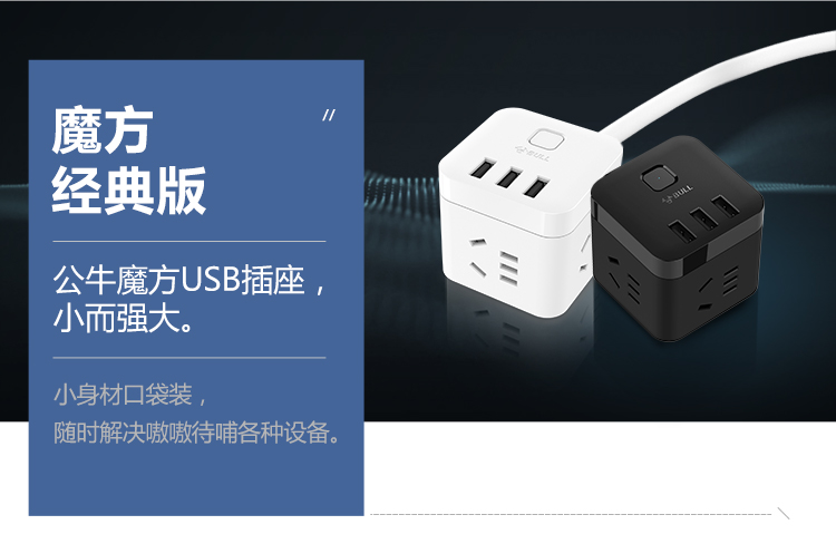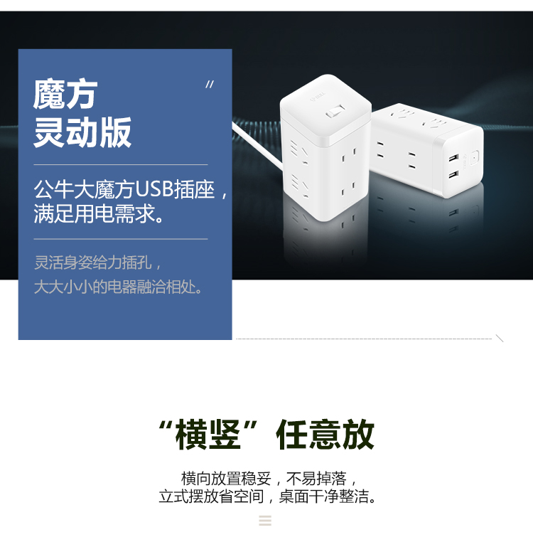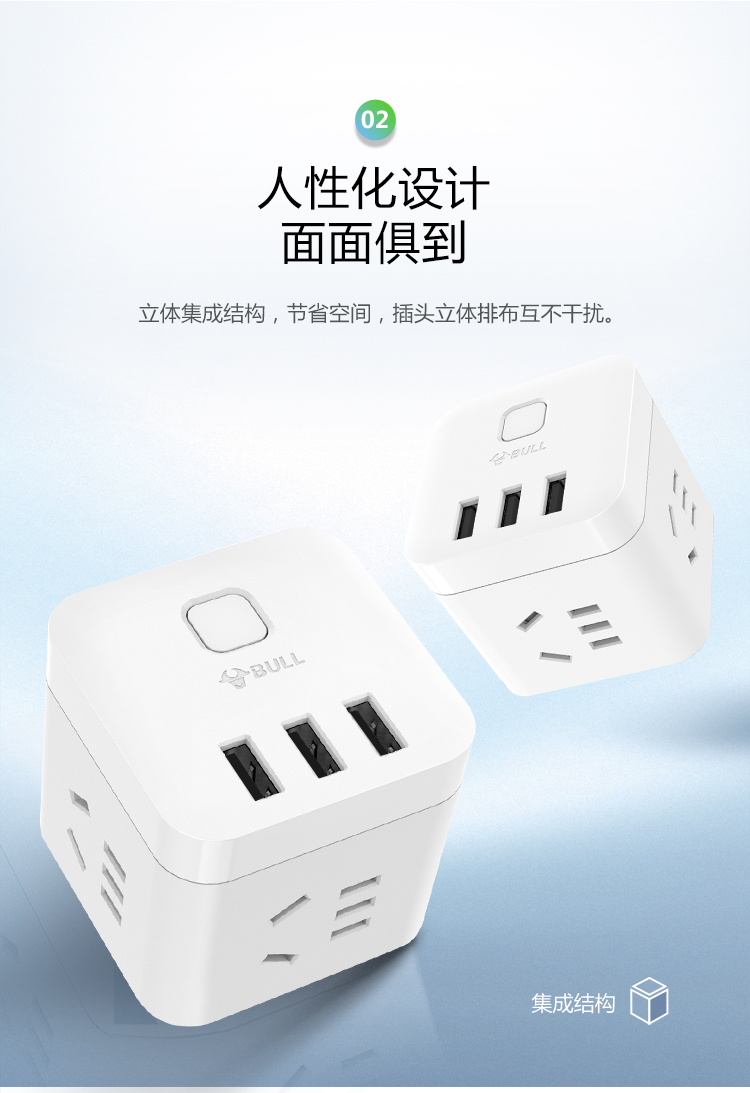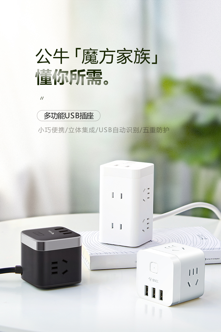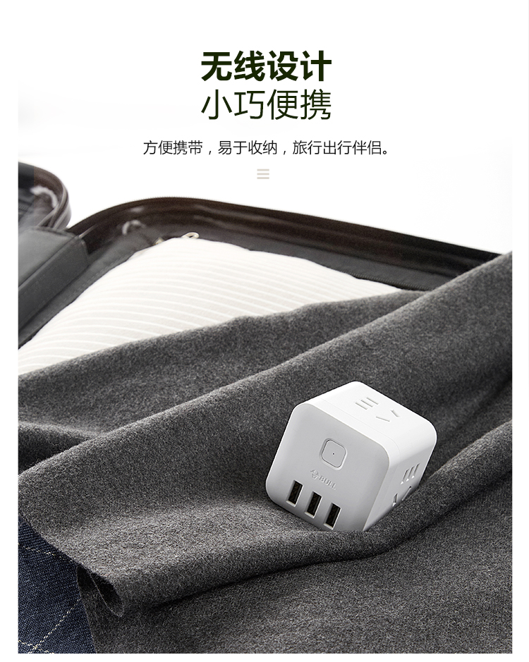 公牛(BULL) 小魔方USB插座 插线板/插排/排插/接线板 2孔+2USB口 无线魔方 GNV-U9B122