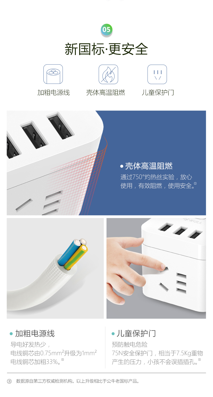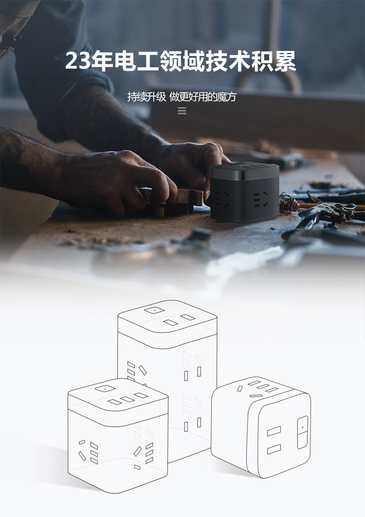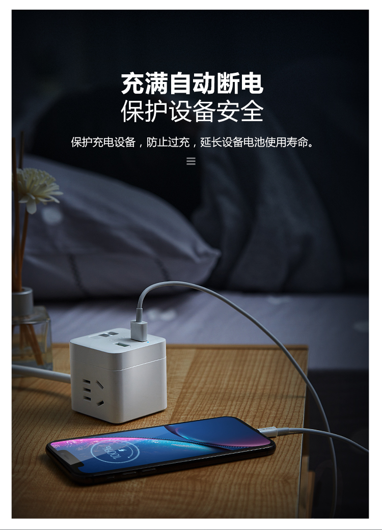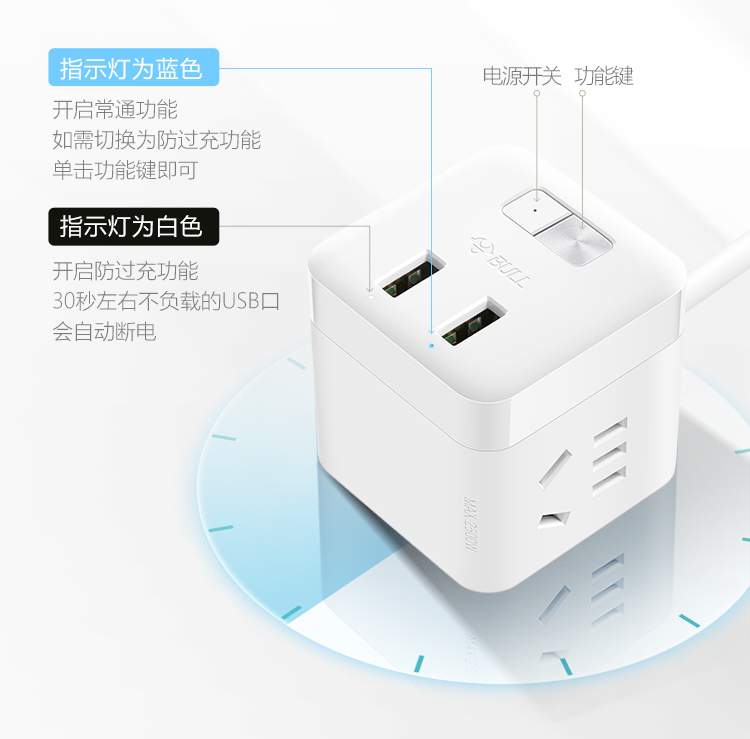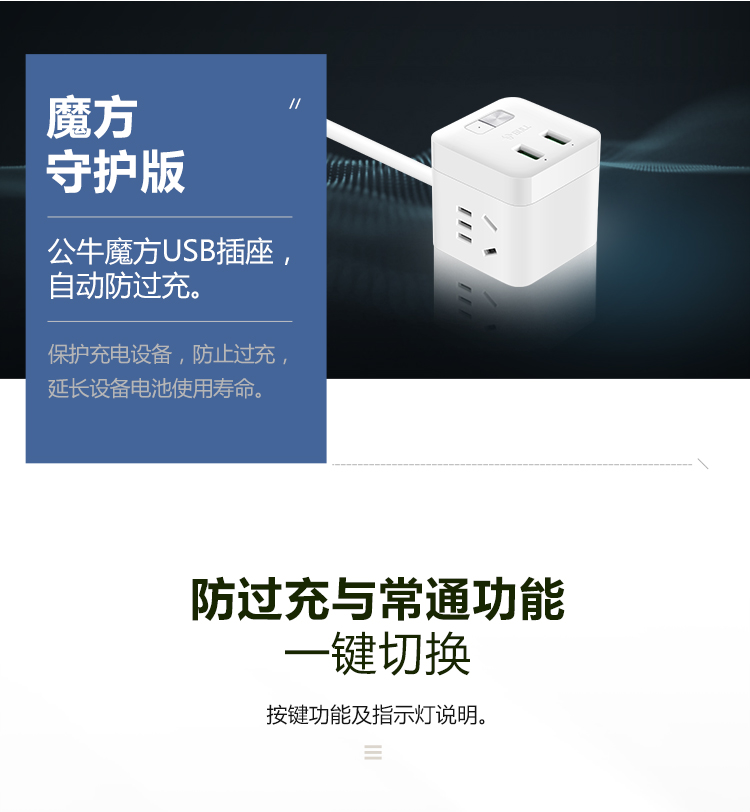 公牛(BULL) 小魔方USB插座 插线板/插排/排插/接线板 2孔+2USB口 无线魔方 GNV-U9B122