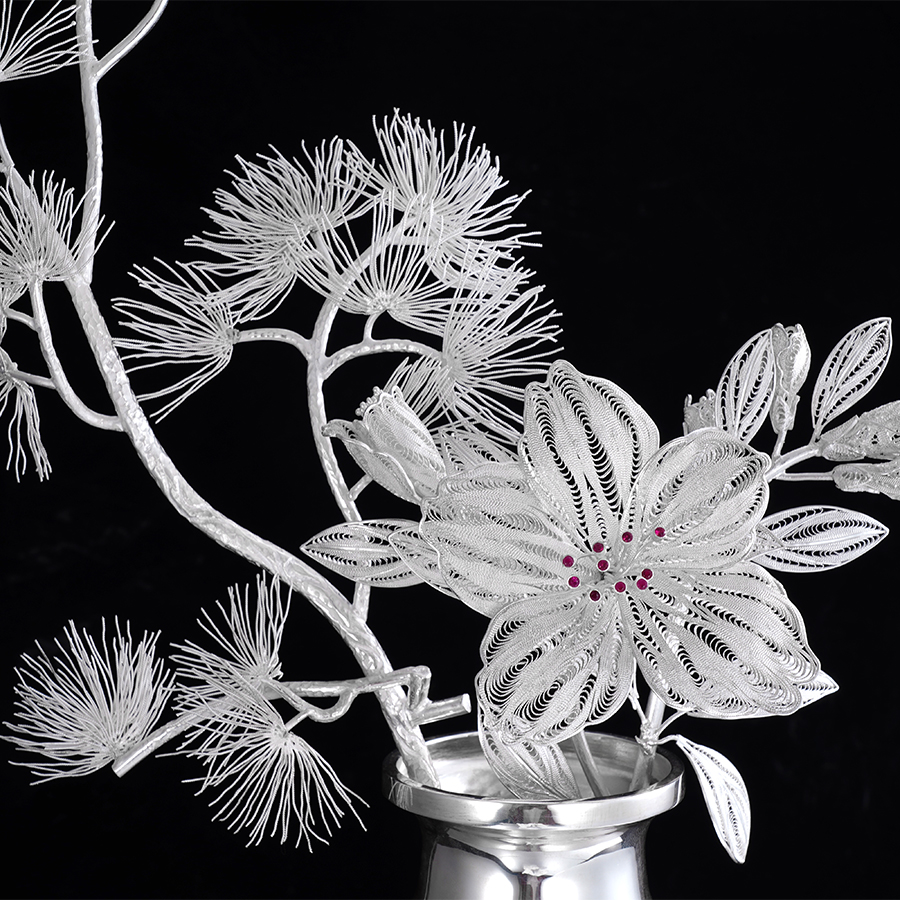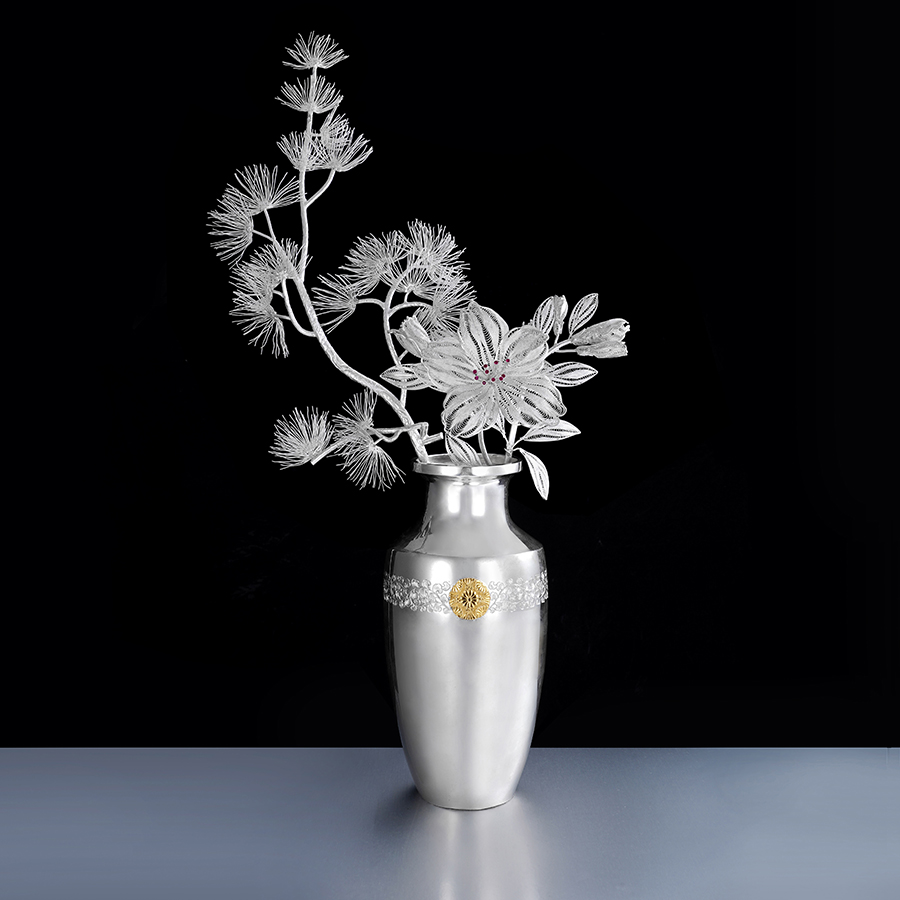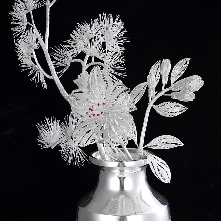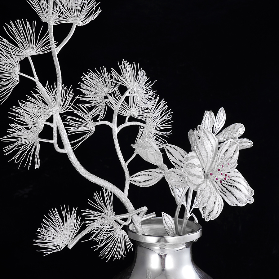 子佩集S999银手工银花丝【松间鹃鸣】花丝镶嵌插花瓶大师工坊原创设计【SJJMHP】2409
