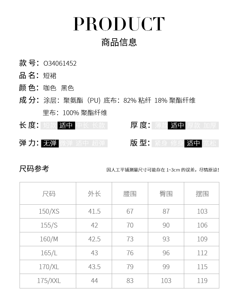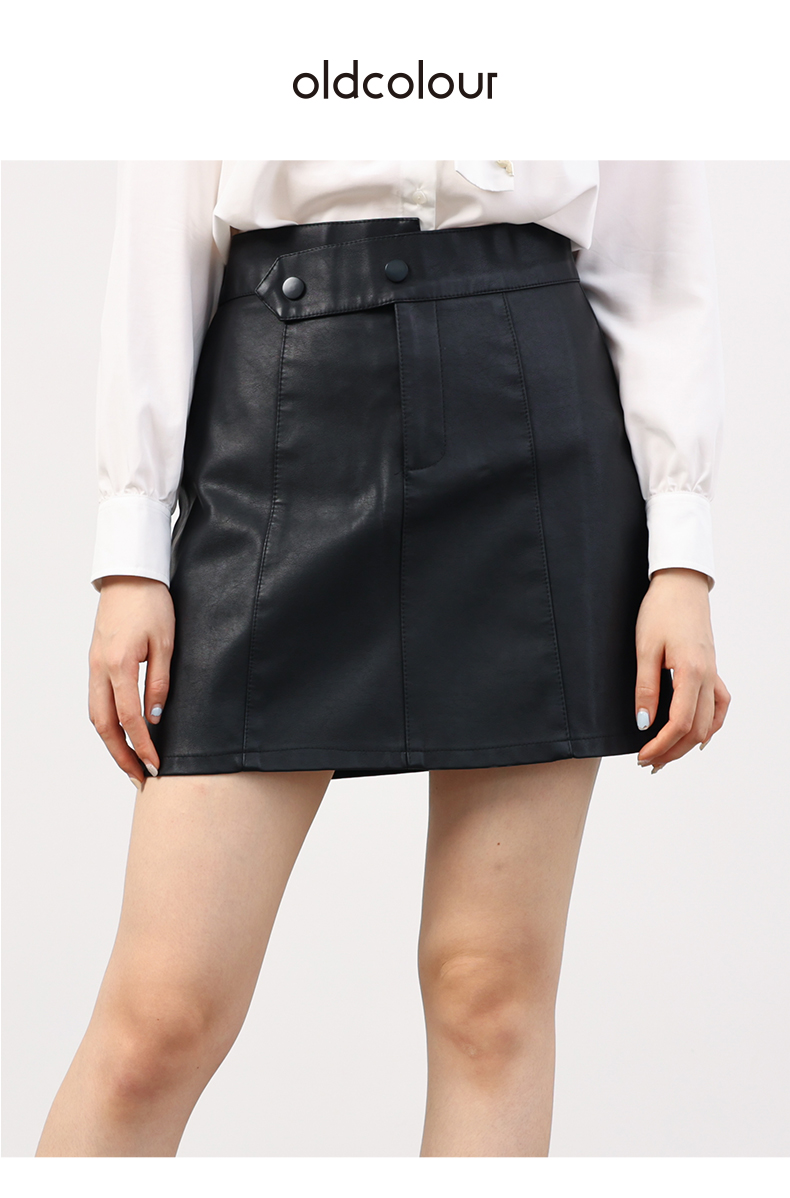 oldcolour欧珂女商场同款高腰a字包臀PU皮裙女O34061452