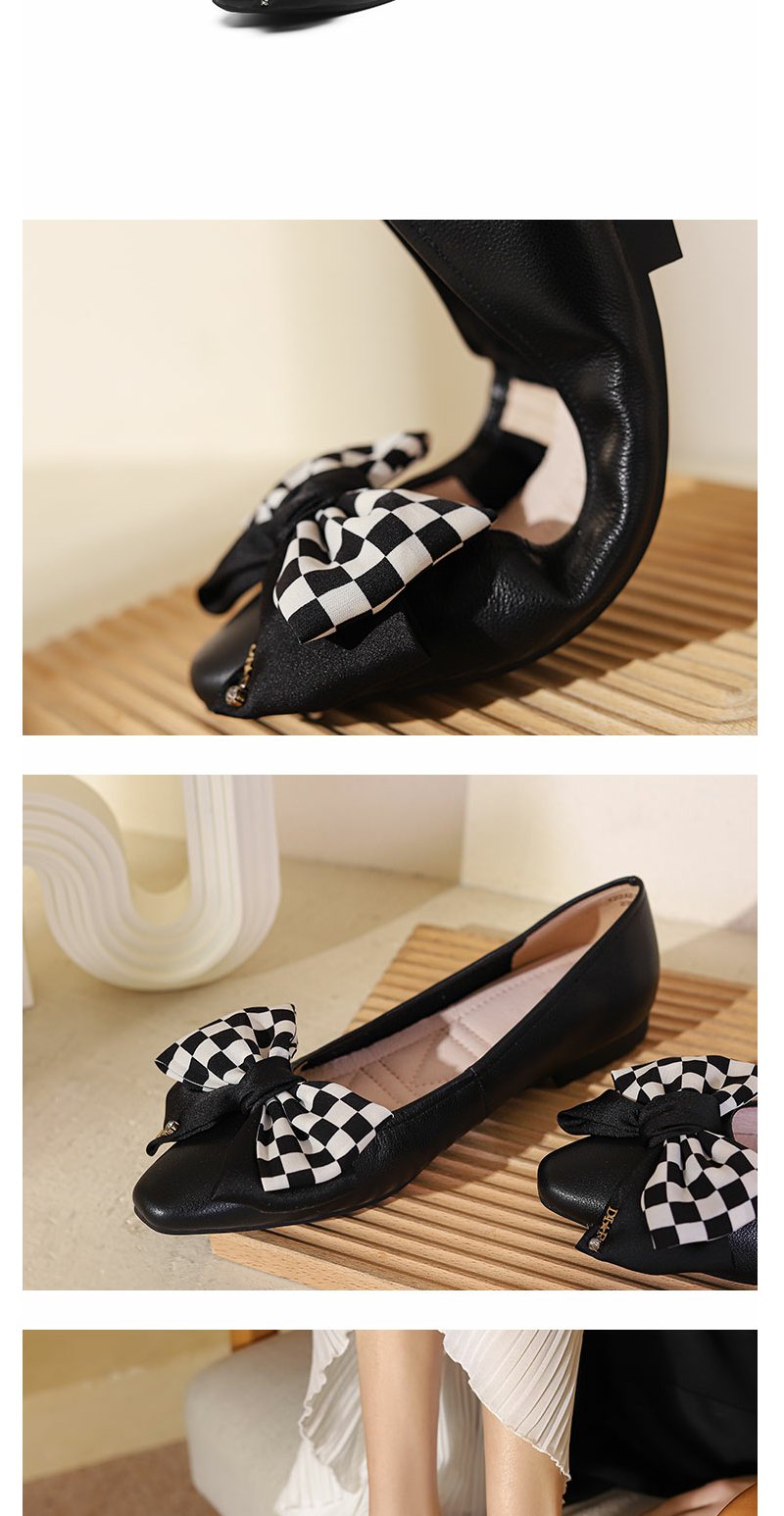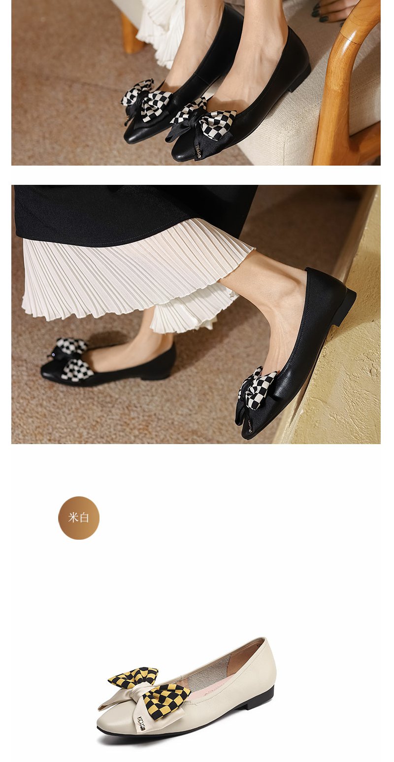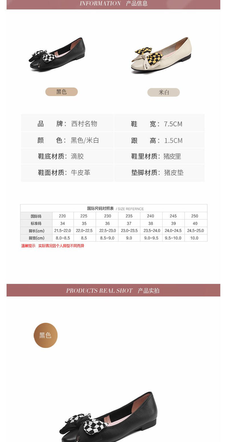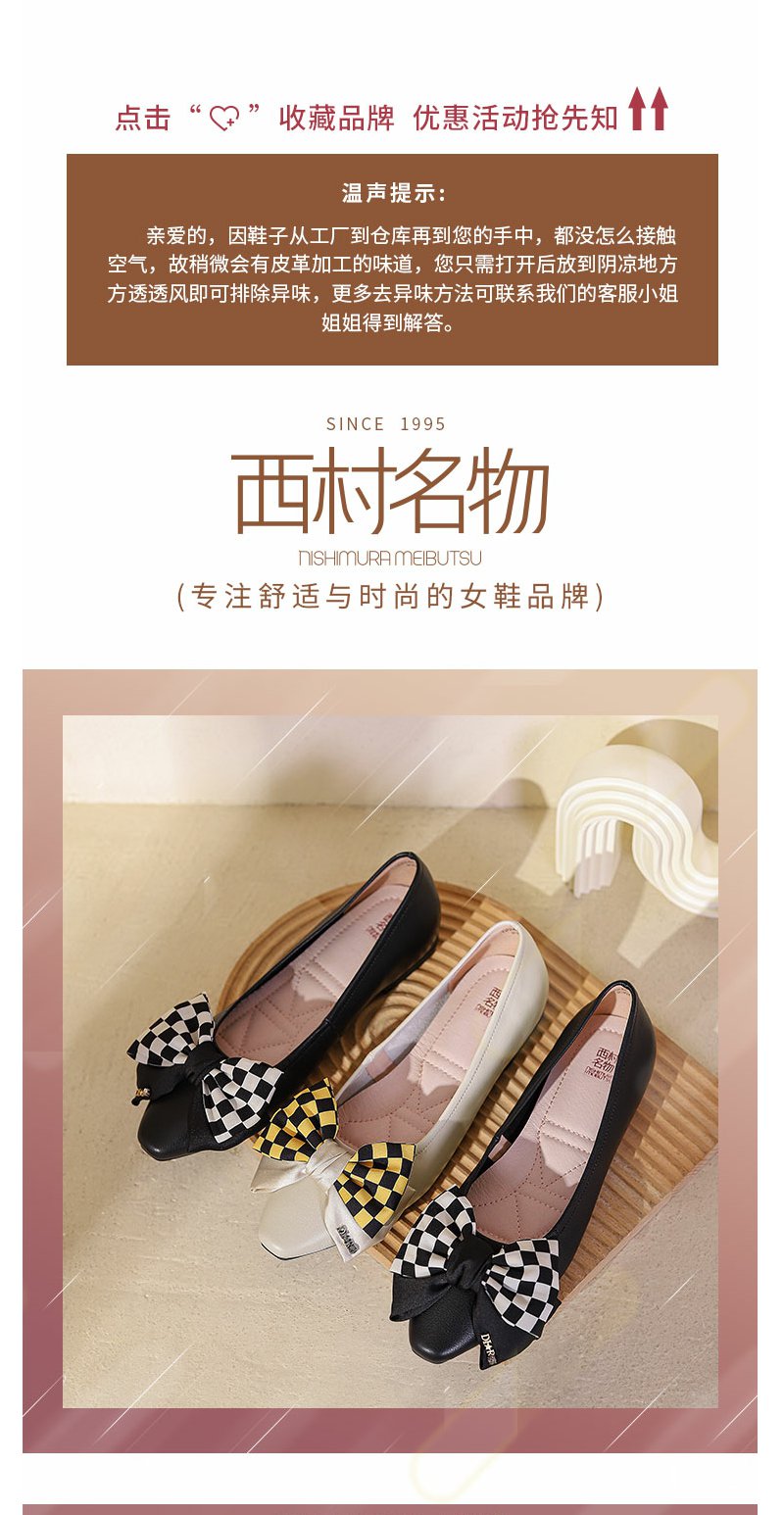 西村名物2022年春季新款棋盘格饰扣浅口女单鞋平底时装鞋T22AE19291