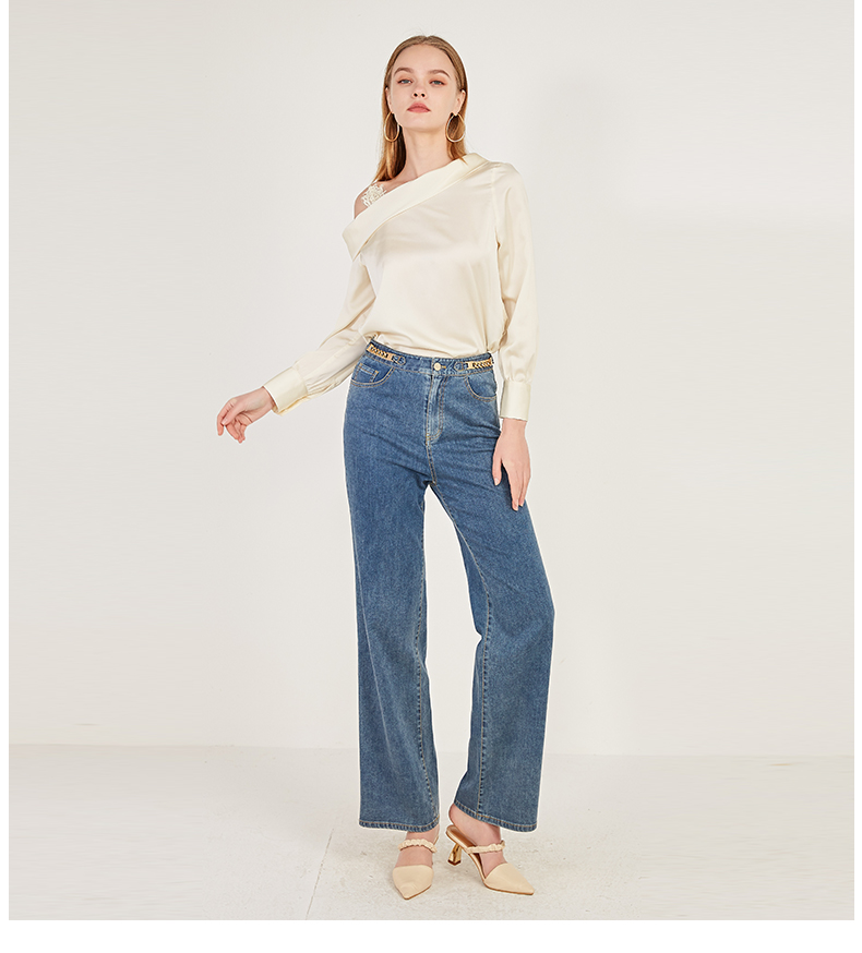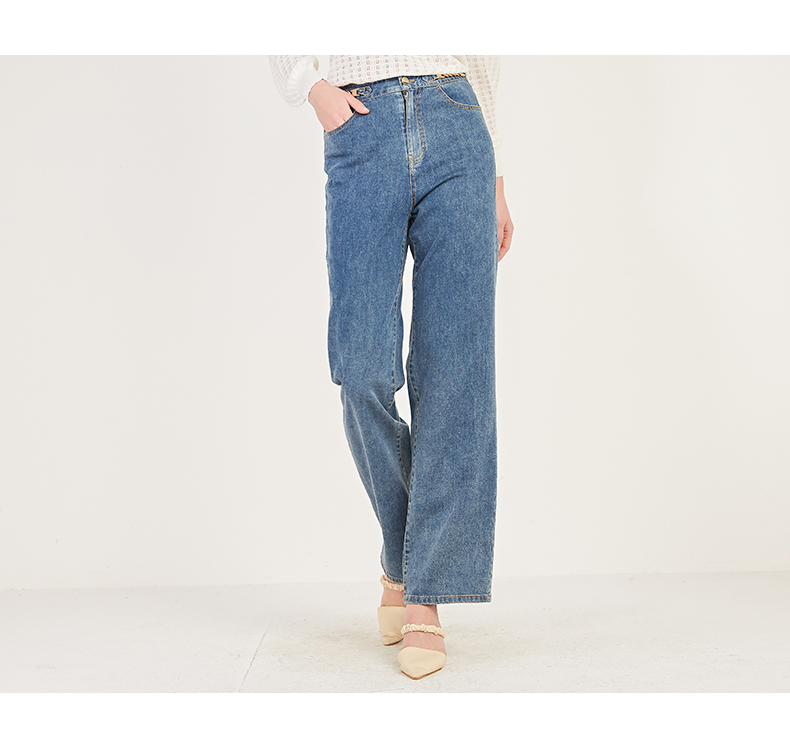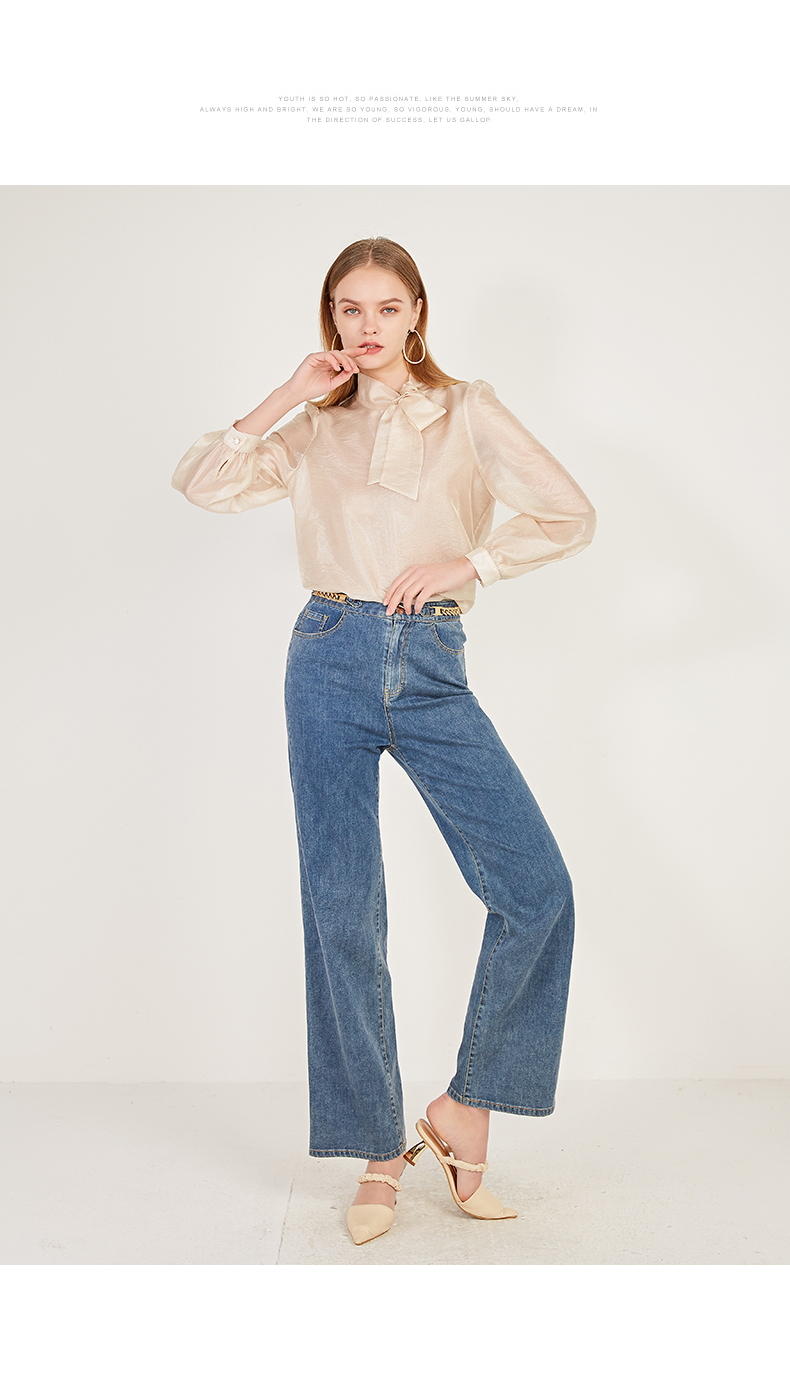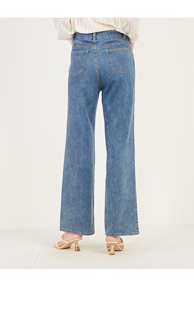 oldcolour春季棉质高腰气质休闲牛仔阔腿裤女