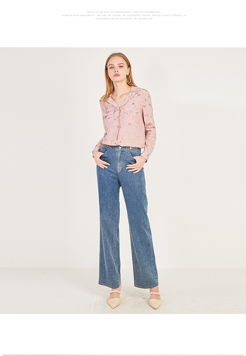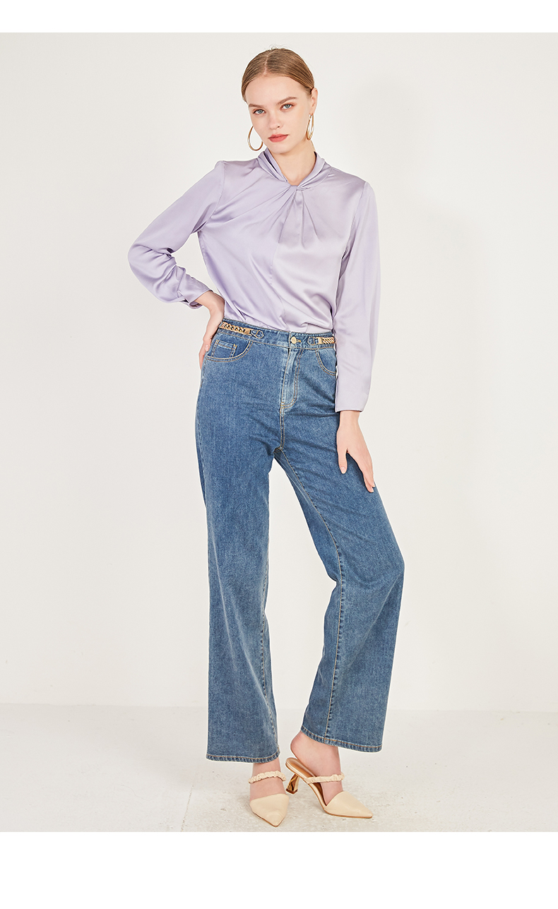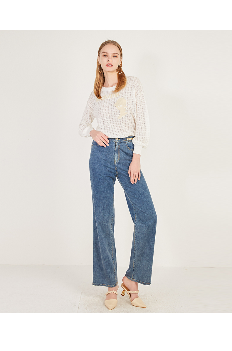 oldcolour春季棉质高腰气质休闲牛仔阔腿裤女