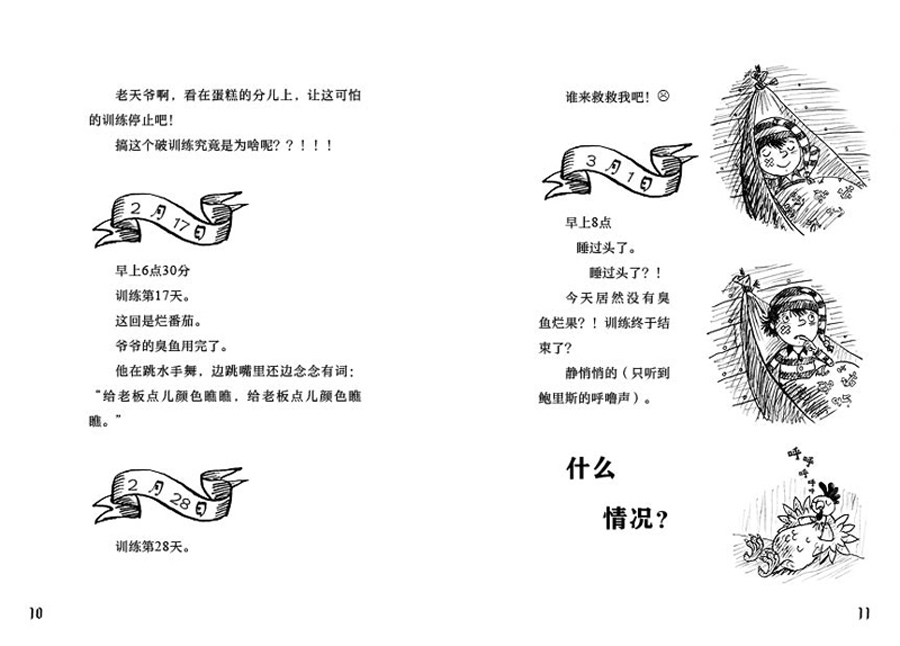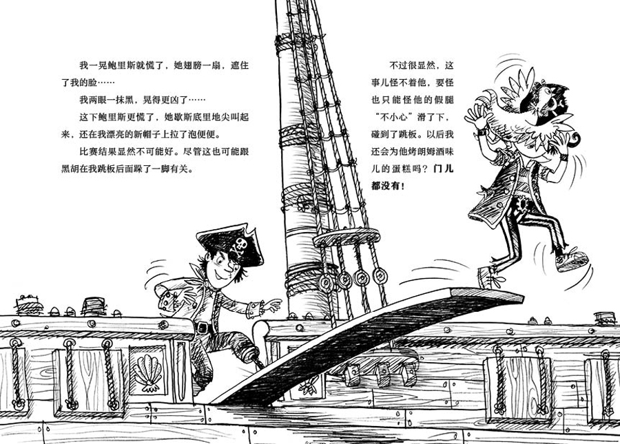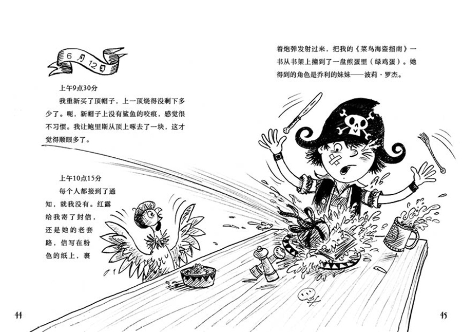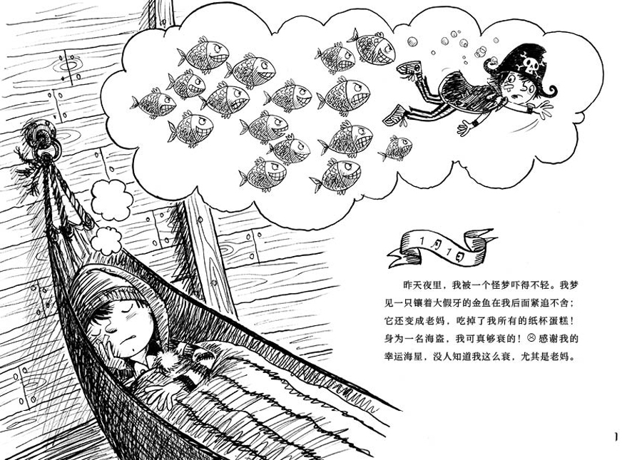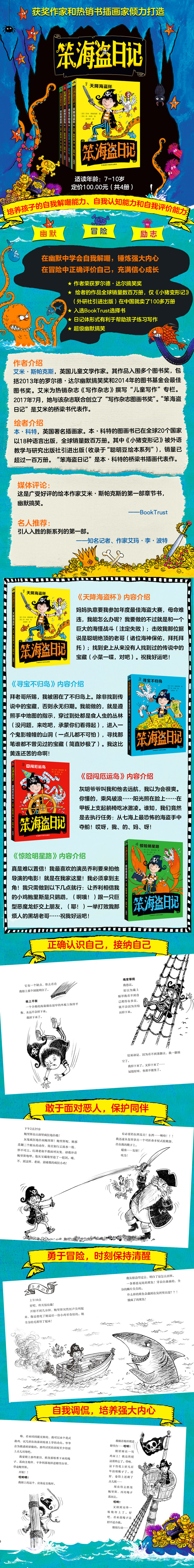 《笨海盗日记1 天降海盗杯》:冒失胡是史上非常差劲的海盗,就连他的宠物鹦鹉都嫌弃他,离他而去了。他害怕鱼,喜欢咬指甲,喜欢烤纸杯蛋糕,总是迷路。为了能往哟嗬银行存进100英镑以保留海盗资格,他被迫参加了海盗年度大赛。谁知出师不利,海盗技能大赛,走跳板、爬绳、击剑、炮弹射击四个项目有3个得了0分,击剑项目所得的1分竟然是评委奖励他的!与北海巨妖海里摔跤,他误打误撞,找到了巨妖的弱点,谁知*后不仅得分为0,就连先前的1分都被拿掉了。只剩下*后一个比赛了——死神岛寻宝,胆小又迷糊的冒失胡能找到宝藏,反败为胜吗?他还能保留海盗资格吗?