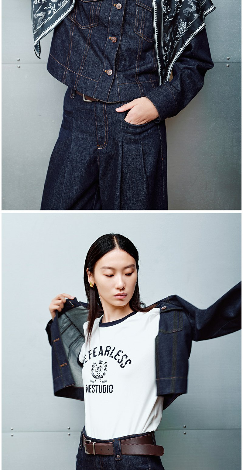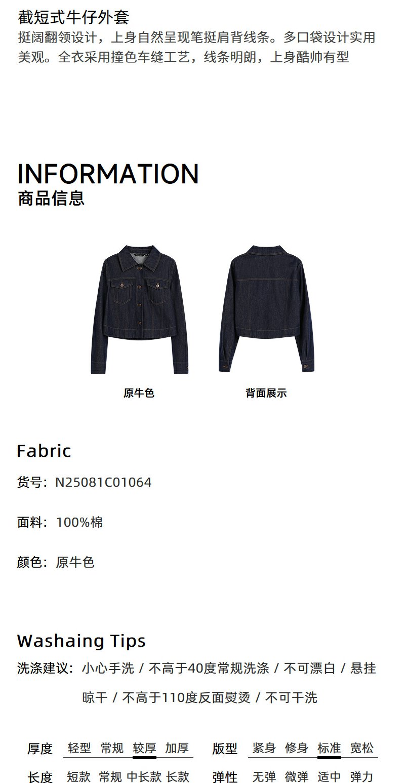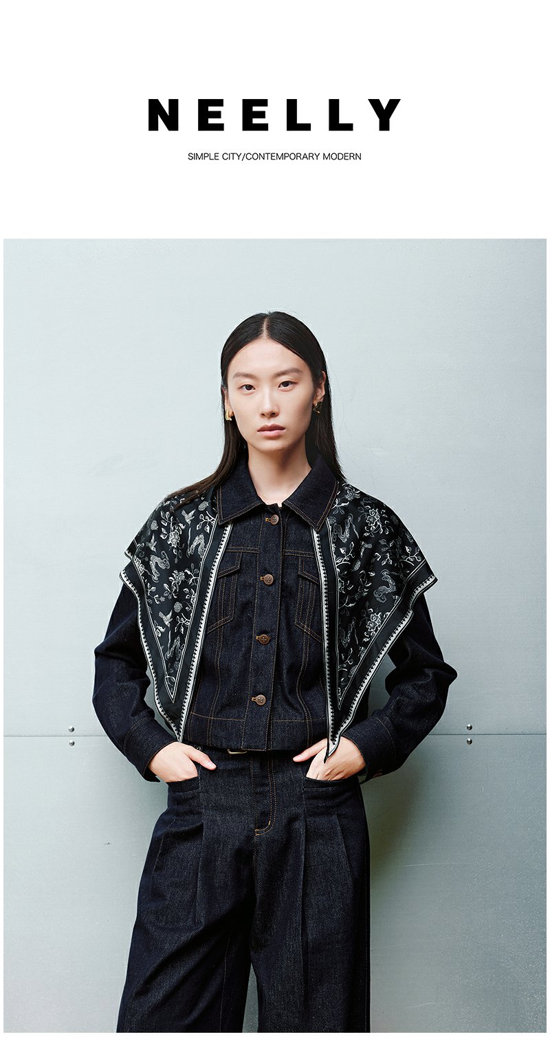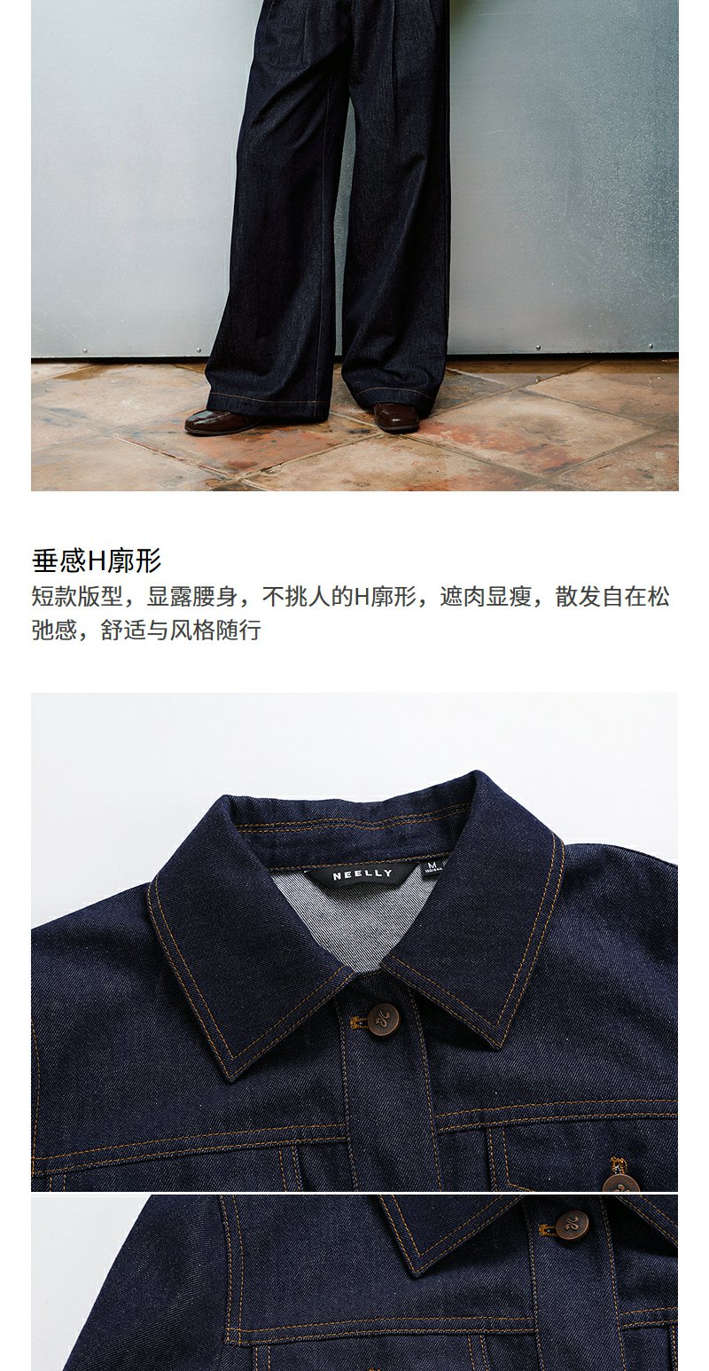 NEELLY纳俪商场同款秋季新款经典翻领百搭牛仔外套女休闲个性上衣N25081C01064