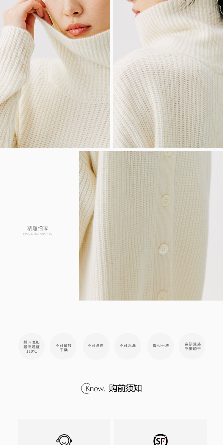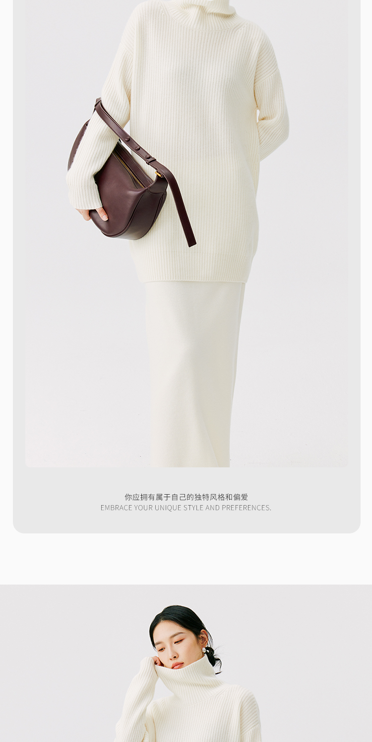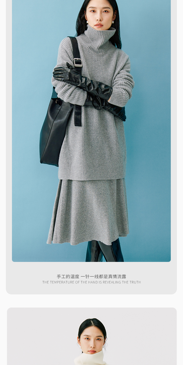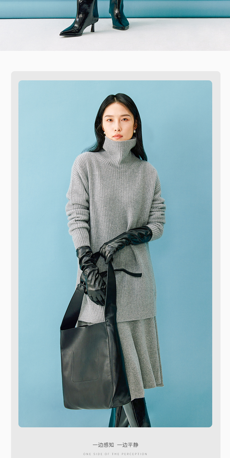 东黎 • 小山羊绒女士秋冬高领后开叉简约套衫 4764