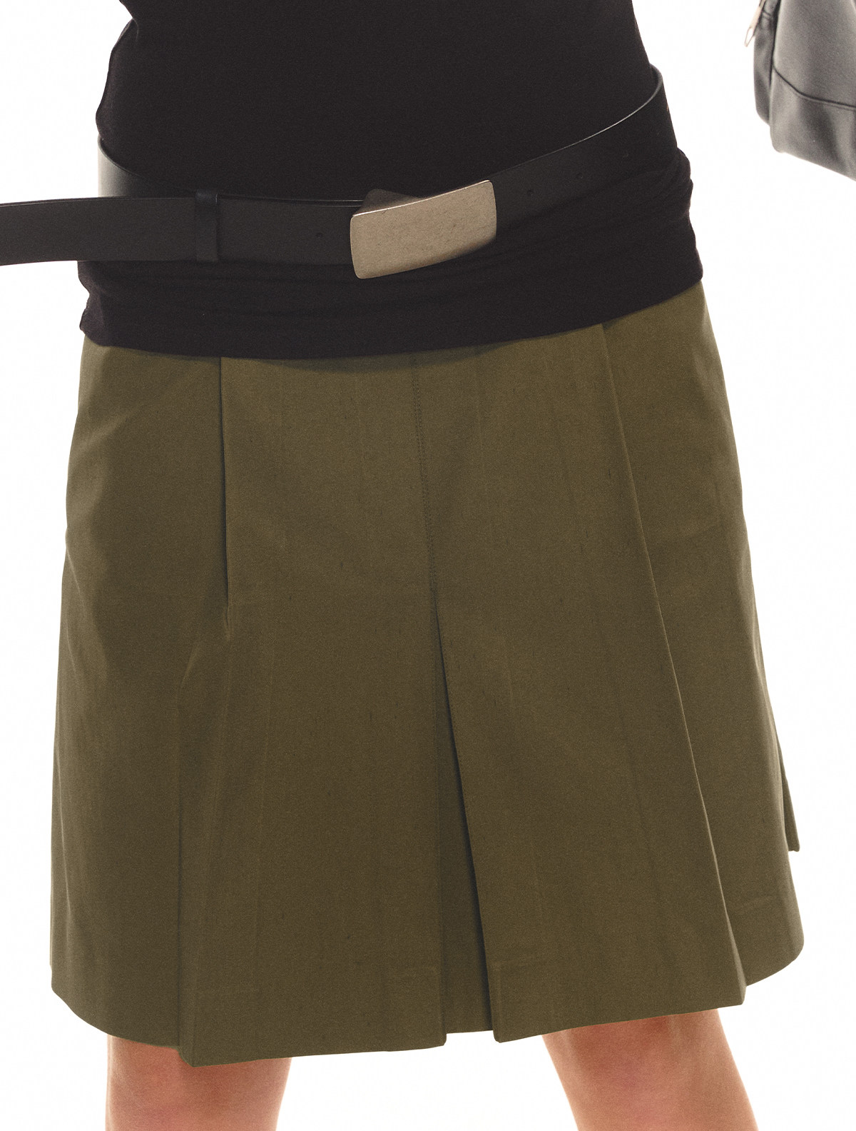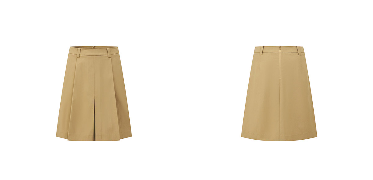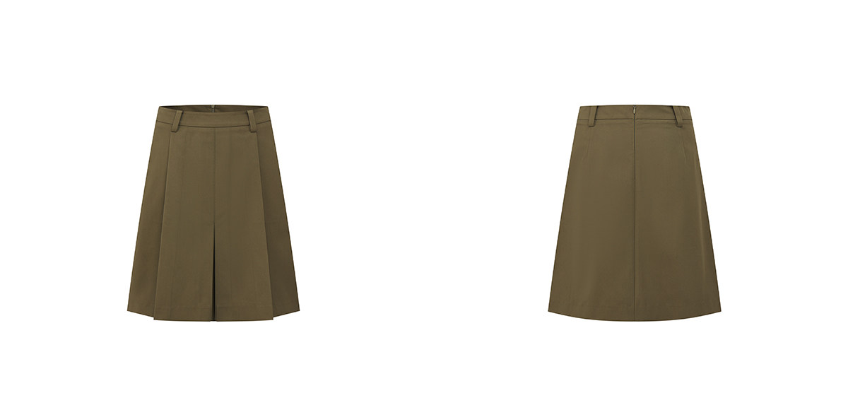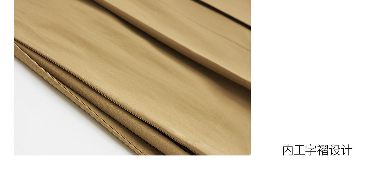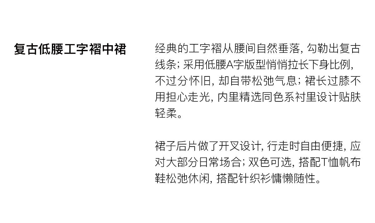 Evistub girls/E-6CZQ1918/复古褶裥中裙 尼龙肌理挺括开叉A型低腰半裙