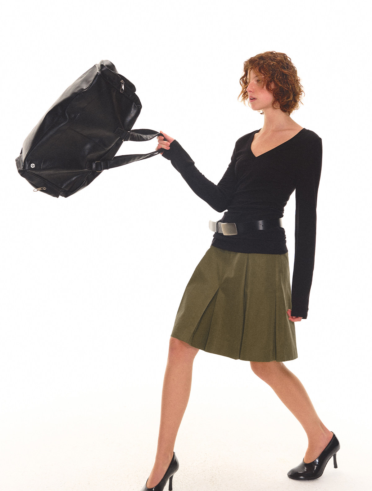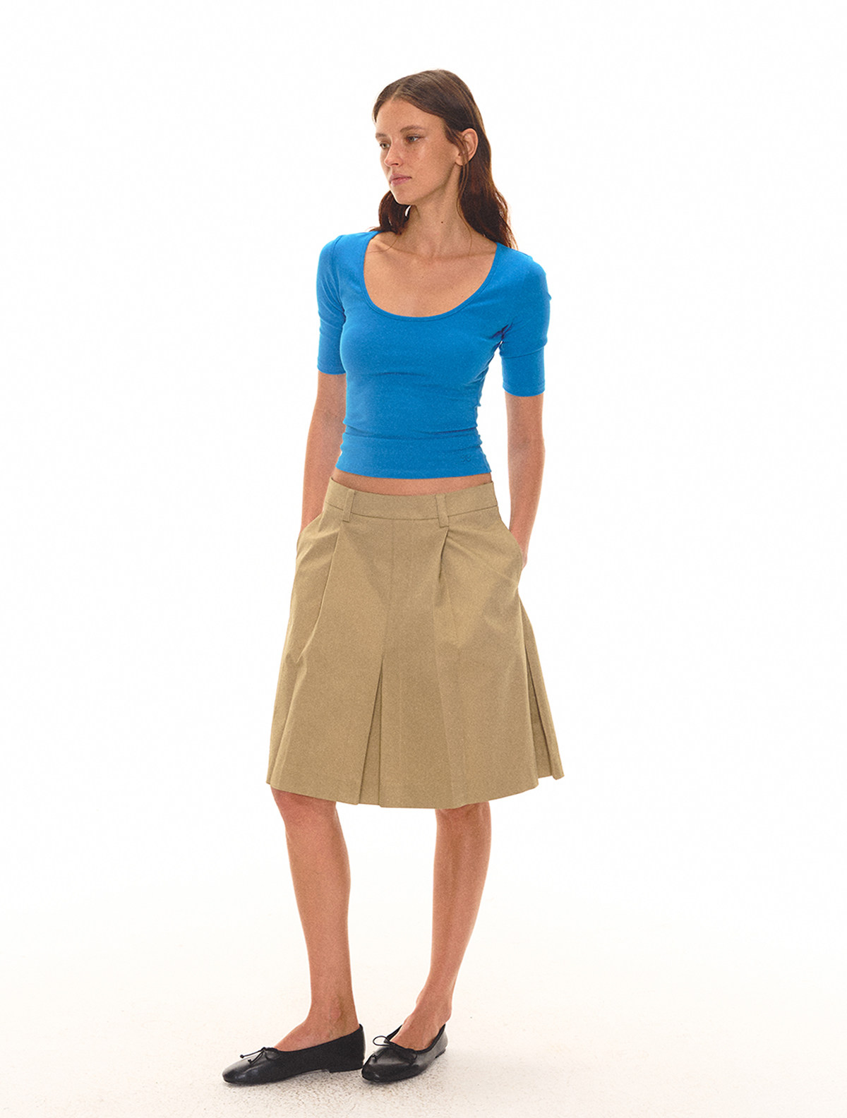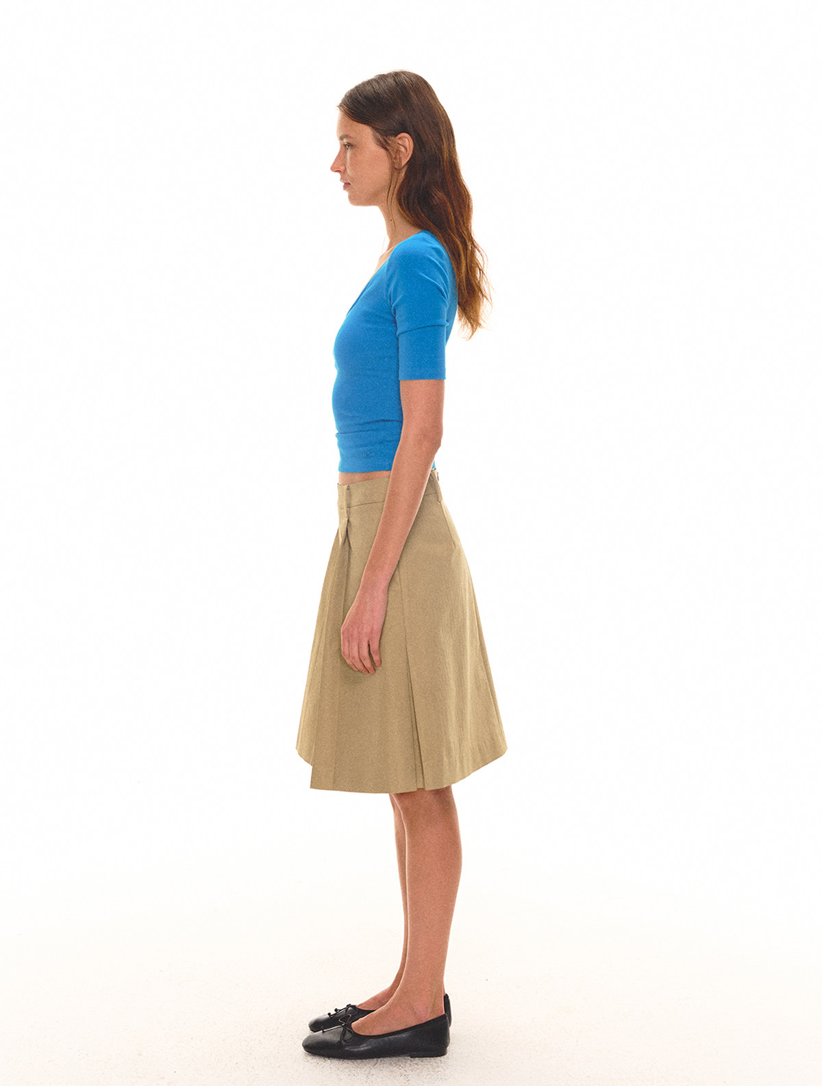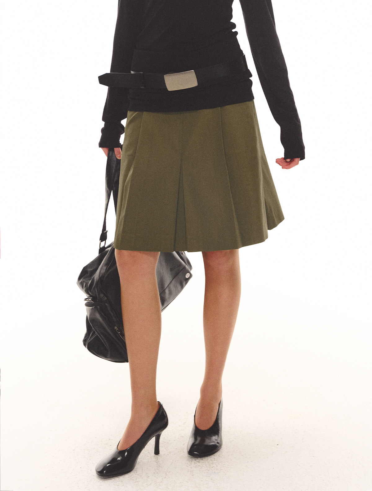 Evistub girls/E-6CZQ1918/复古褶裥中裙 尼龙肌理挺括开叉A型低腰半裙
