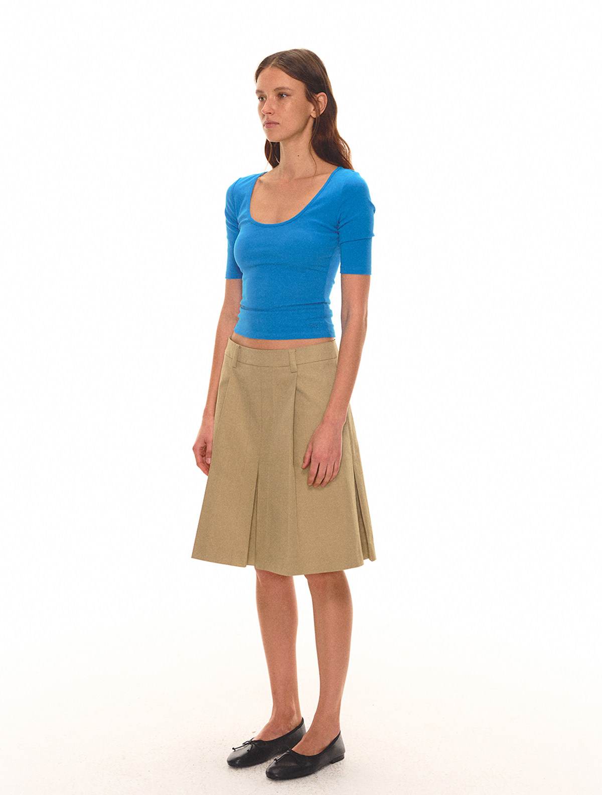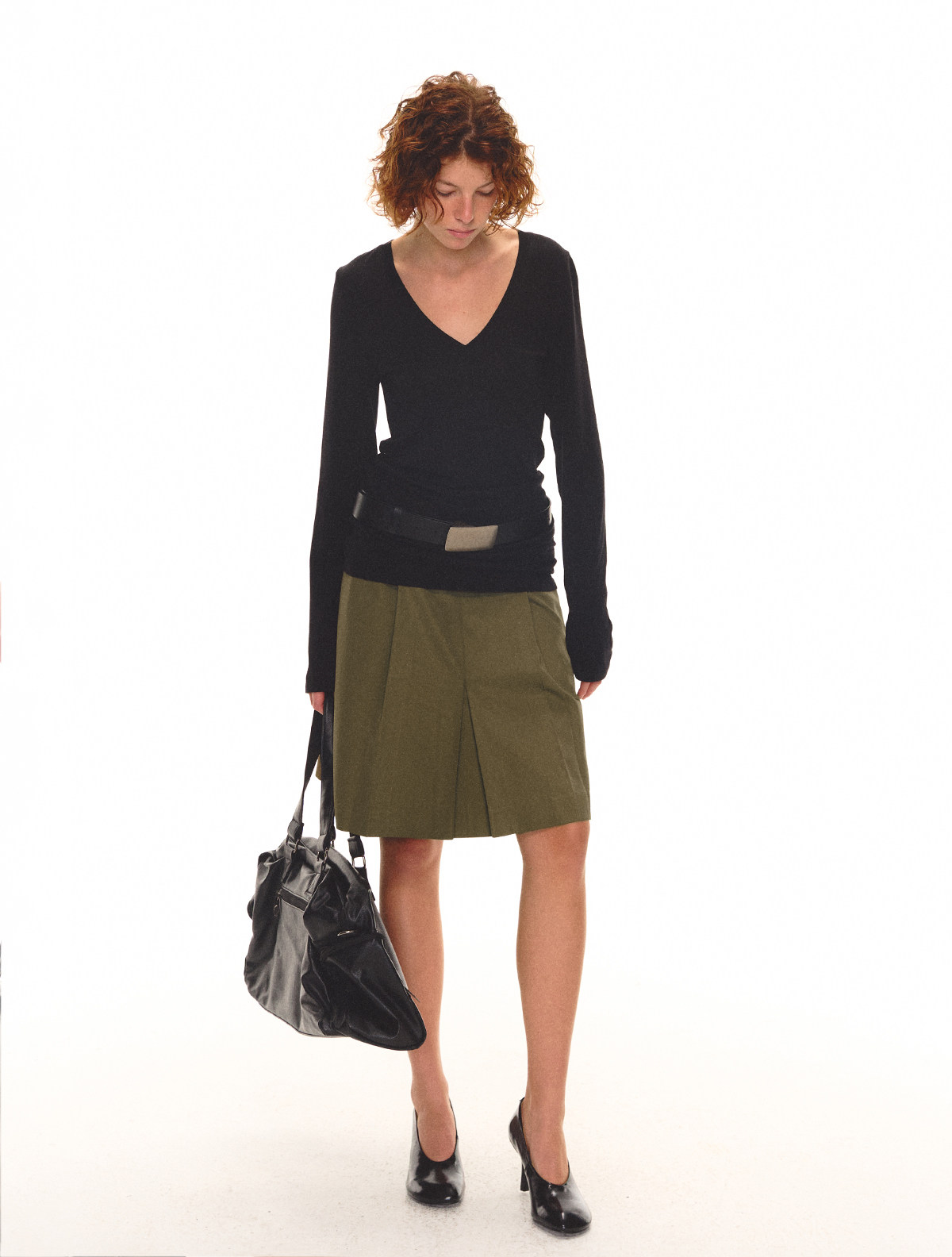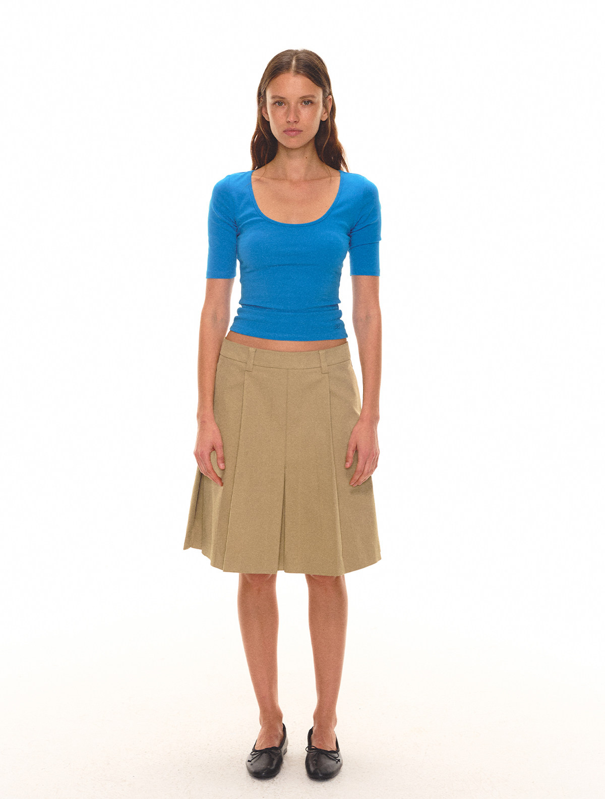 Evistub girls/E-6CZQ1918/复古褶裥中裙 尼龙肌理挺括开叉A型低腰半裙