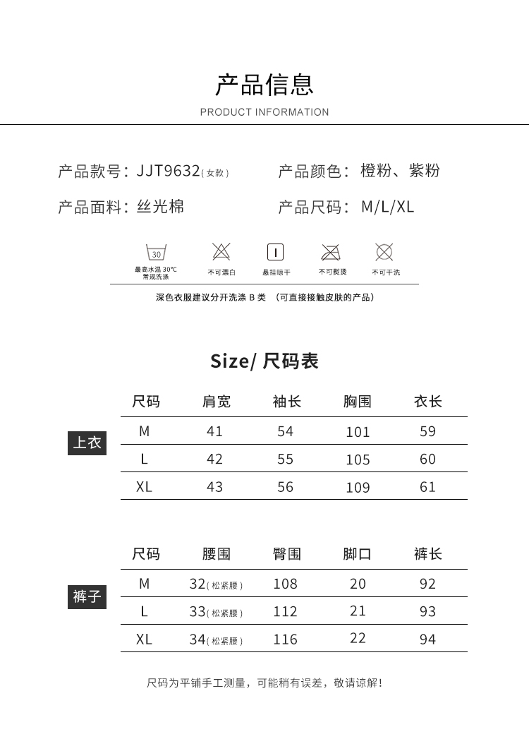 皇家丽美宽松版有弹性舒适柔软女士睡衣套装JJT9632