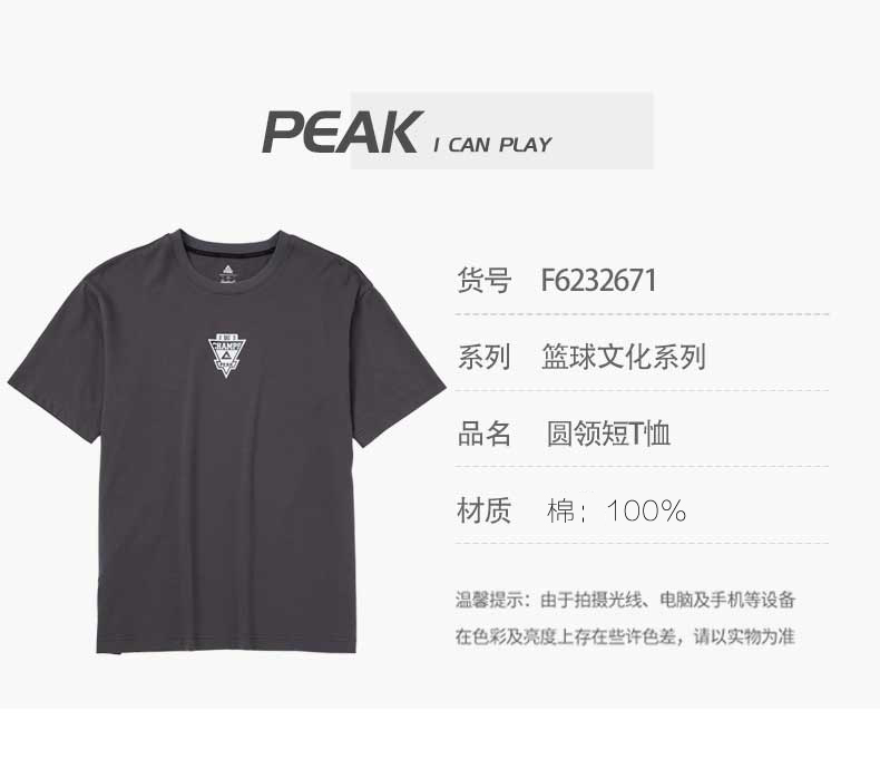 匹克纯棉圆领短T恤男2023夏新款时尚透气休闲运动短袖t恤F6232671