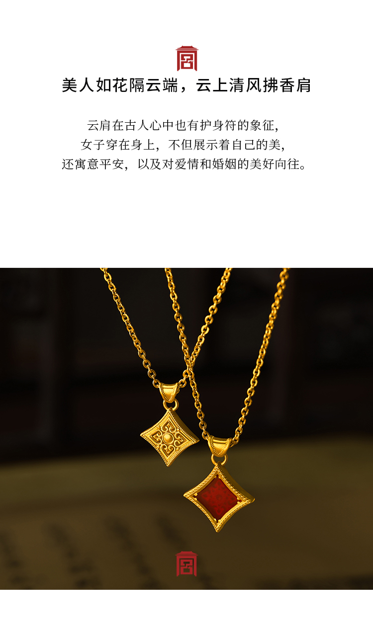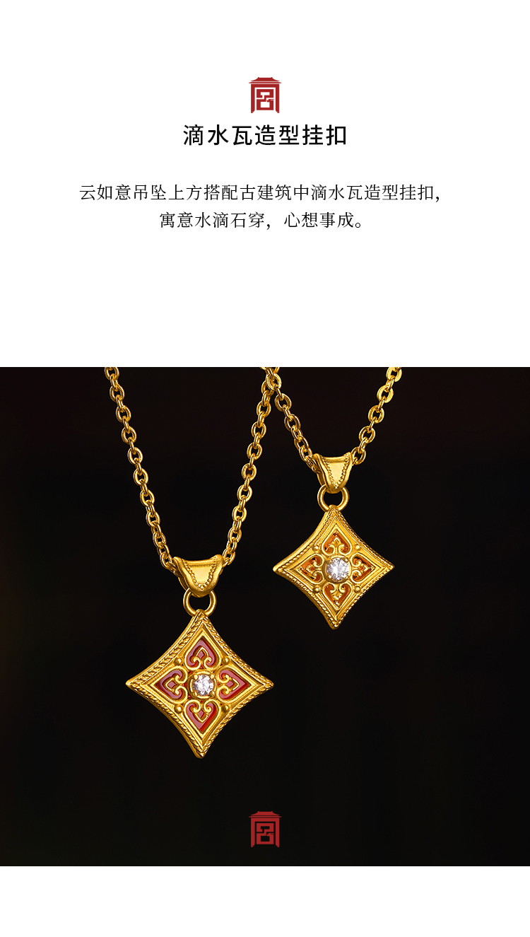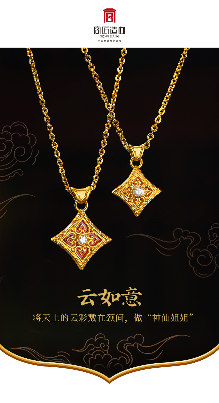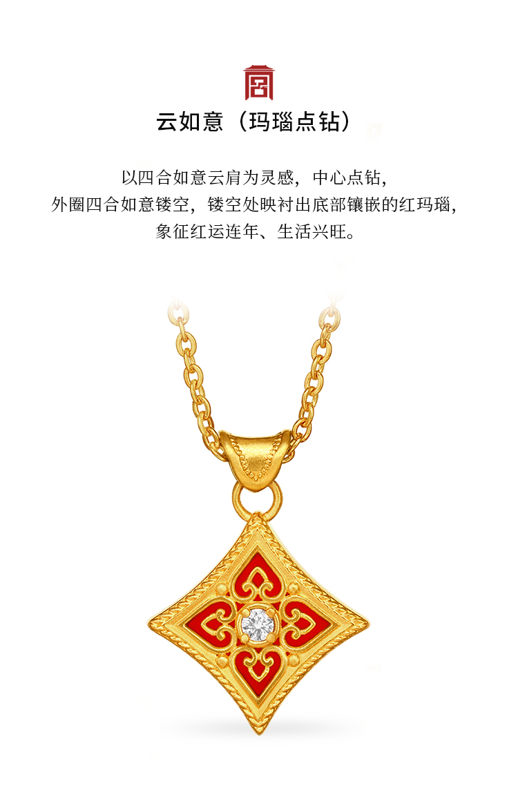 宫匠造办 云如意吊坠 黄金点钻/玛瑙点钻