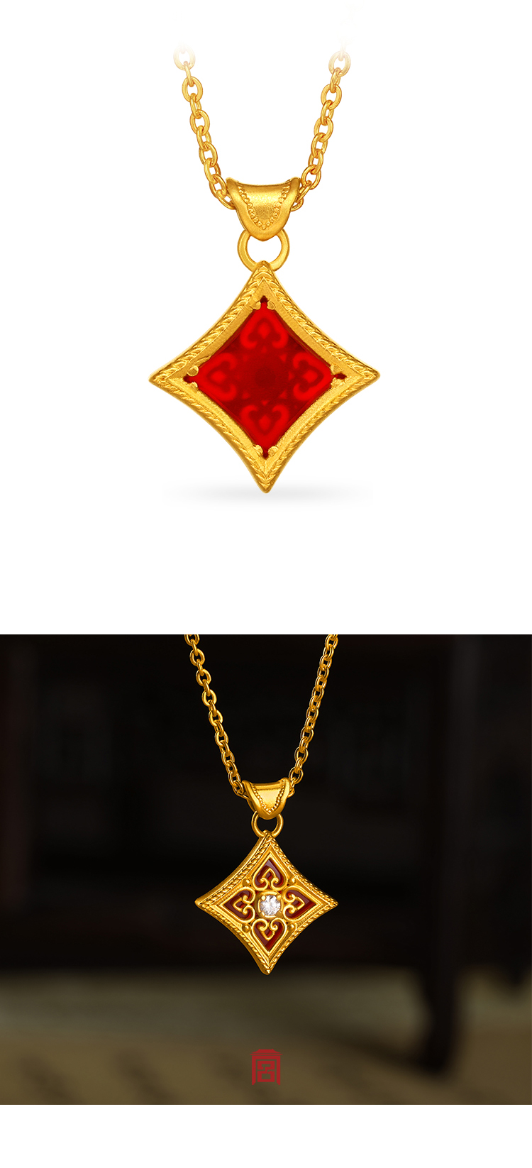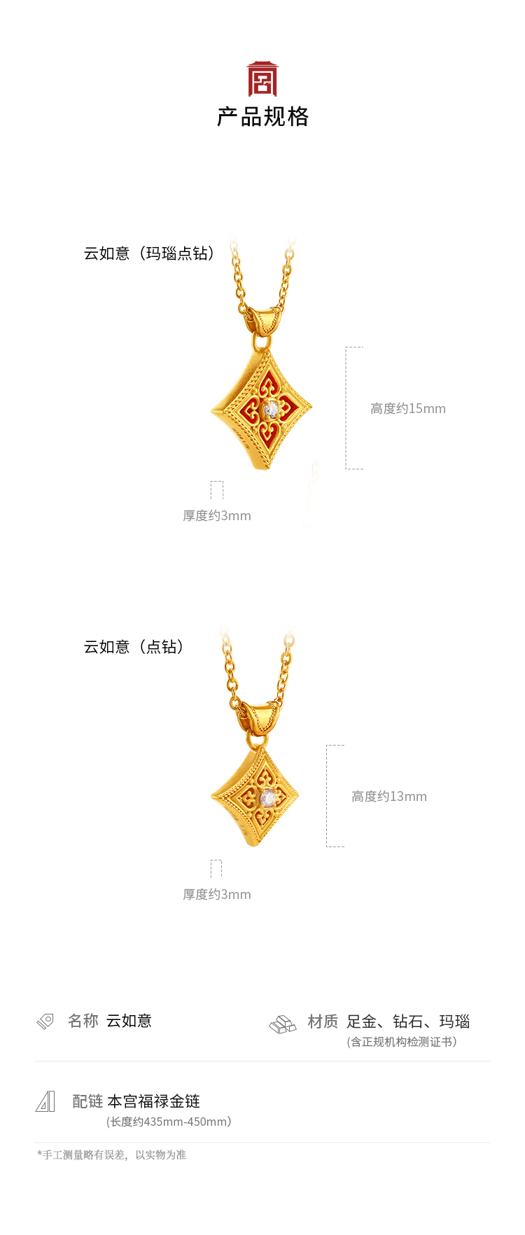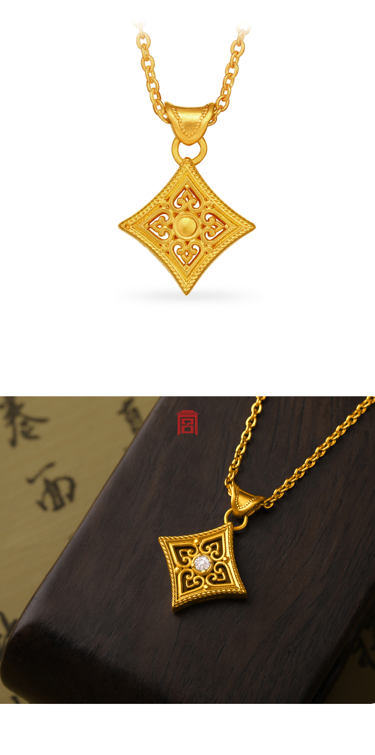 宫匠造办 云如意吊坠 黄金点钻/玛瑙点钻