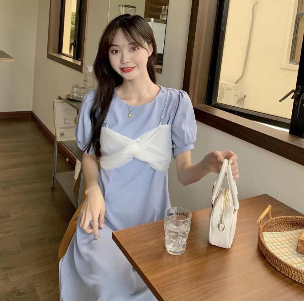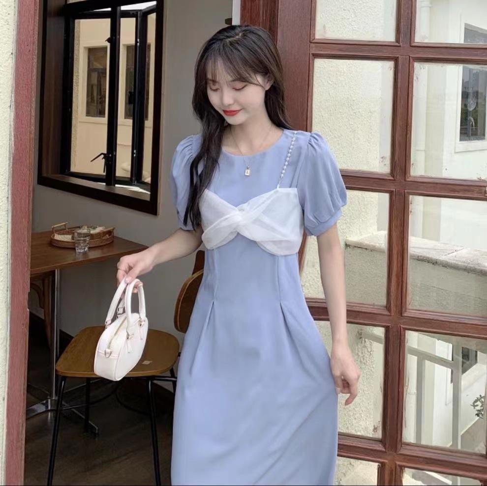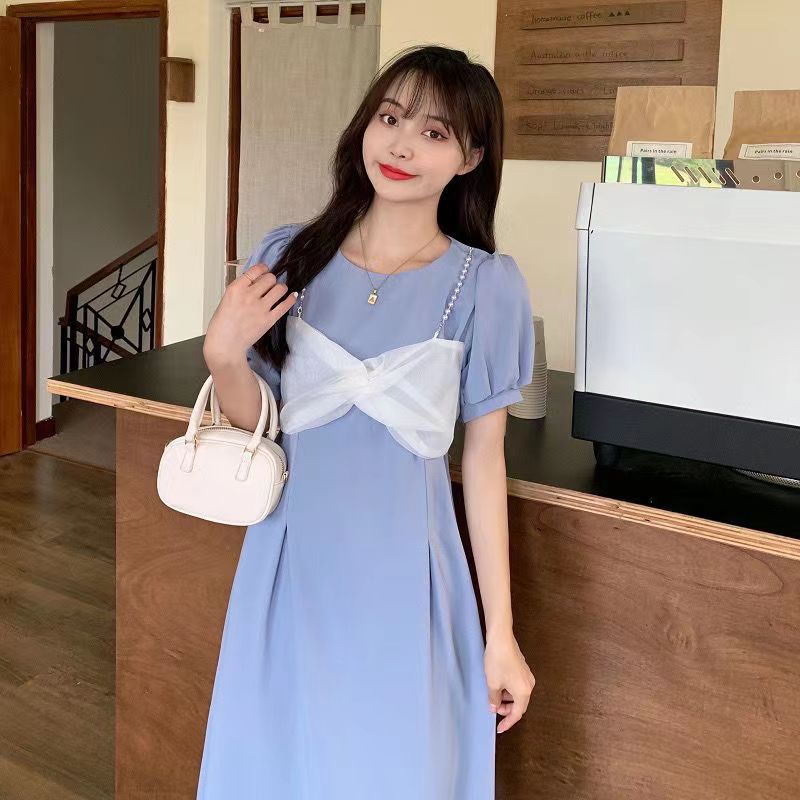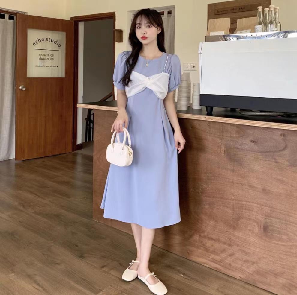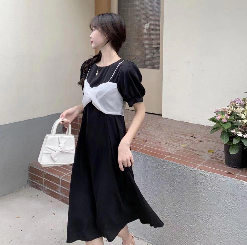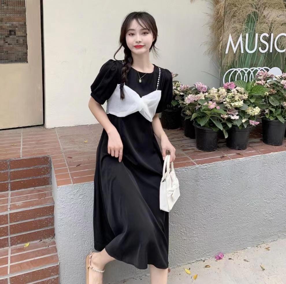 (清仓现货)【社群供A】气质连衣裙小众赫本风蝴蝶结中长裙涤纶