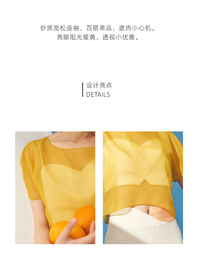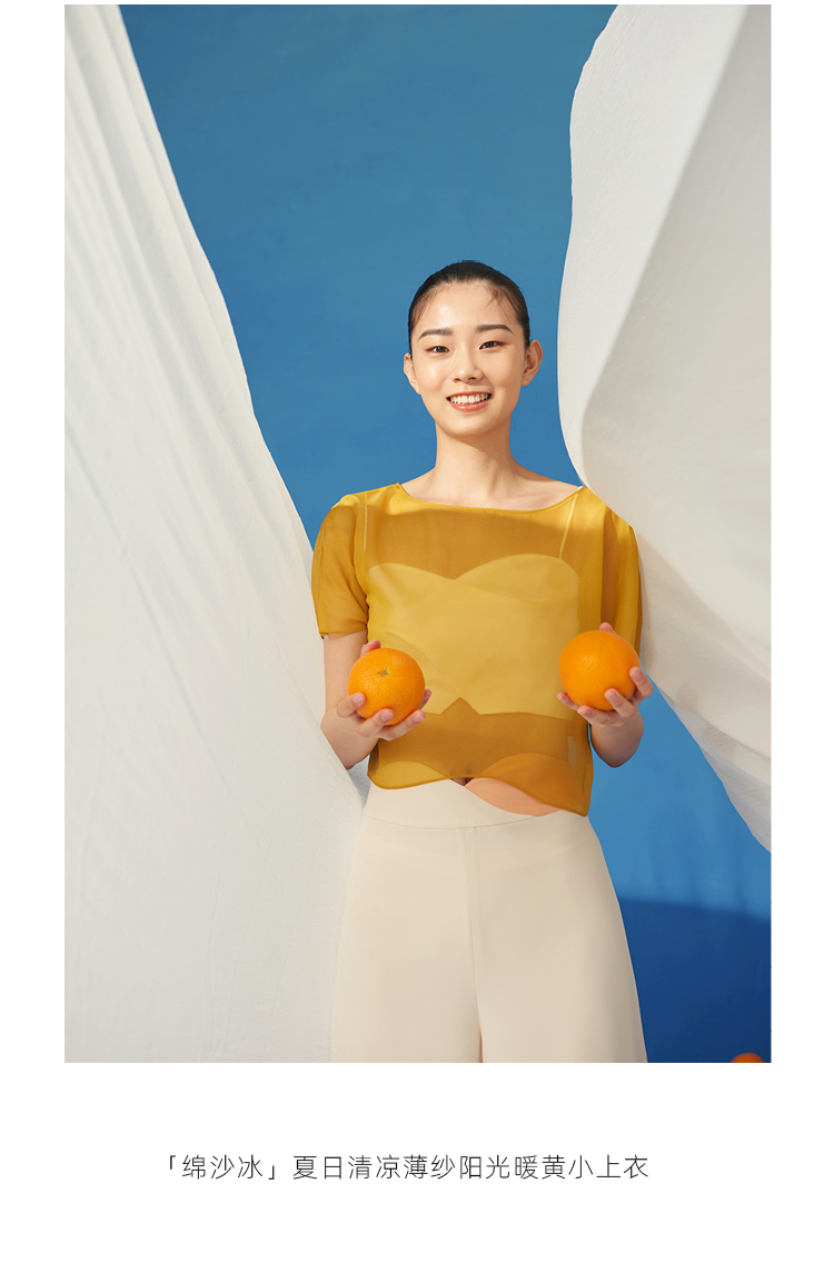 【绵沙冰】夏日防晒薄纱阳光暖黄遮肉小上衣/00193A