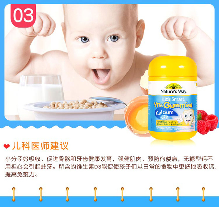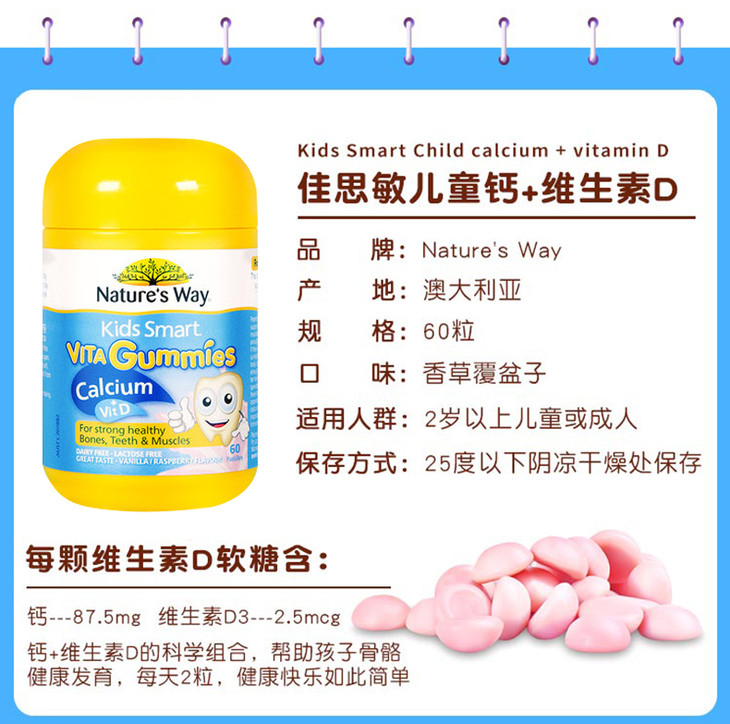 【保税仓】澳洲Nature's Way佳思敏 钙+维生素D软糖 60粒 商品图0