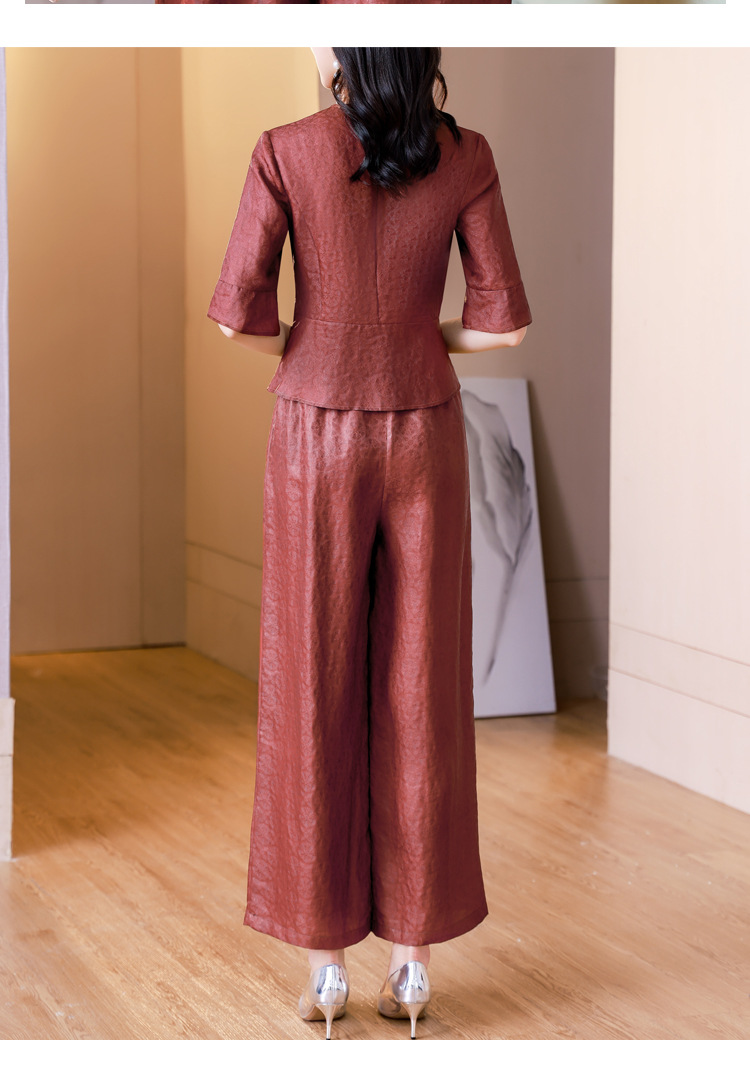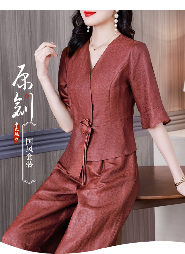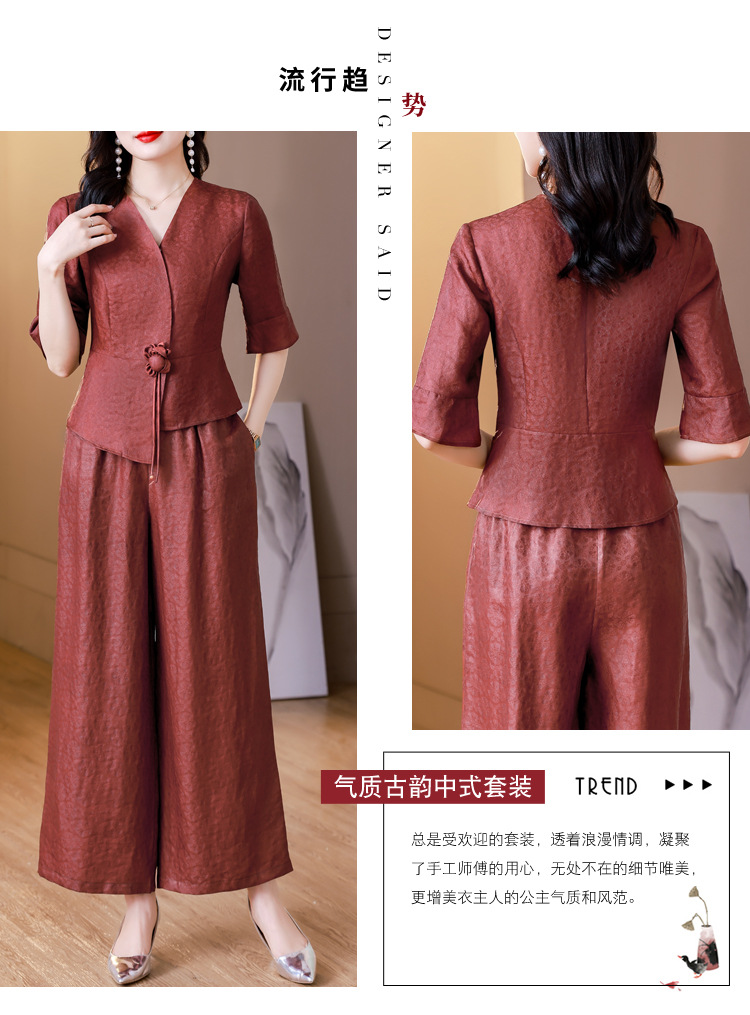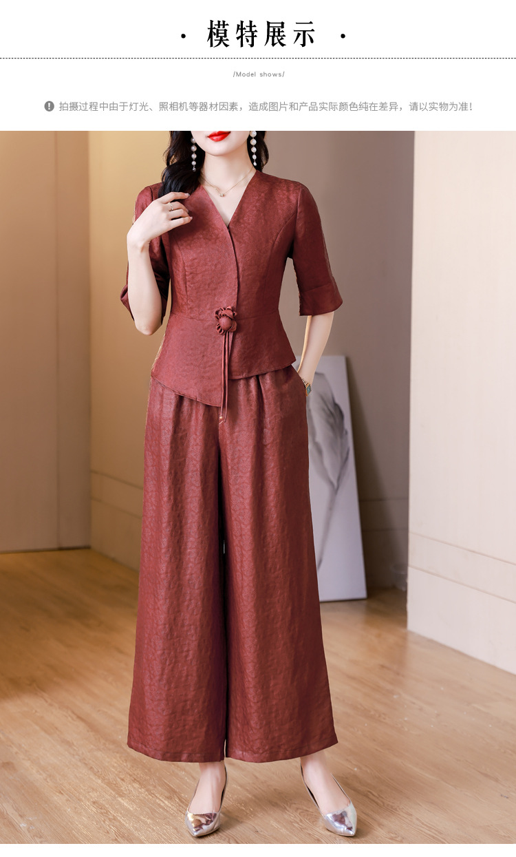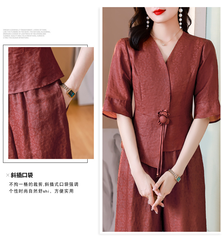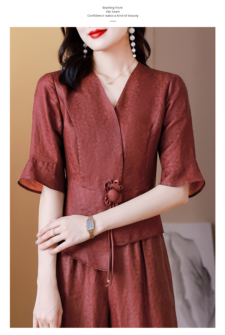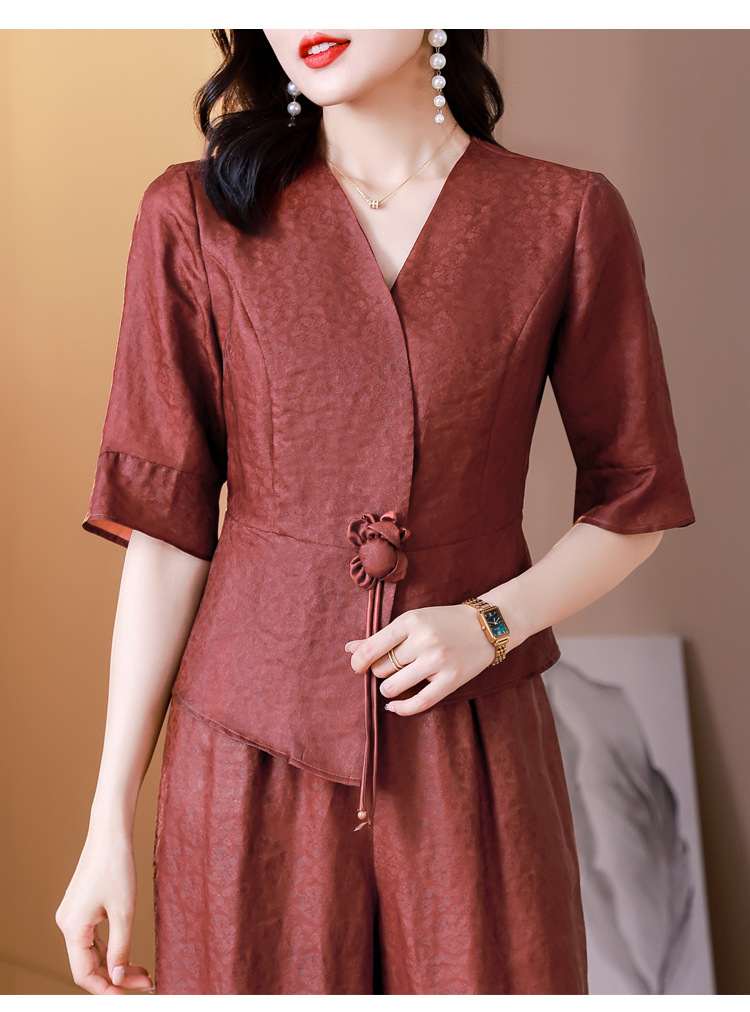 新中式仿香云纱,红色衬衫阔腿裤时尚两件套AHM-blx9536