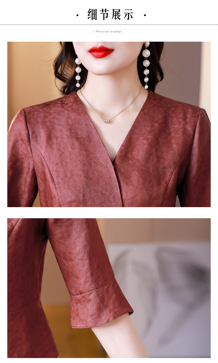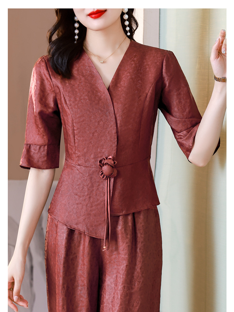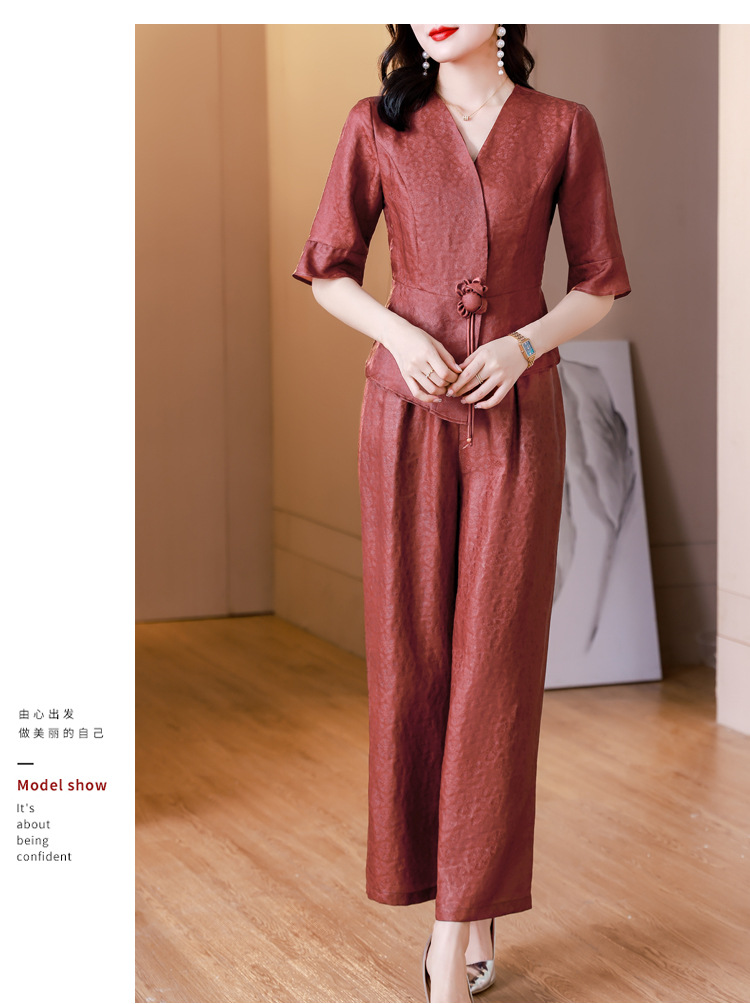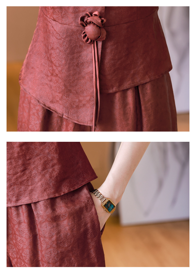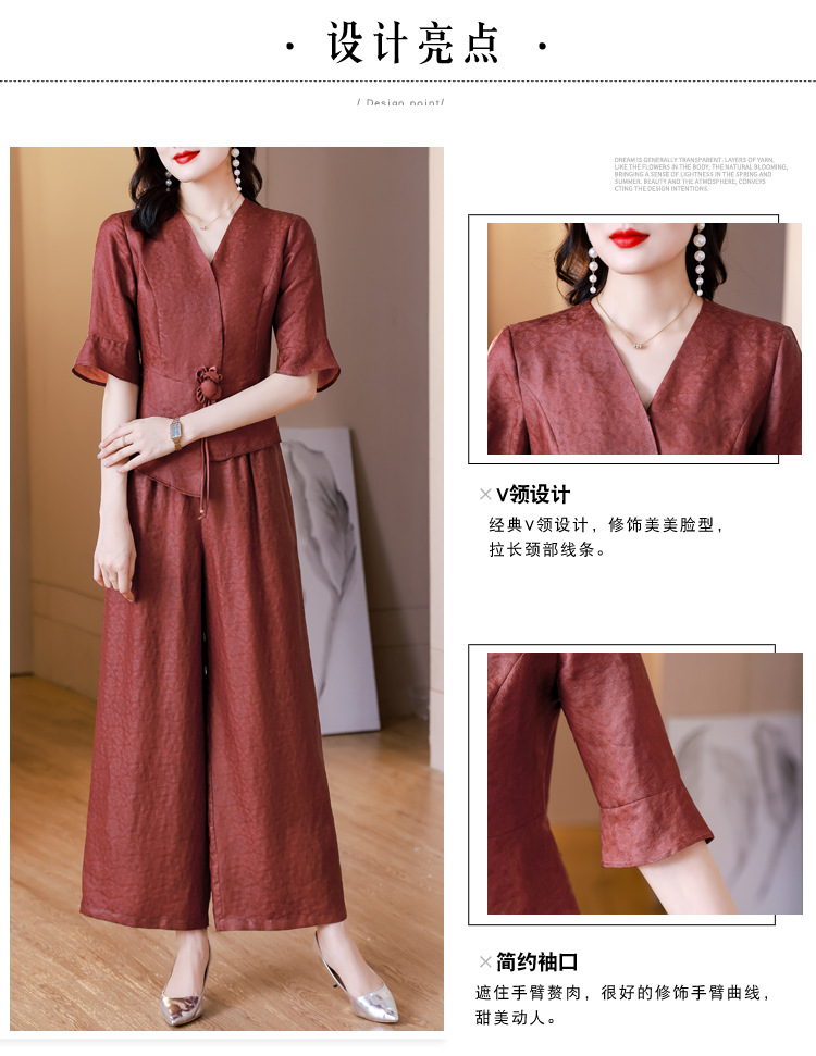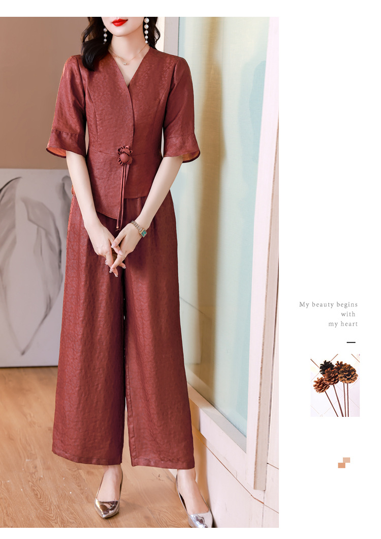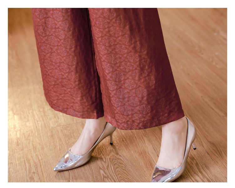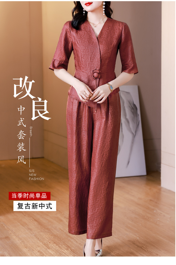 新中式仿香云纱,红色衬衫阔腿裤时尚两件套AHM-blx9536