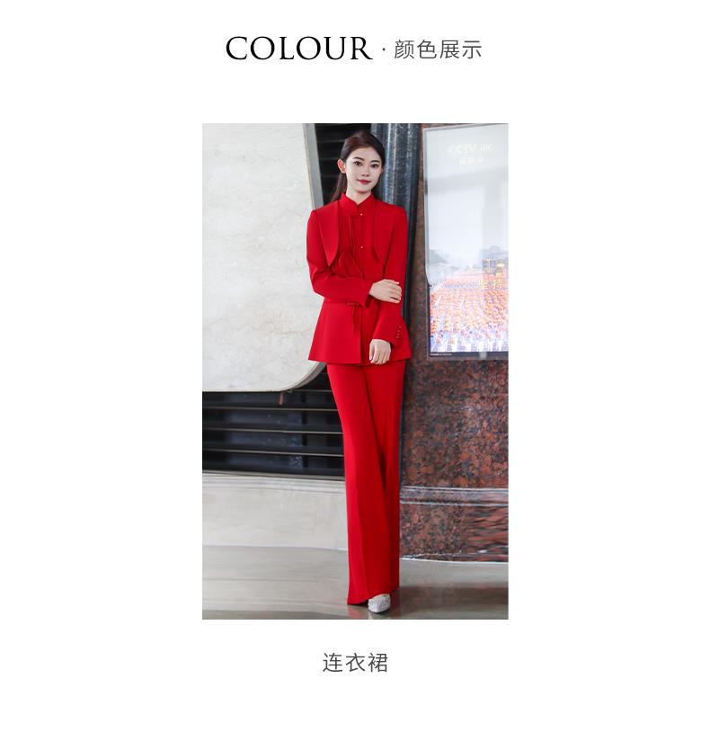 IWY/国风新中式西装套装正红色女装高级感年会礼服总裁范演讲主持西装FYC238+FYP241