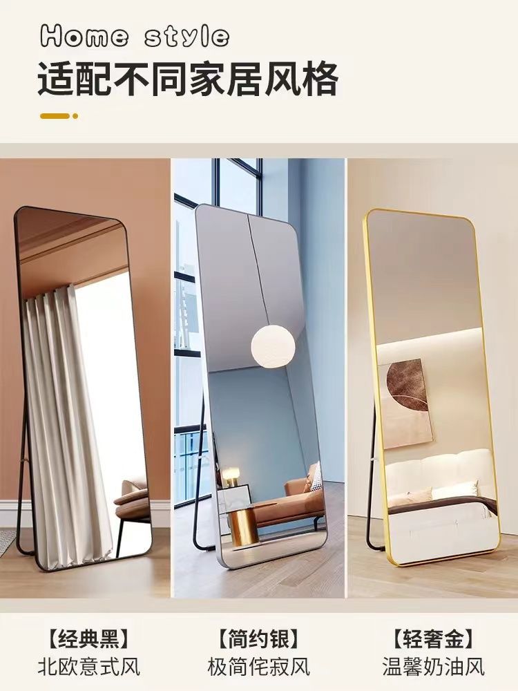 【适配不同家居风格!穿衣镜落地全身镜】优质合金,坚固又耐用,圆角设计美观时尚更安全,家用壁挂卧室挂墙宿舍立体试衣镜L