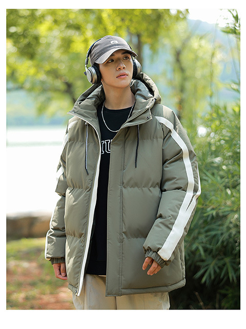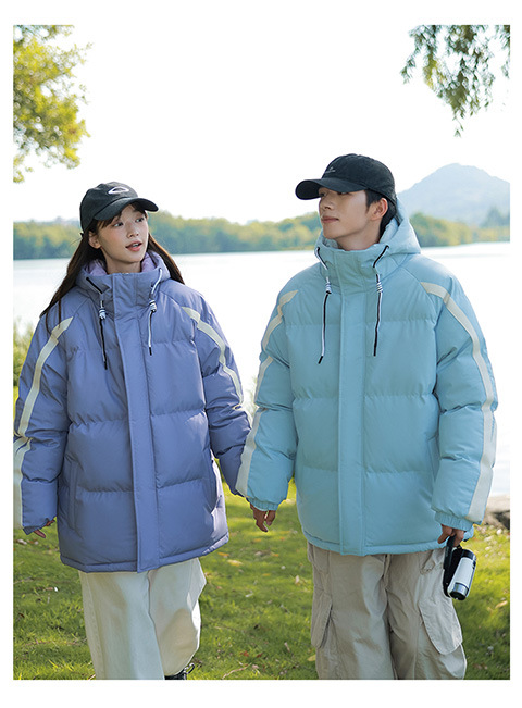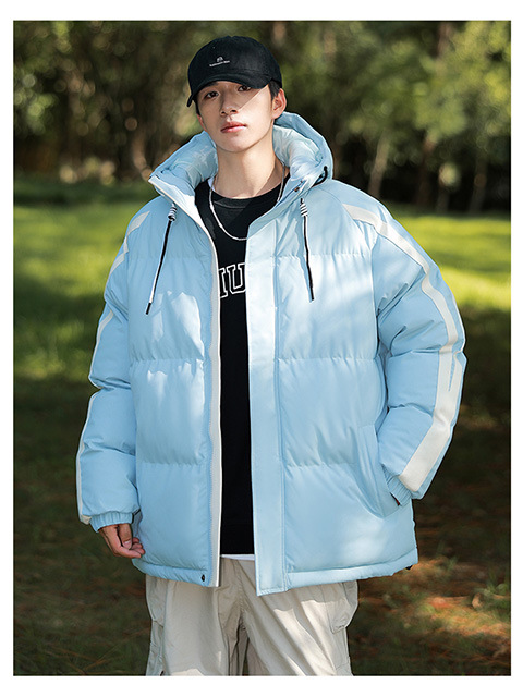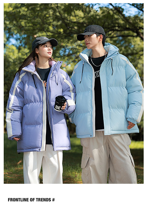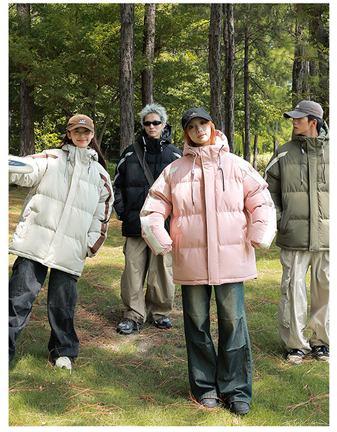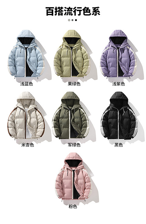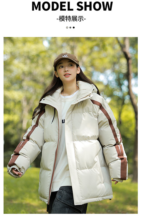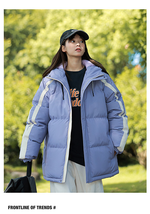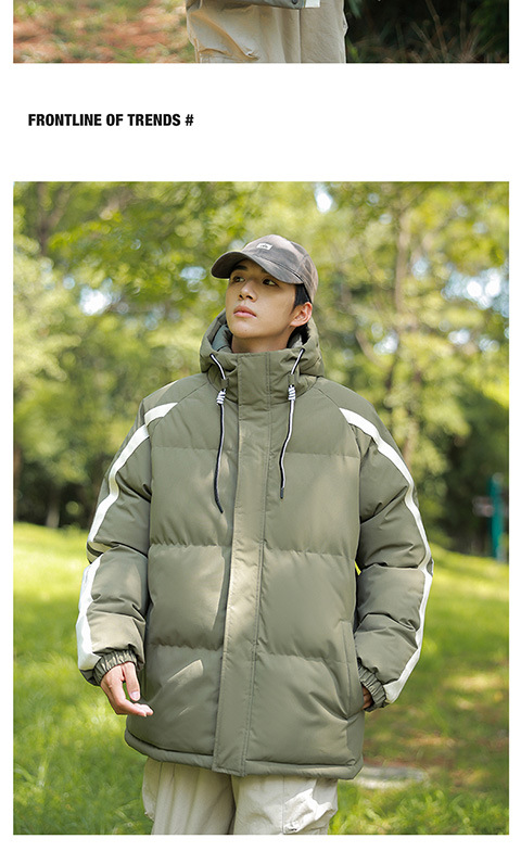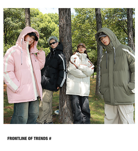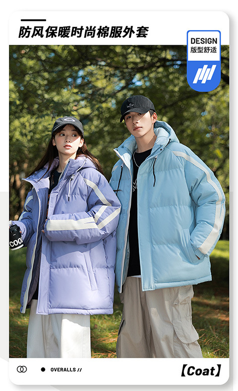 【潮牌条纹拼接加厚棉服】冬季保暖抗寒 情侣宽松连帽面包服棉服