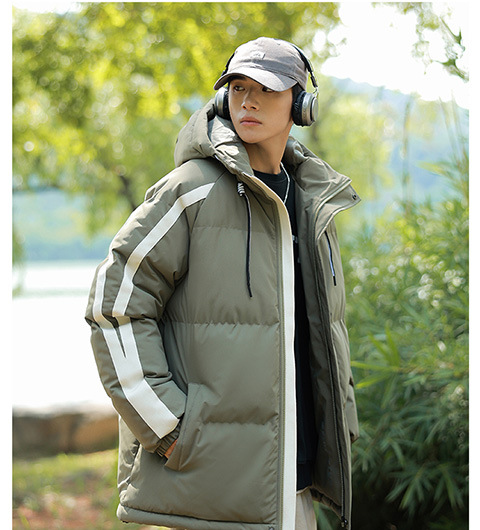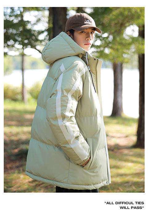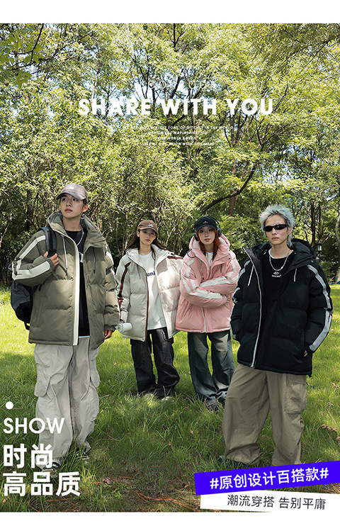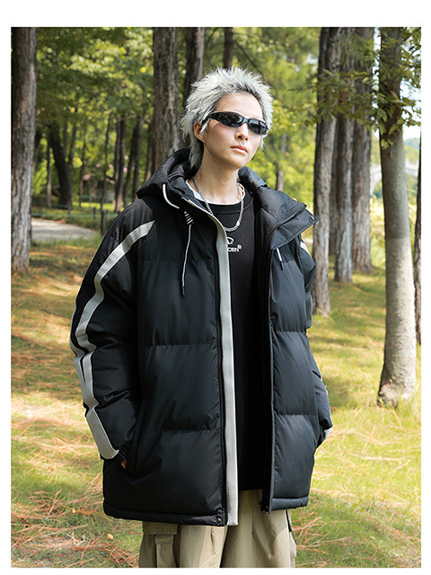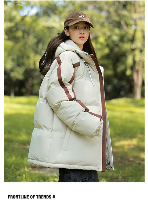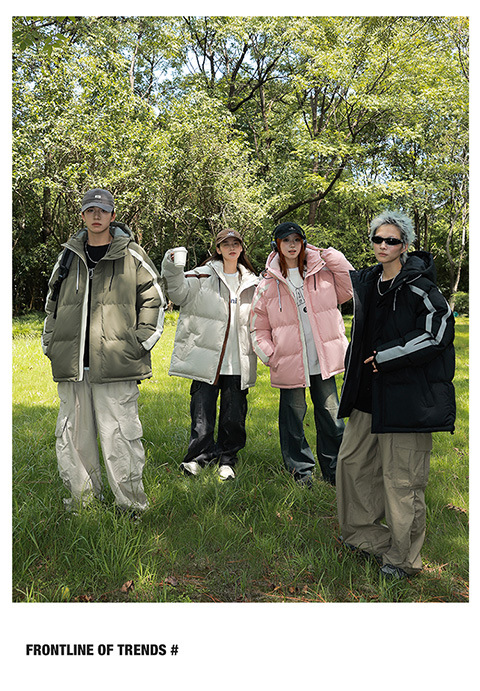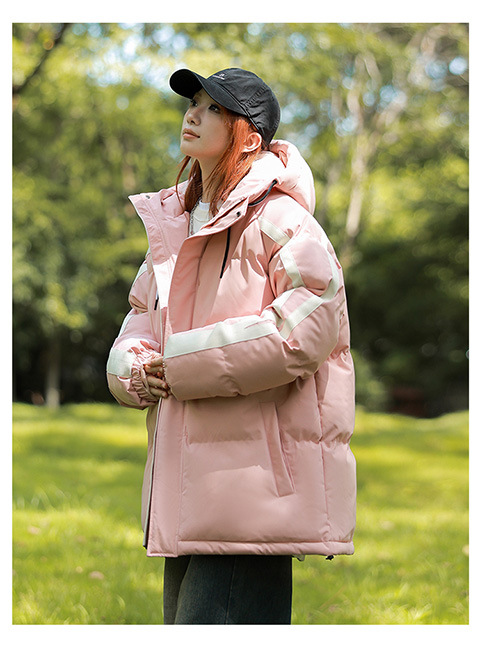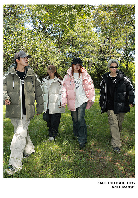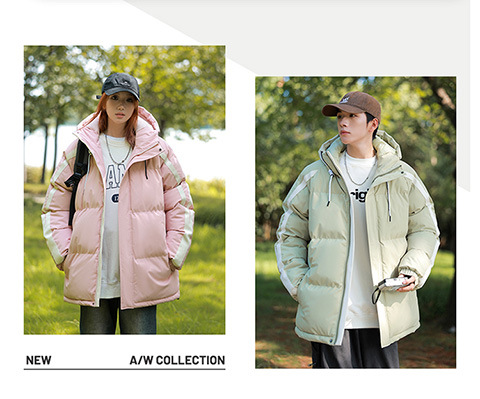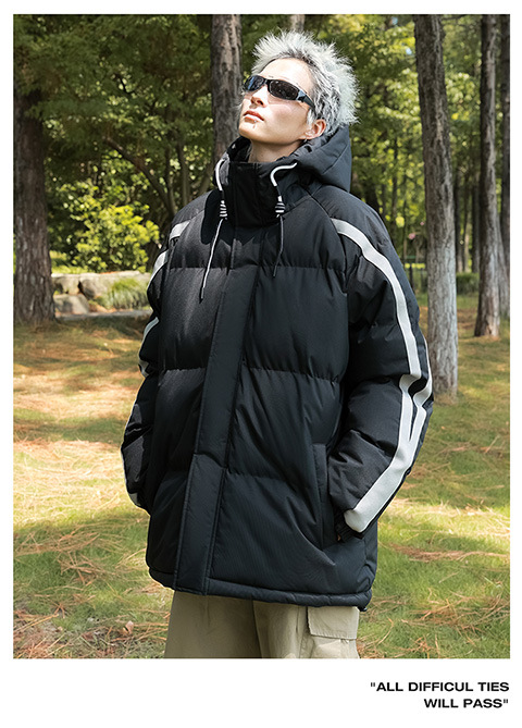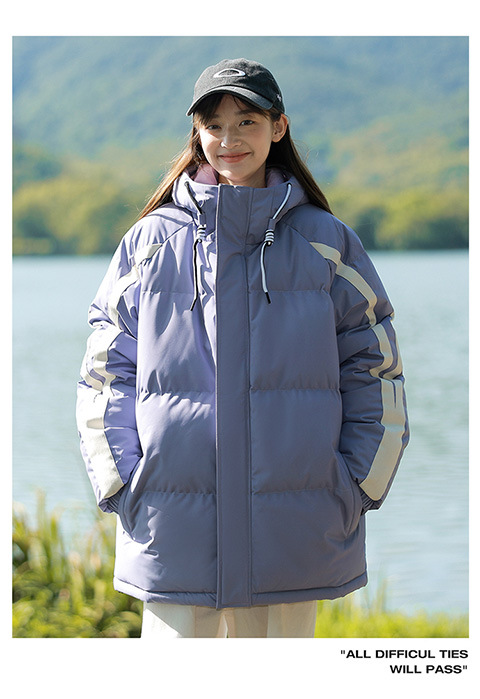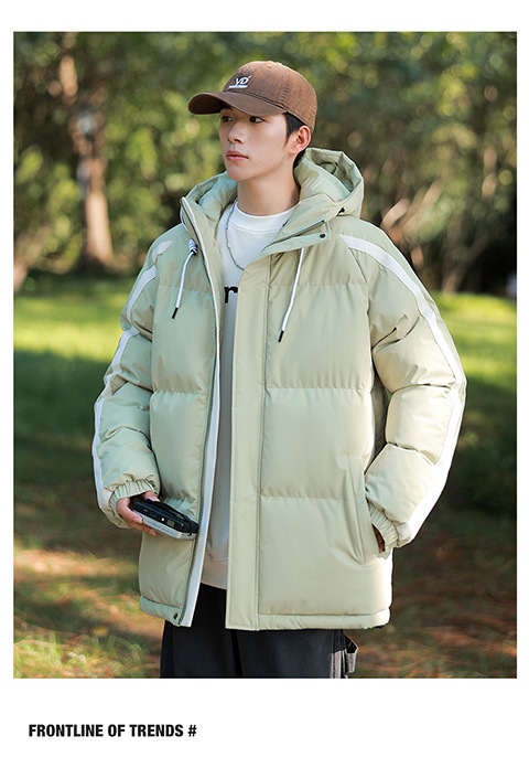 【潮牌条纹拼接加厚棉服】冬季保暖抗寒 情侣宽松连帽面包服棉服