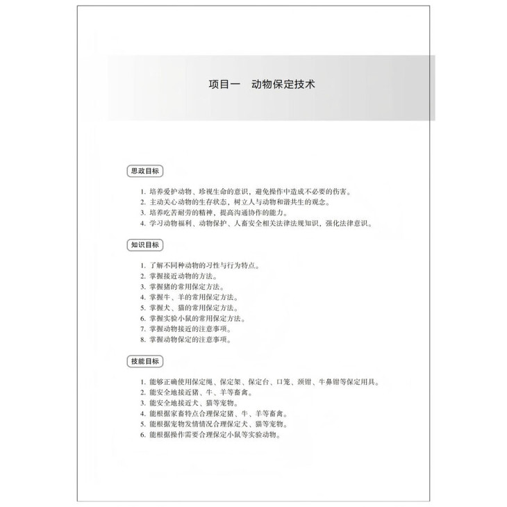 《兽医临床诊疗技术》为高职院校畜牧兽医类专业教材。全书共6个教学模块、16个学习项目、102个工作任务,以现代职业岗位能力和市场人才需求为导向,由校企深度合作编写,系统介绍了兽医临床诊疗的各个方面,包括临床检查技术、血液实验室检查技术、尿液与 粪便实验室检查技术、影像学检查技术、临床治疗技术以及常见症状的鉴别诊断。本书引入了近期新的诊疗技术和方法,如影像学诊断的独立模块和实验室诊断部分的加大比重等。同时,配备丰富数字化资源,如视频等,让学习更高效。此外,本书还注重思想政治教育与 专业教育的结合,培养学生的正确价值观和职业素养。 本书适合高等职业院校动物医学、畜牧兽医等专业的师生教学使用,也可作为宠物医院、养殖企业的员工培训手册,助力从业者快速提升岗位竞争力。