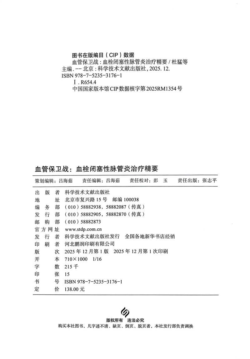 血管保卫战:血栓闭塞性脉管炎治疗精要 杜猛 王耿 姚陈 李普升 主编 中西医融合 精准诊疗 全程管理等 科学技术文献出版社