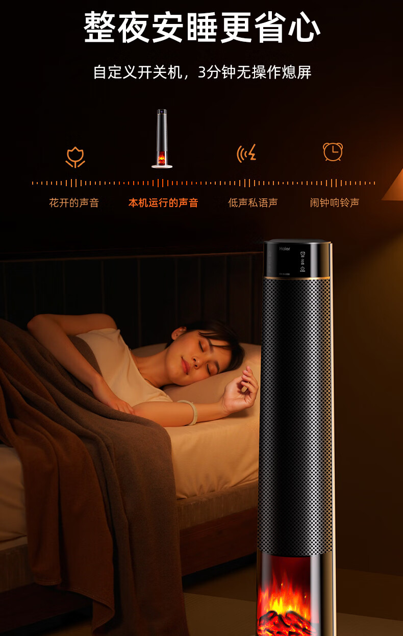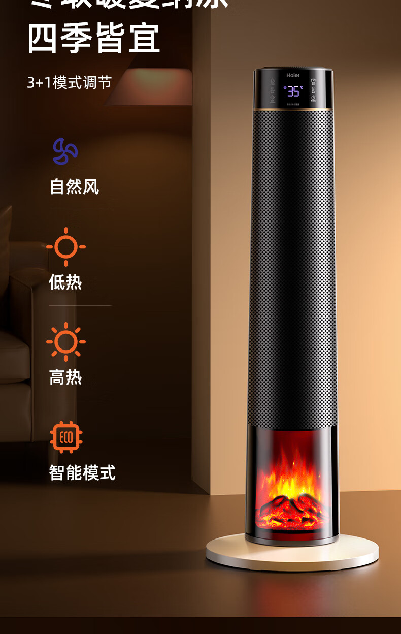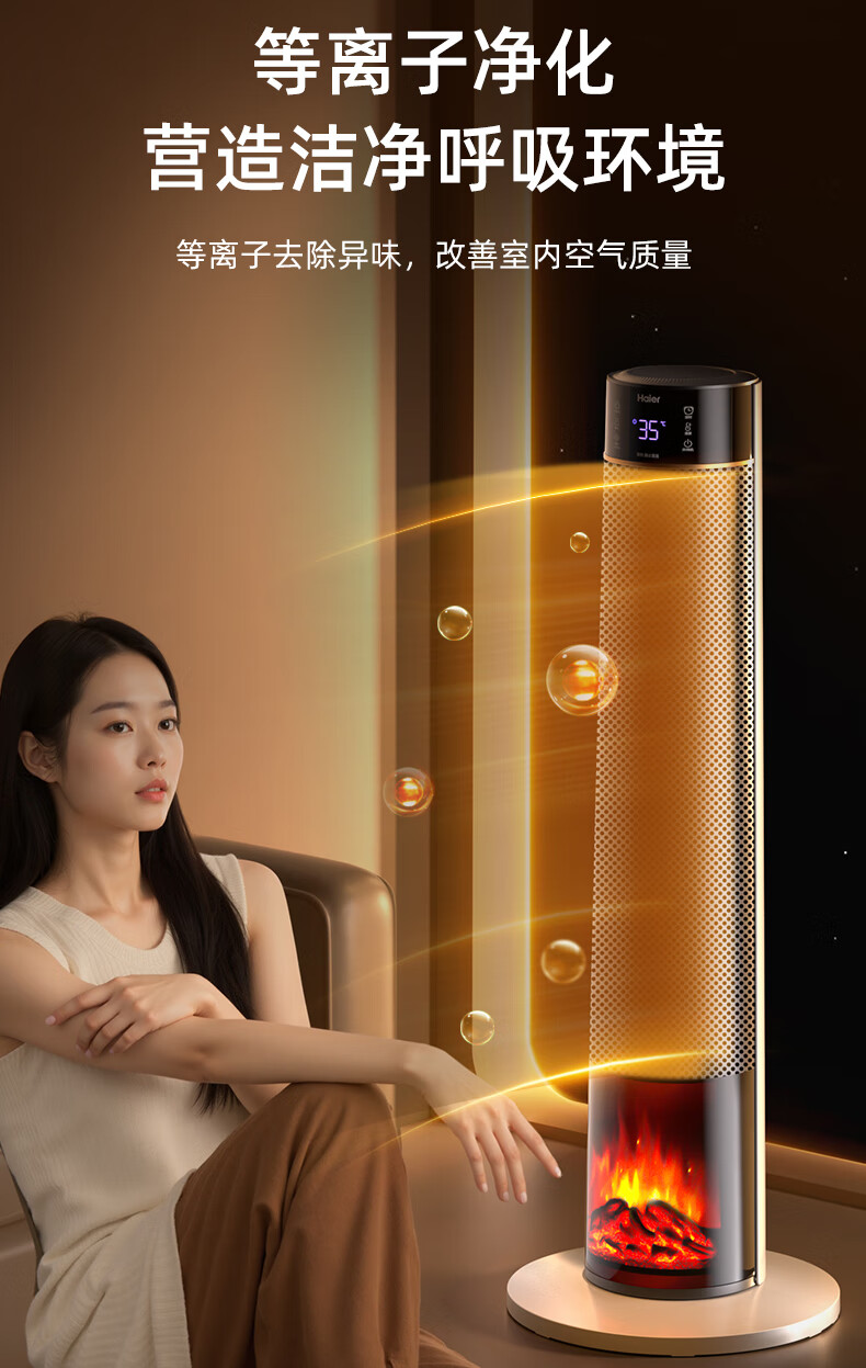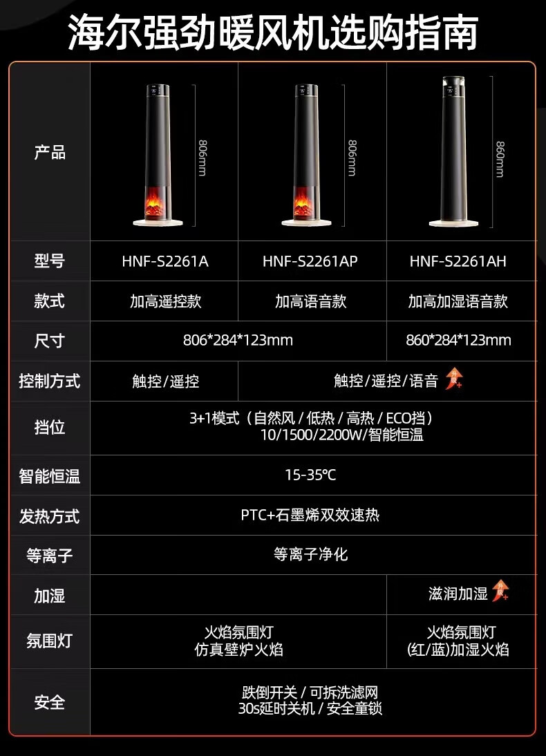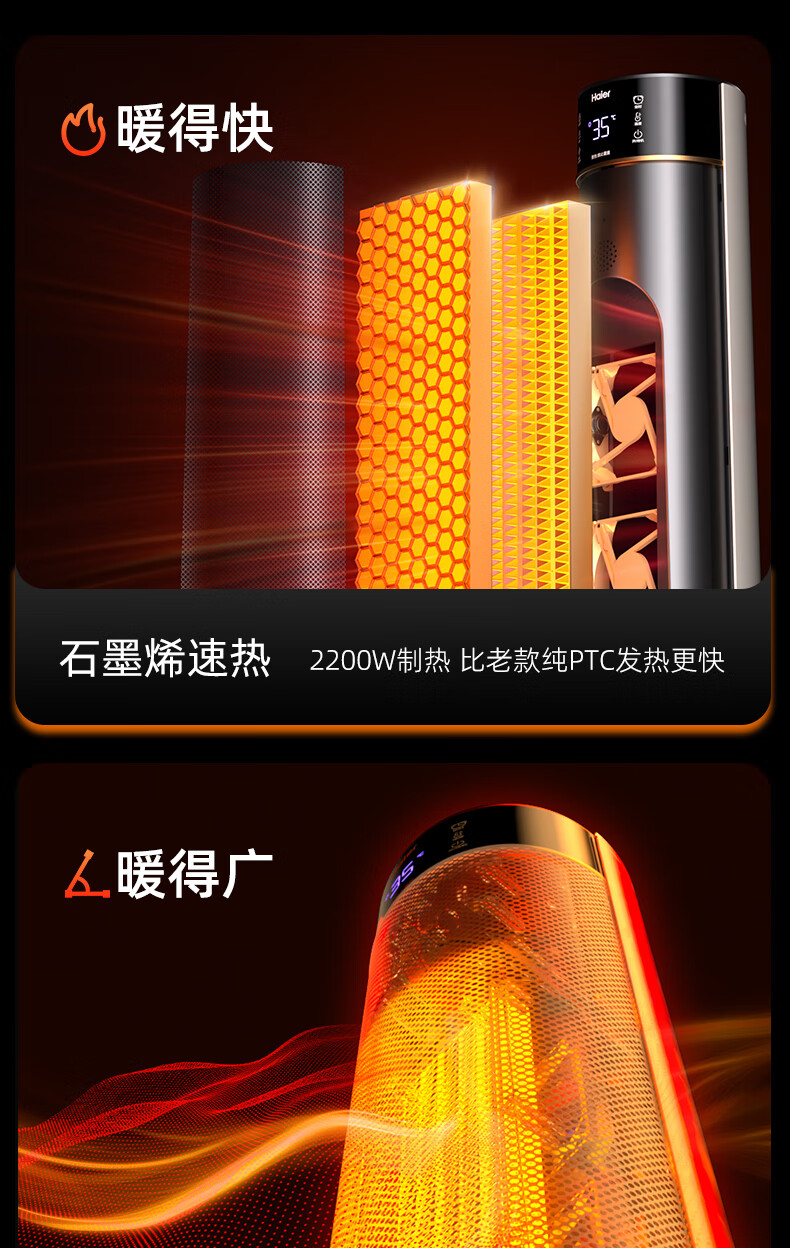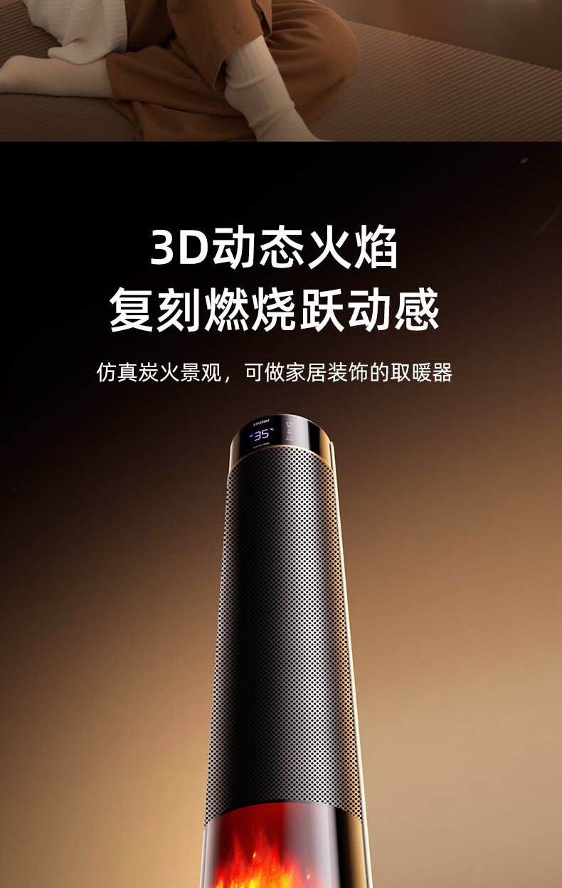 海尔(Haier)取暖器S2261A石墨烯暖风机火焰视觉电暖器卧室客厅家用电暖气大面积升温热风机立式遥控定时小太阳 顶配火焰石墨烯加湿款HNF-S2261AH