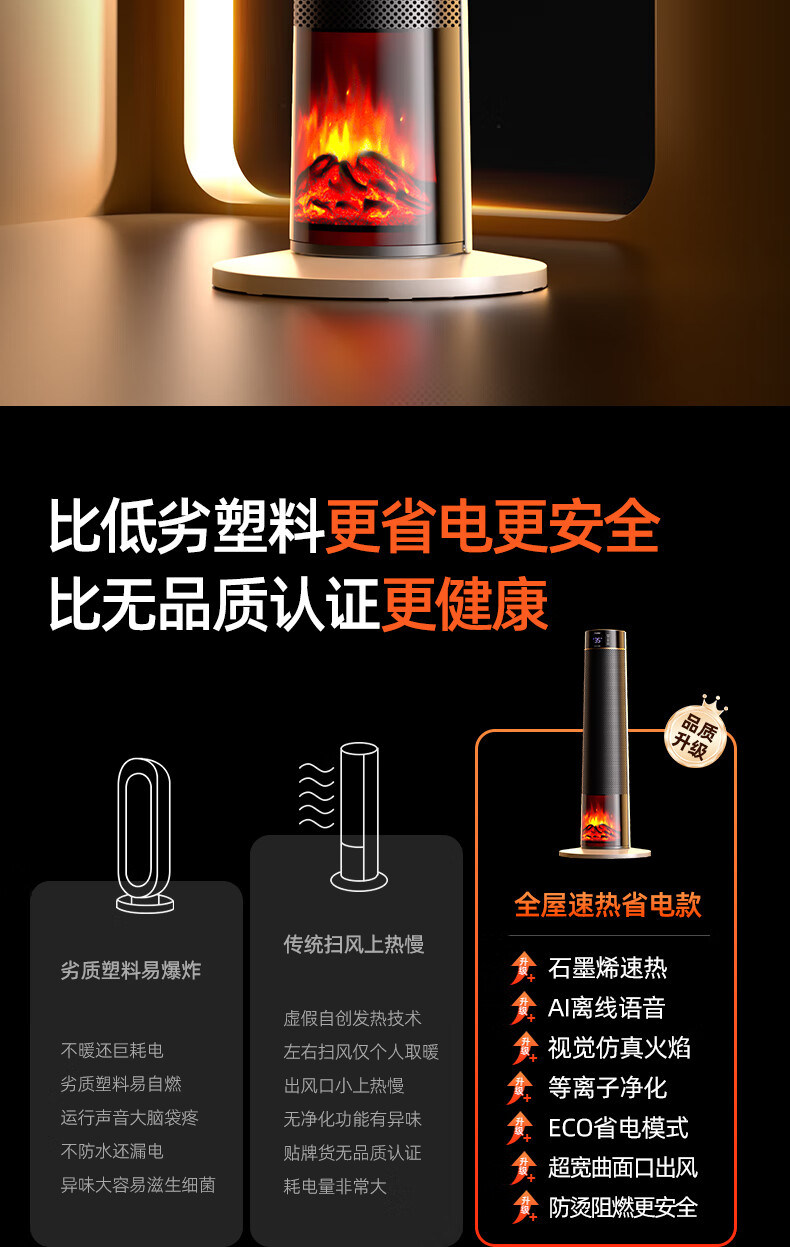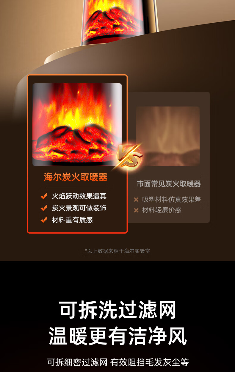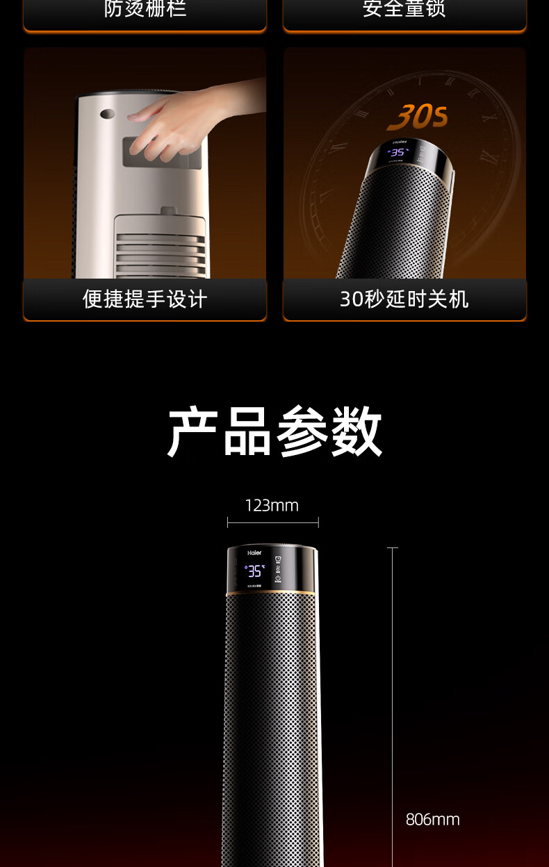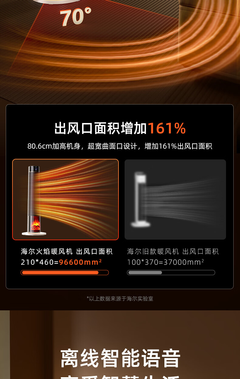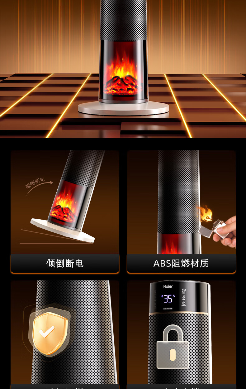 海尔(Haier)取暖器S2261A石墨烯暖风机火焰视觉电暖器卧室客厅家用电暖气大面积升温热风机立式遥控定时小太阳 顶配火焰石墨烯加湿款HNF-S2261AH